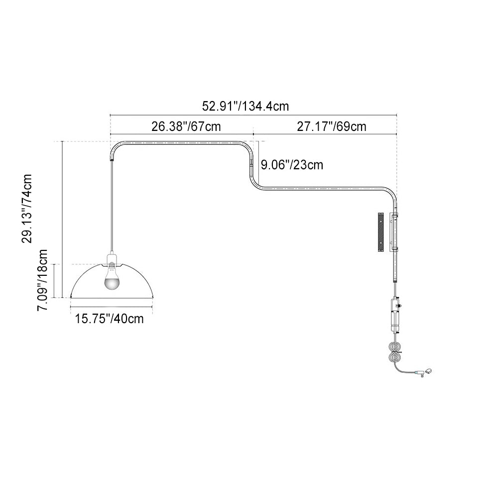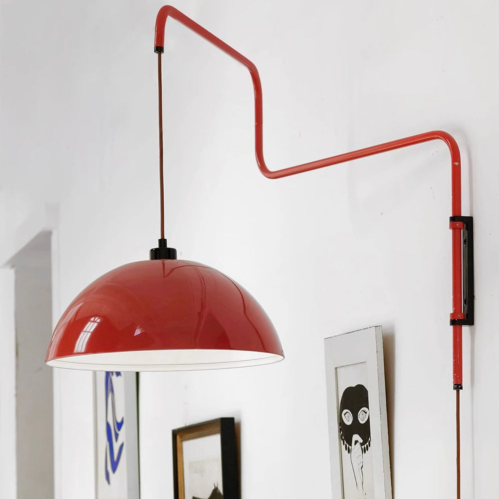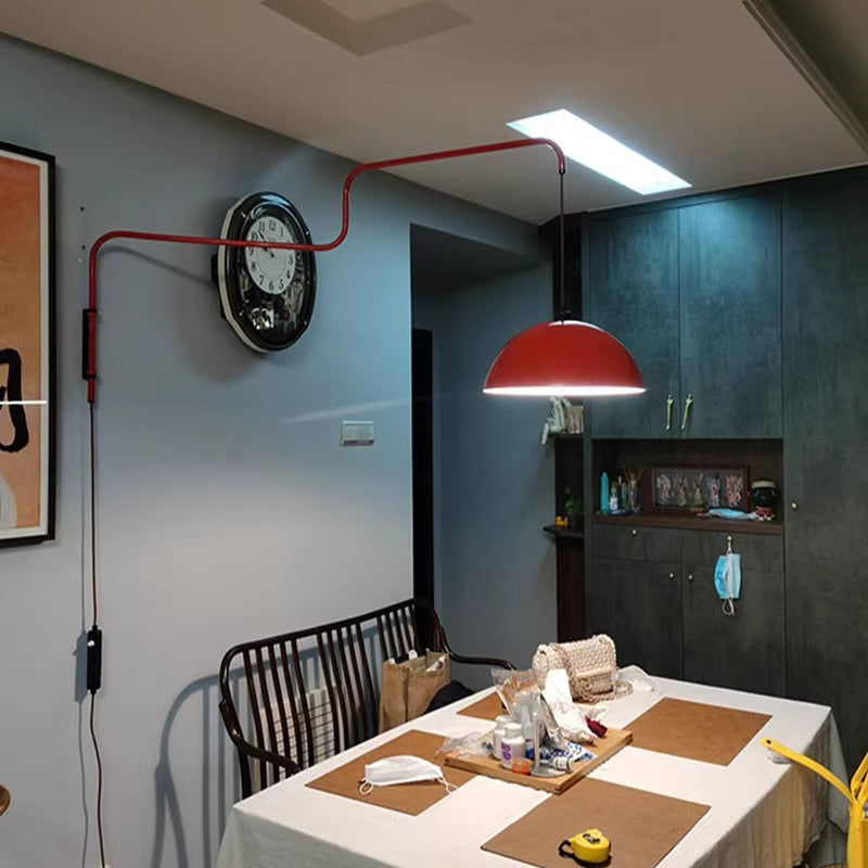 مصباح حائط معاصر إسكندنافي من الحديد والألومنيوم بذراع هزاز نصف دائري مزود بمصباح واحد لغرفة المعيشة