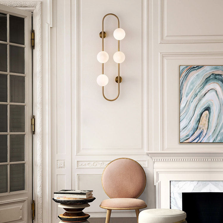 مصباح حائطي معاصر على شكل حلقة بيضاوية من الحديد والزجاج، بأربعة مصابيح، لغرفة المعيشة