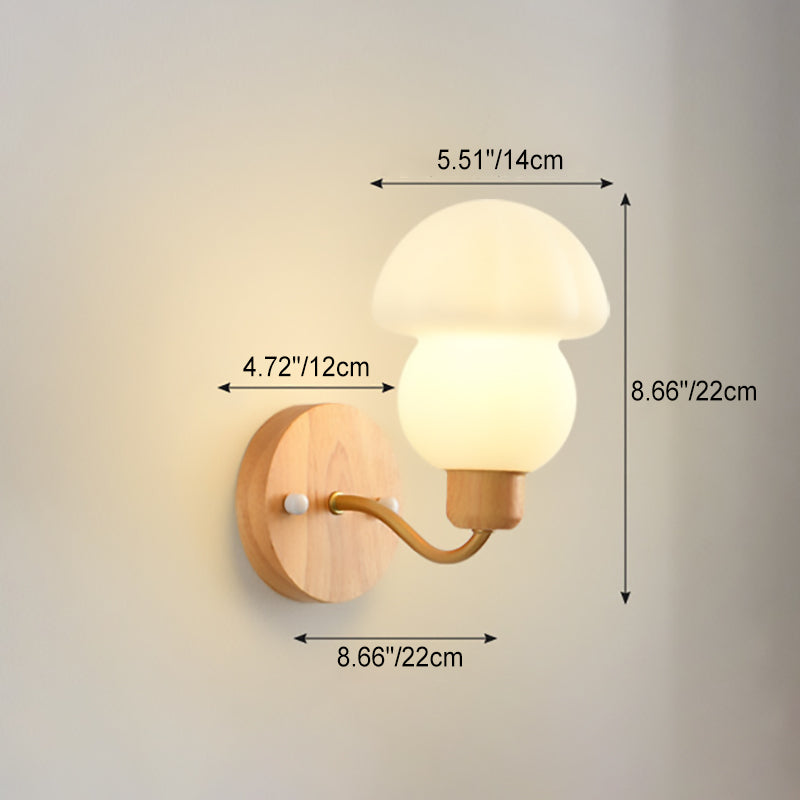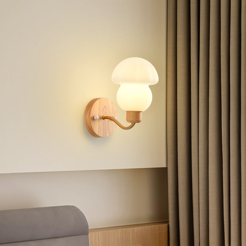 مصباح حائط معاصر على الطراز الاسكندنافي مصنوع من مادة البولي إيثيلين مع إطار خشبي وغطاء فطر ومصباح واحد لغرفة النوم