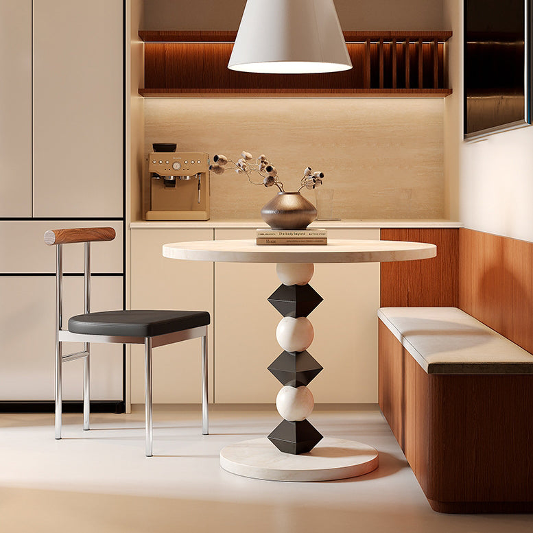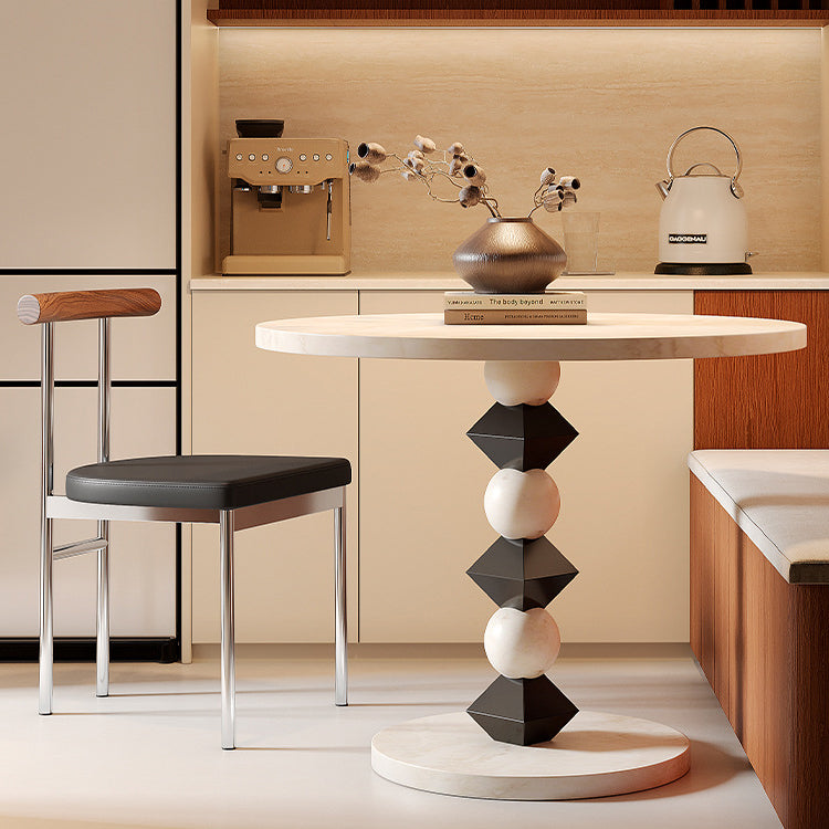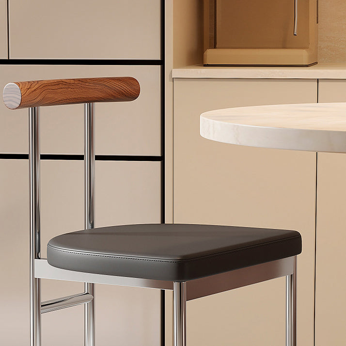 Contemporary Scandinavian PU Leather Metal Solid Wood Rounded Rectangular Dining Chair With Backrest For Dining Room