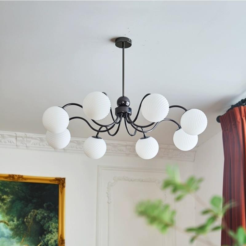 ثريا معاصرة على الطراز الاسكندنافي، مصنوعة من الحديد والزجاج، بثلاثة مصابيح وخمسة مصابيح وثمانية مصابيح لغرفة المعيشة