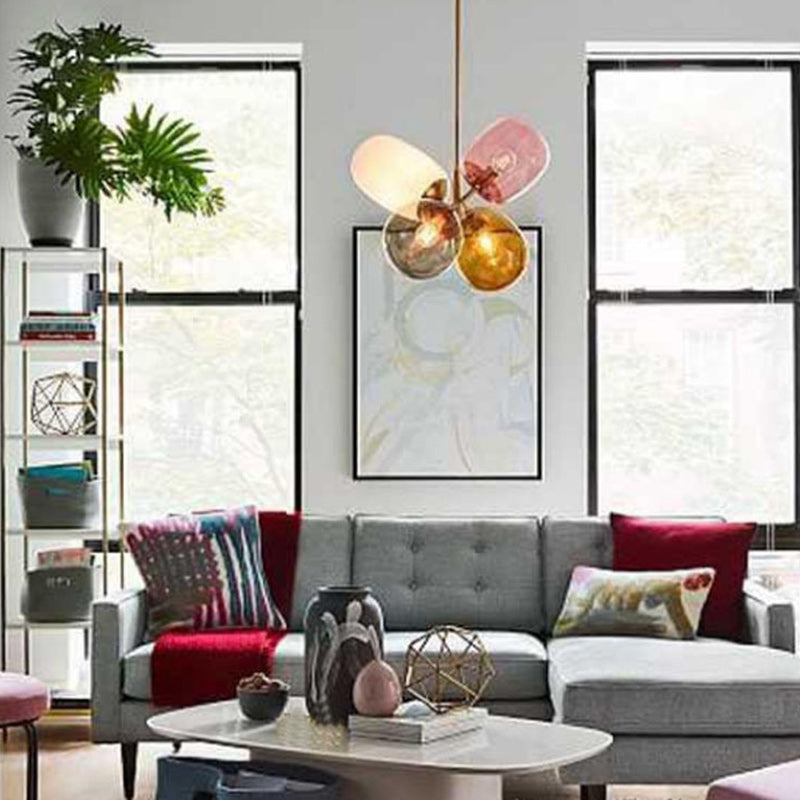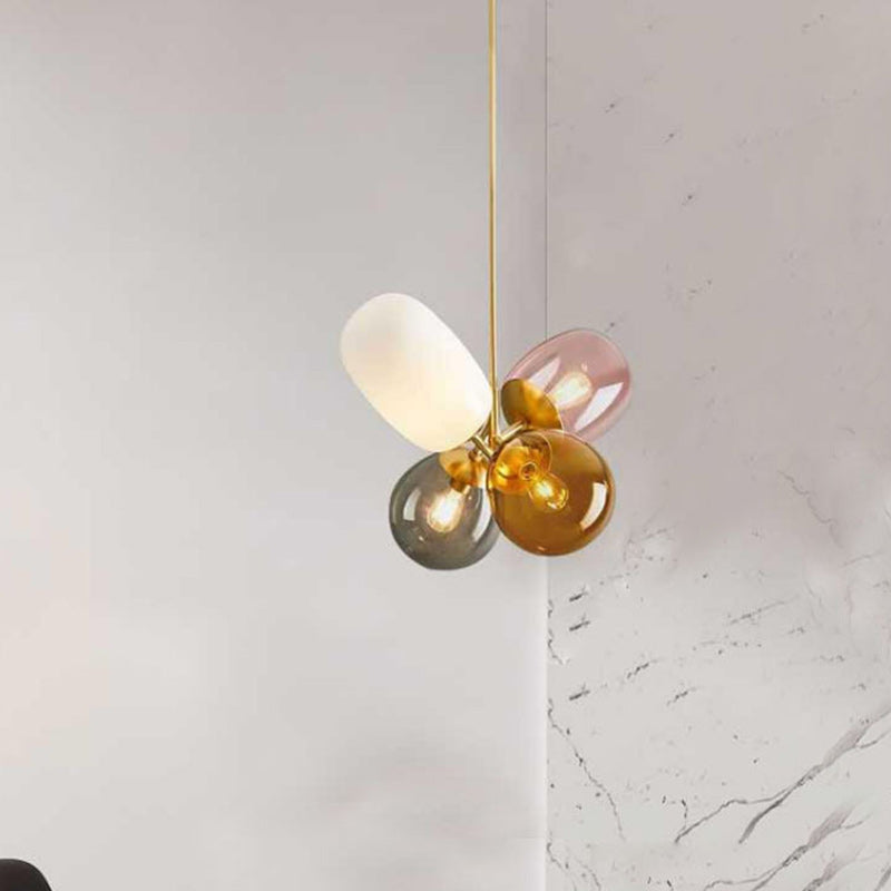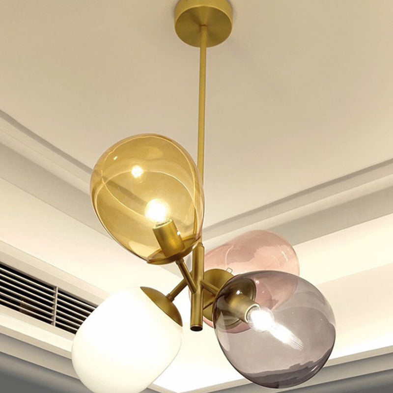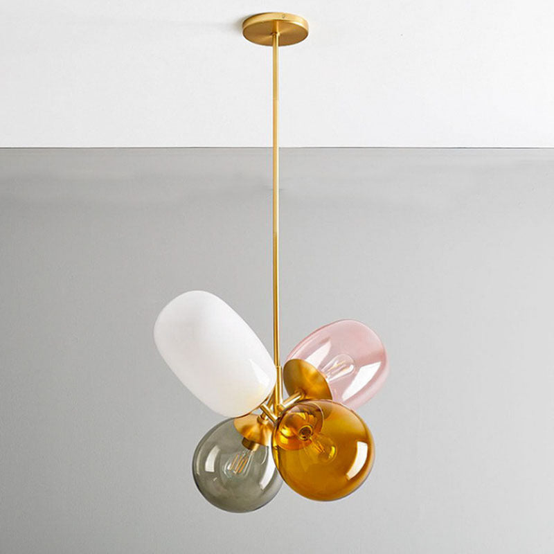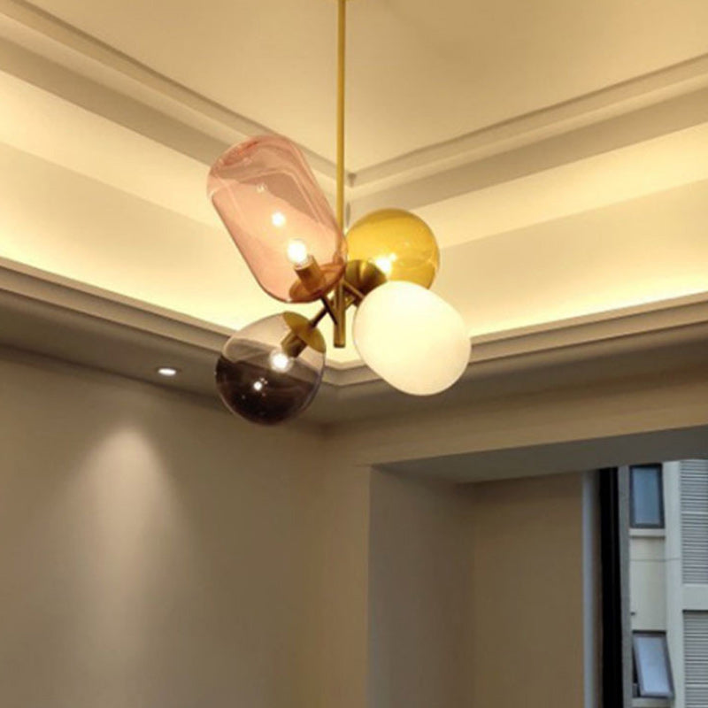 ثريا معاصرة على الطراز الاسكندنافي، أسطوانية دائرية، مصنوعة من الحديد والزجاج، بأربعة مصابيح لغرفة النوم