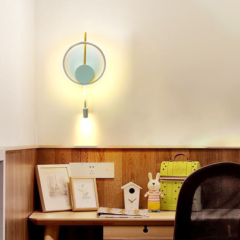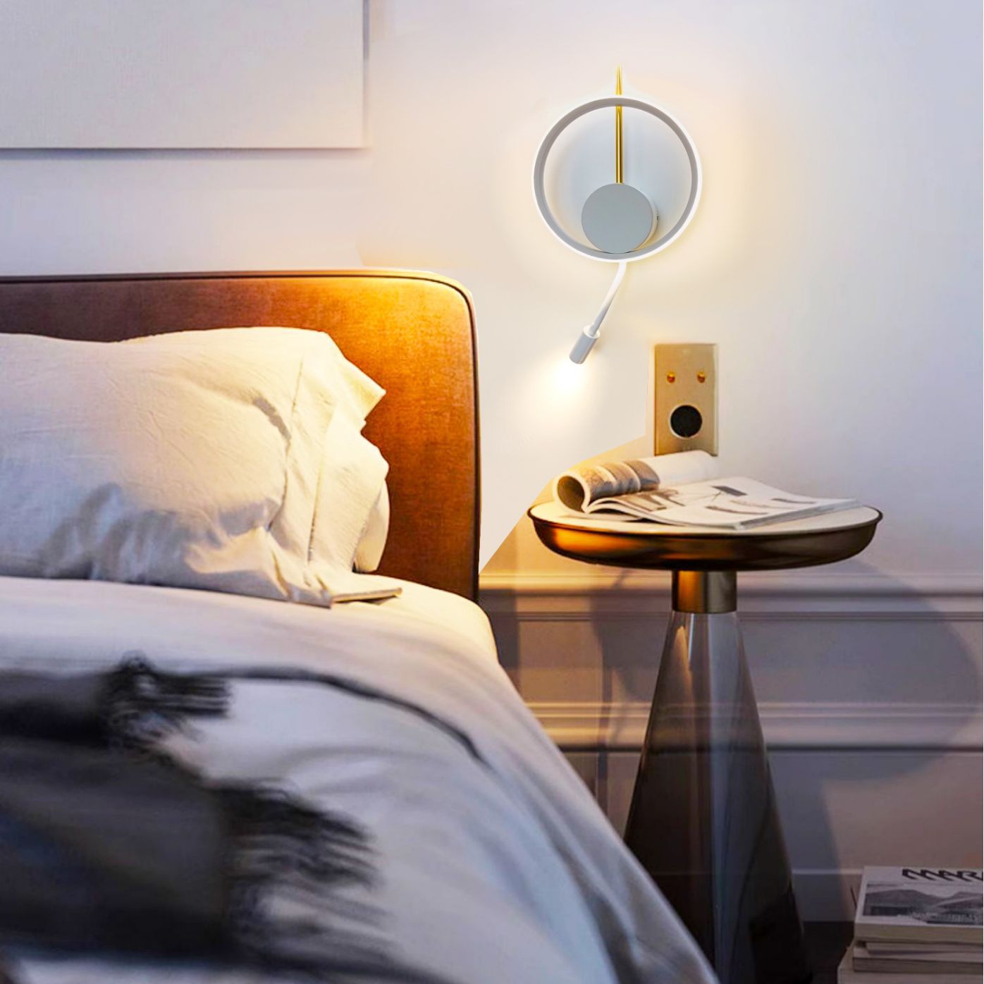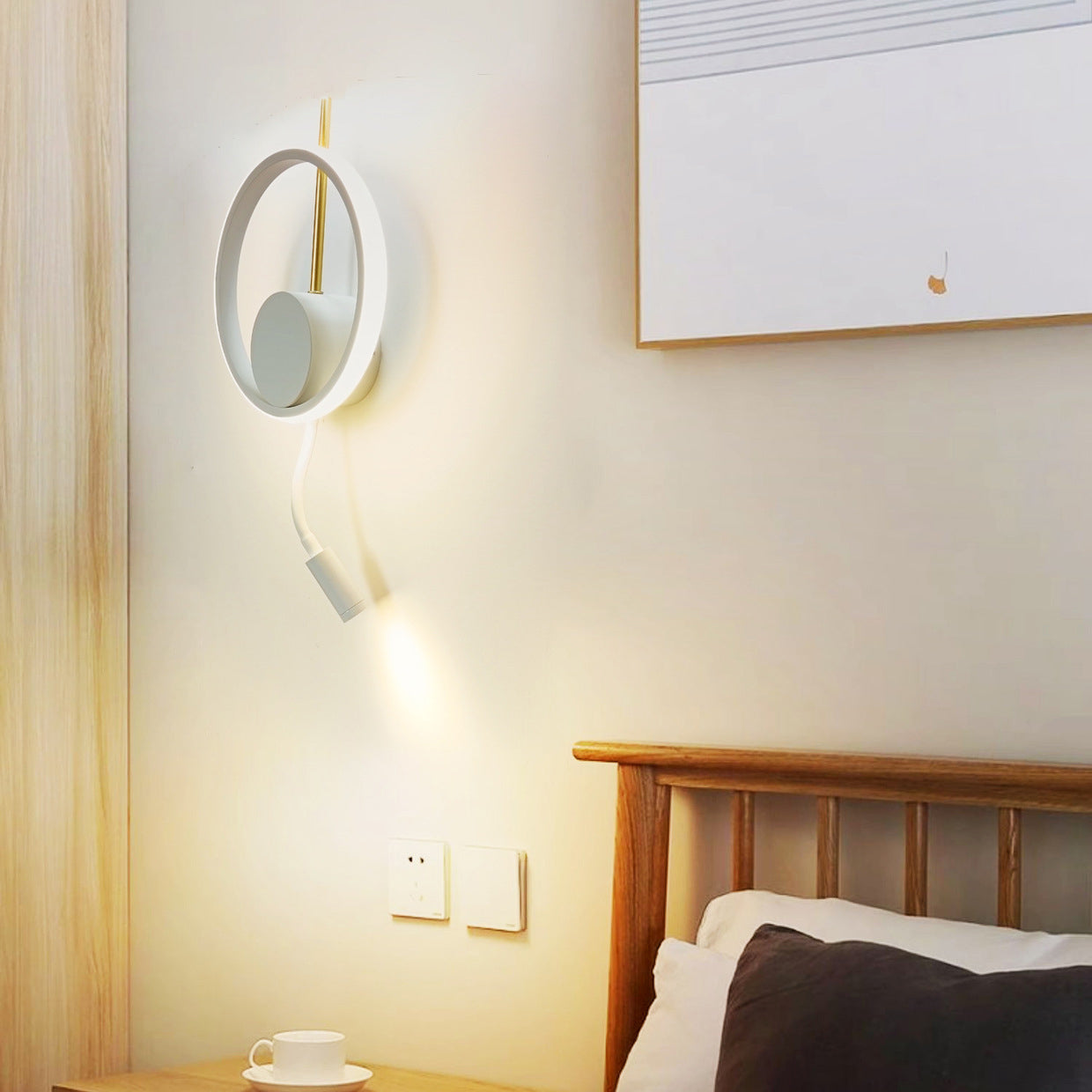 مصباح حائط LED عصري من الأكريليك والألومنيوم والحديد على شكل قرص دائري من الإسكندنافي لغرفة النوم