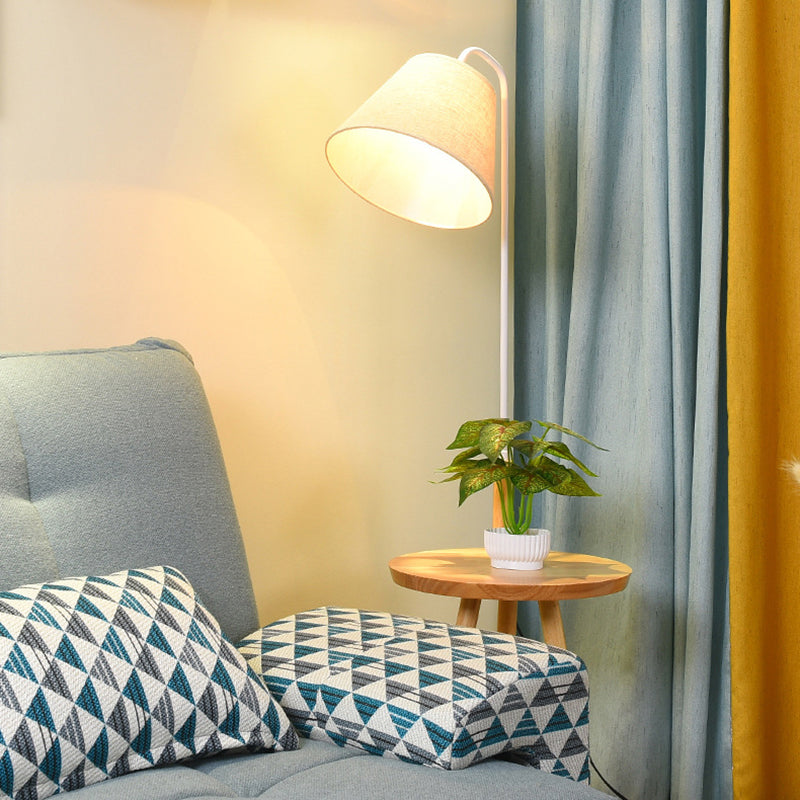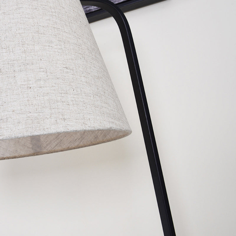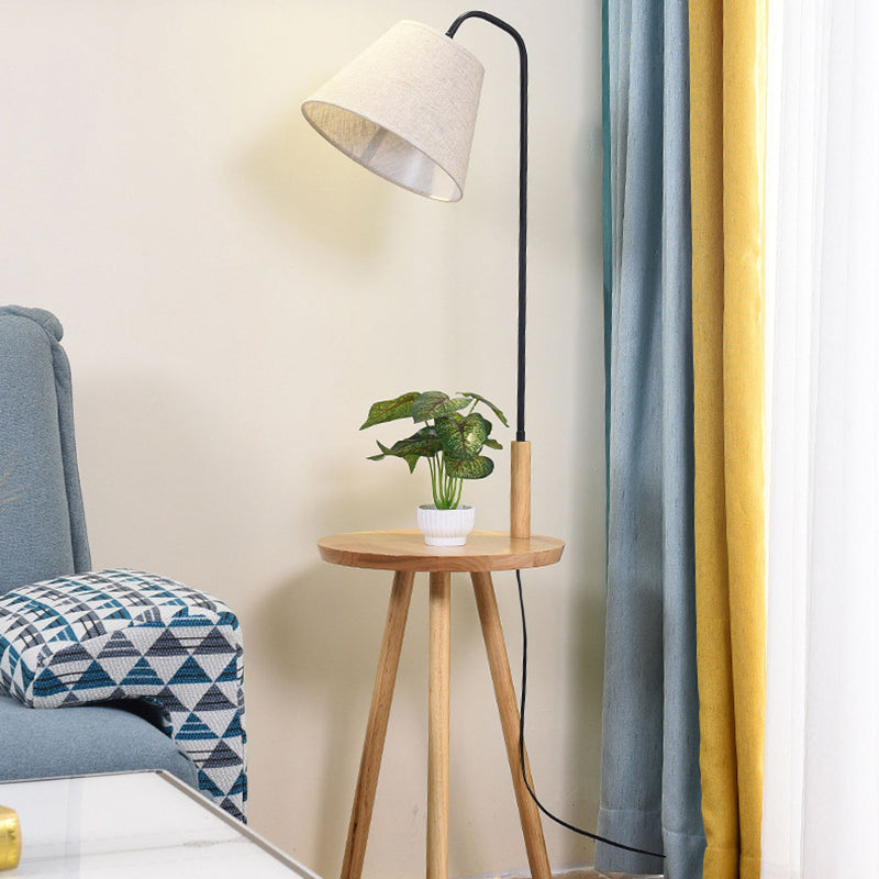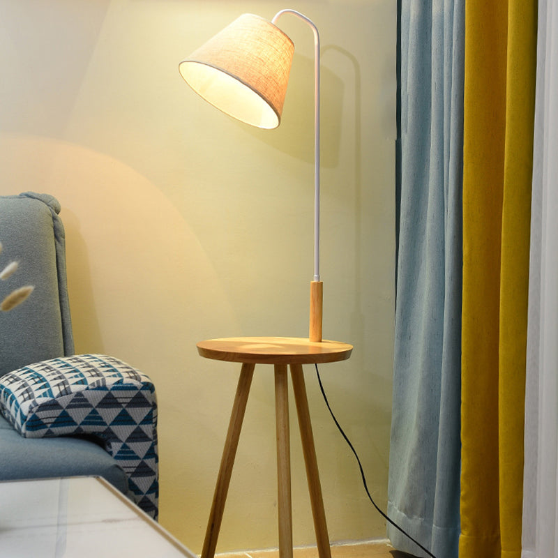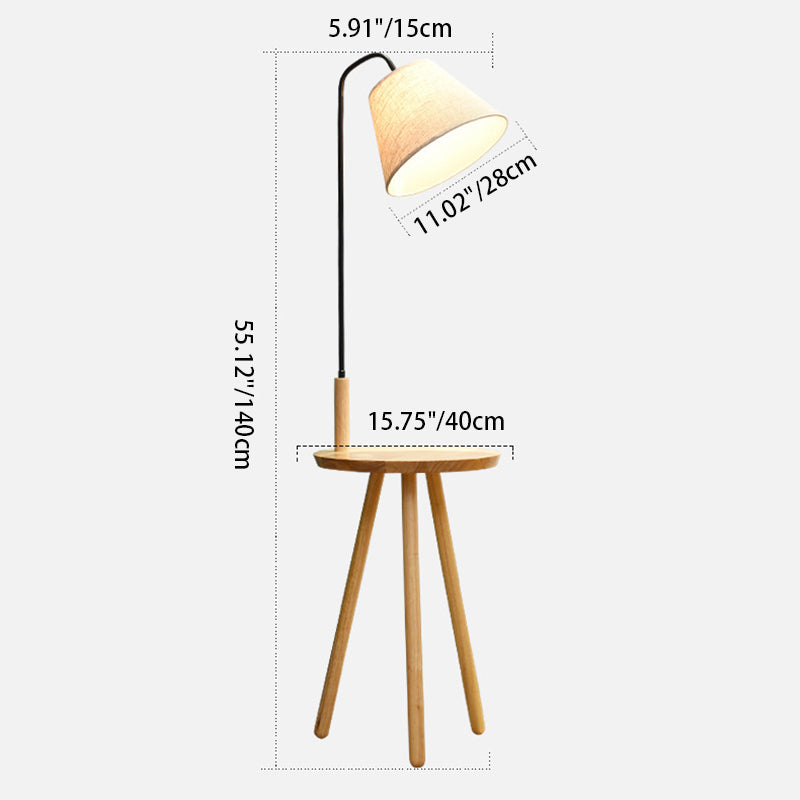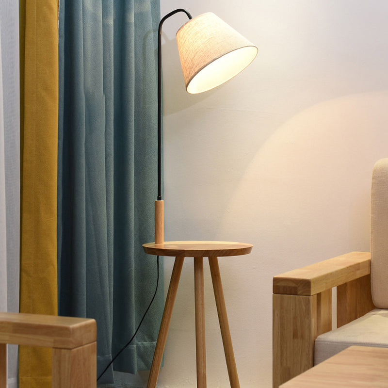 Contemporary Scandinavian Round Triangle Cone Fabric Iron Wood 1-Light Standing Floor Lamp For Living Room