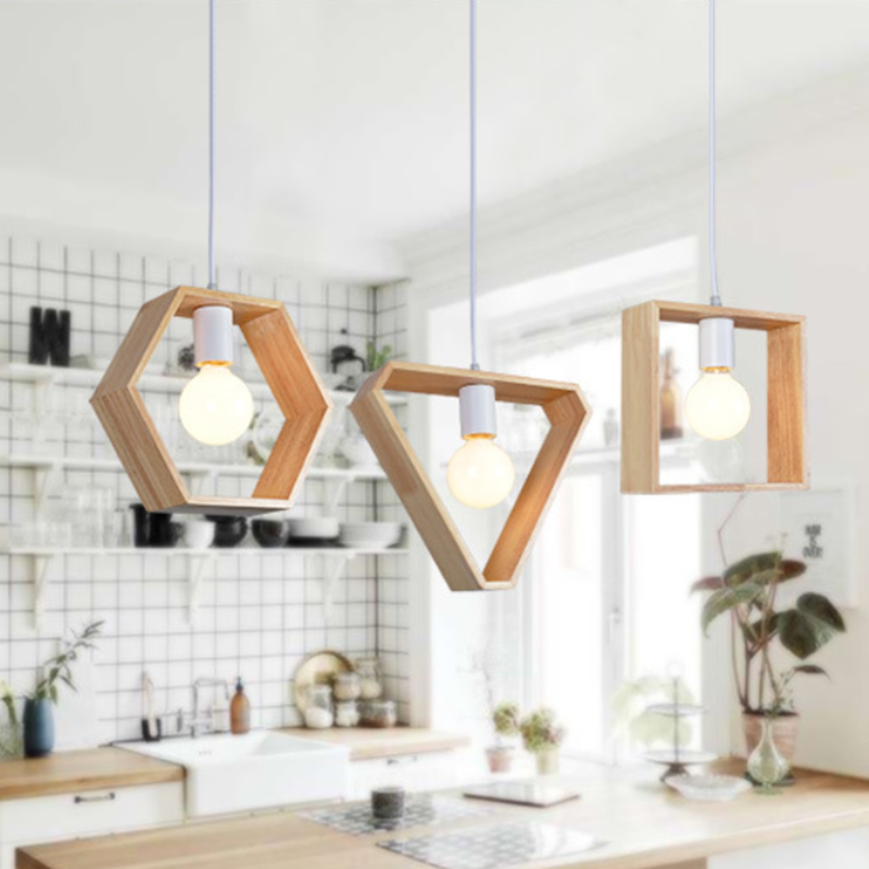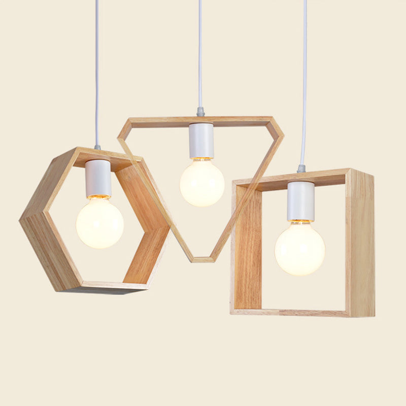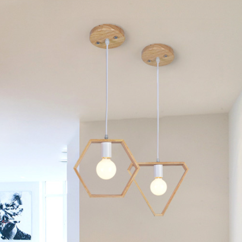 مصباح معلق خشبي معاصر على شكل مثلث سداسي مربع الشكل لغرفة المعيشة