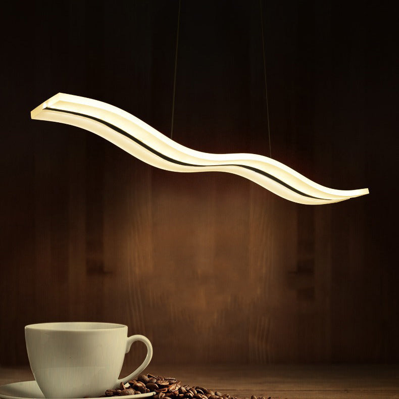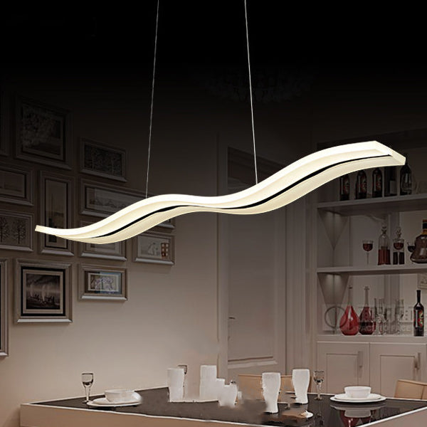 ثريا جزيرة من الحديد المطاوع بتصميم خطوط موجة إسكندنافية معاصرة مصنوعة من الأكريليك لغرفة المعيشة