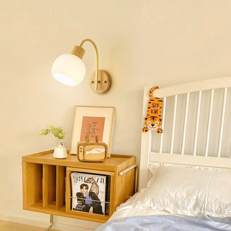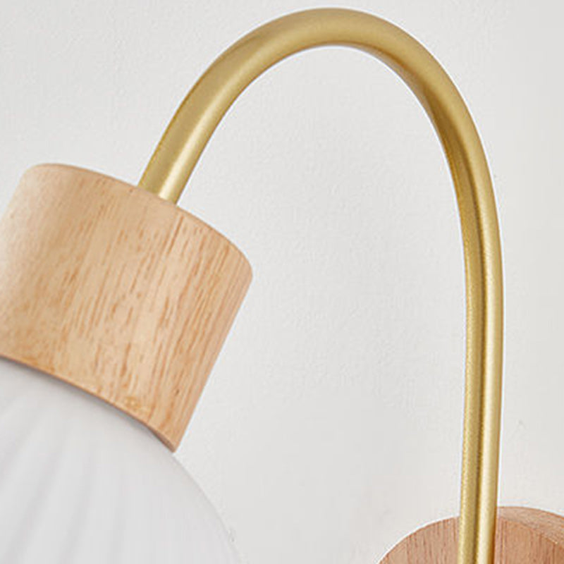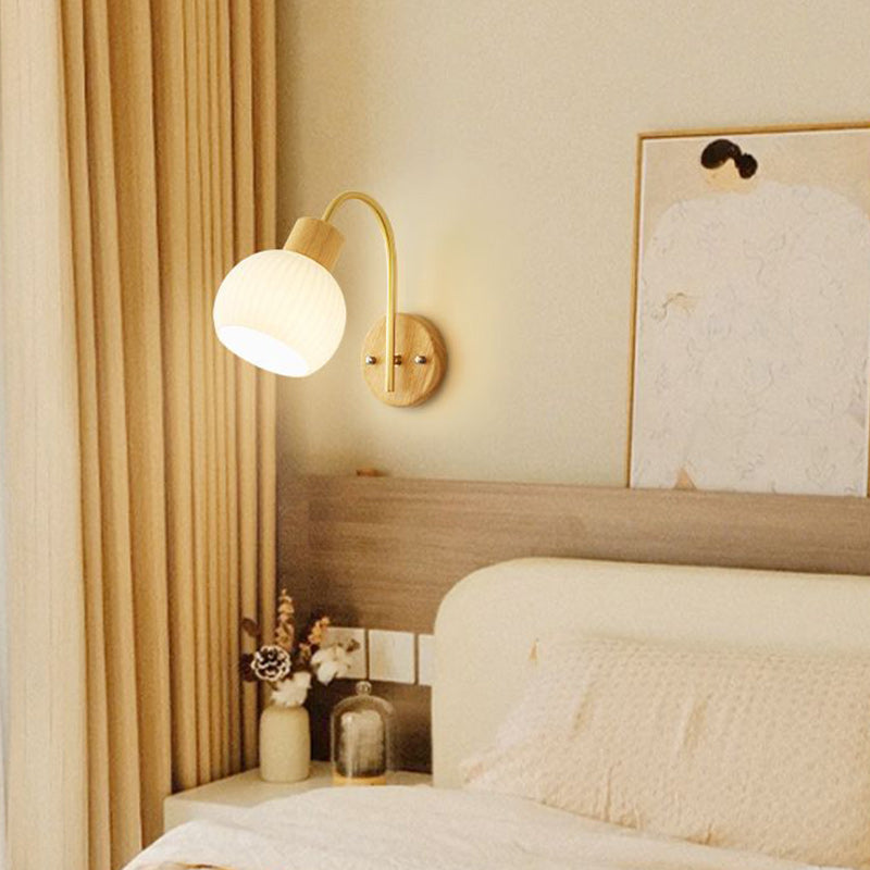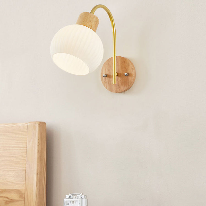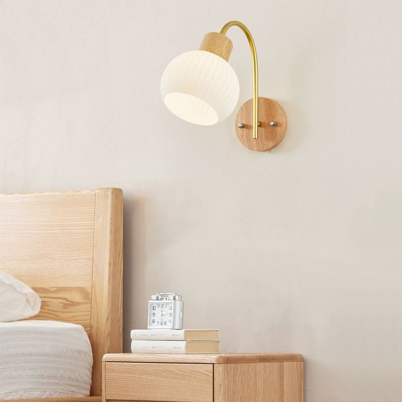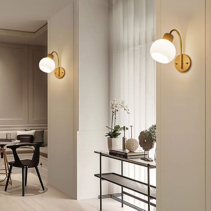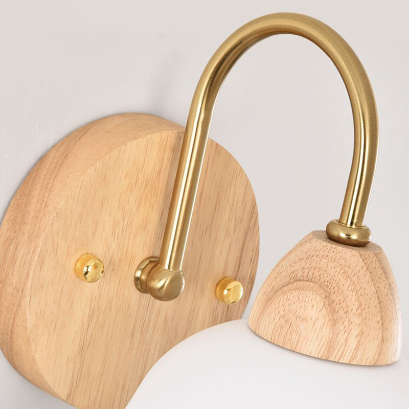 مصباح حائطي عصري بسيط بيضاوي الشكل مصنوع من الحديد والخشب والزجاج ومصباح واحد لغرفة المعيشة
