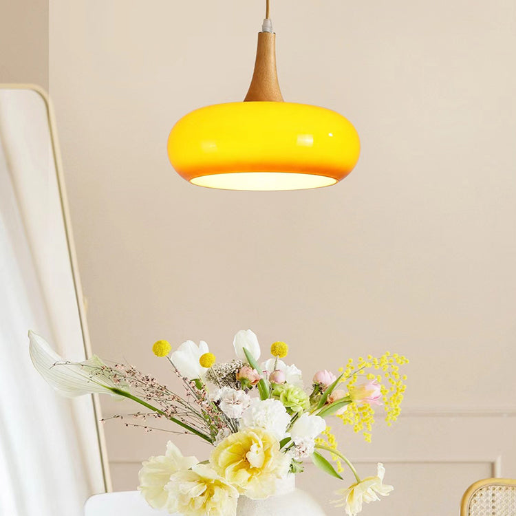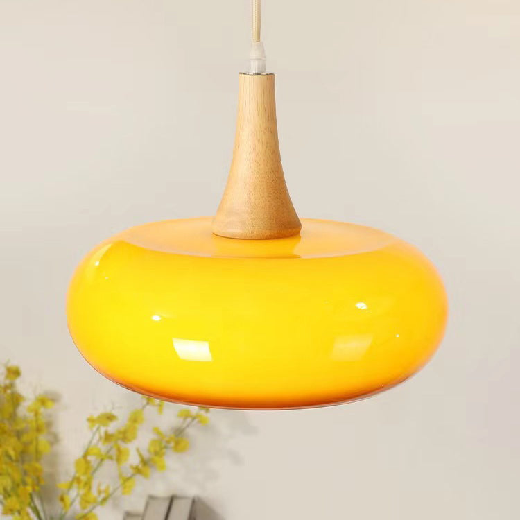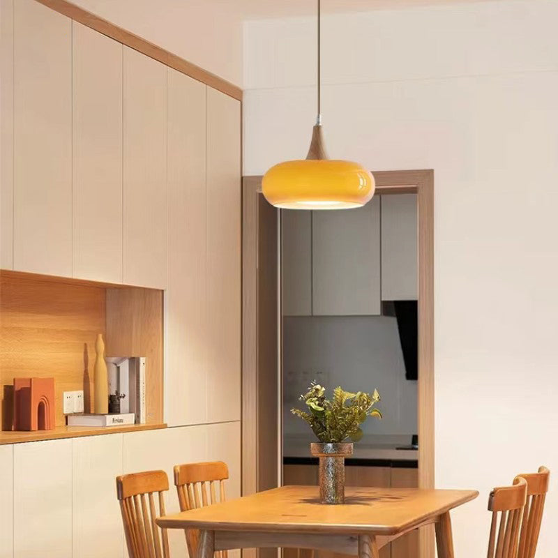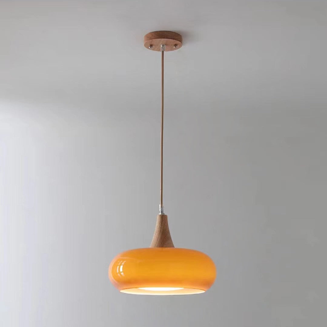 مصباح معلق خشبي بسيط معاصر على شكل زجاج الكاكي لغرفة المعيشة