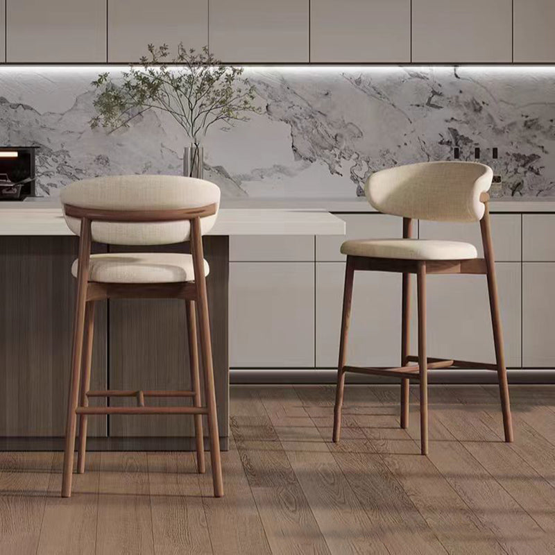 Contemporary Simplicity Solid Wood Cotton Linen Bar Stool Backrest Armless For Dining Room
