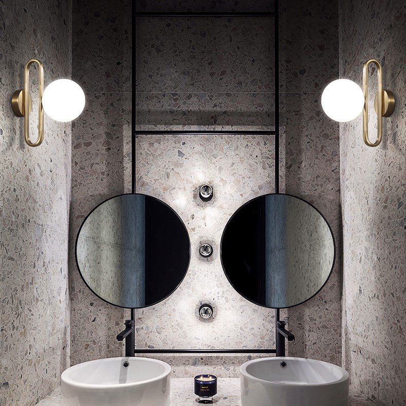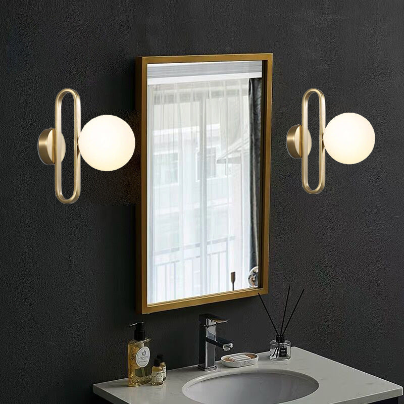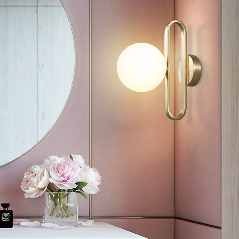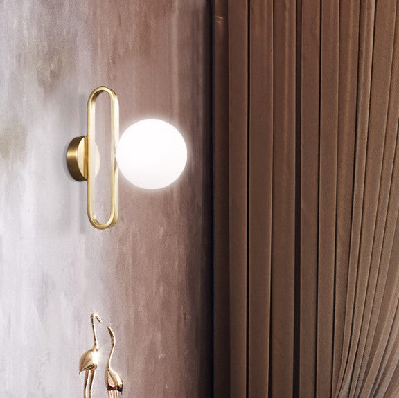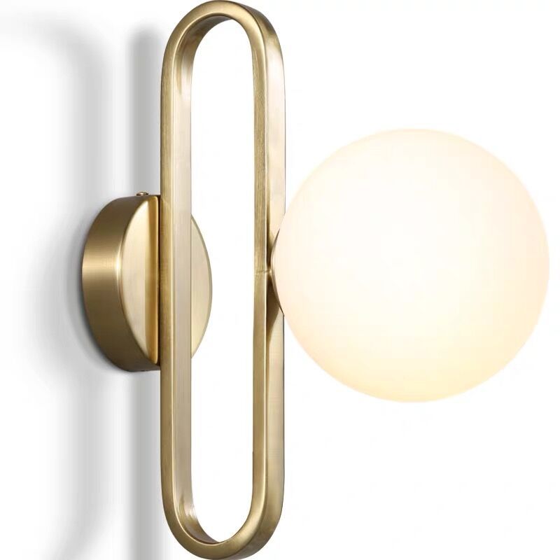 مصباح حائطي عصري بسيط على شكل كرة زجاجية مع حلقة حديدية ومصباح واحد لغرفة المعيشة