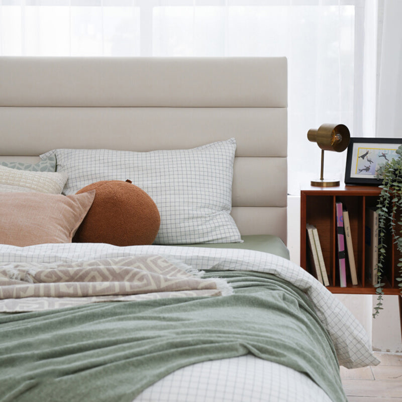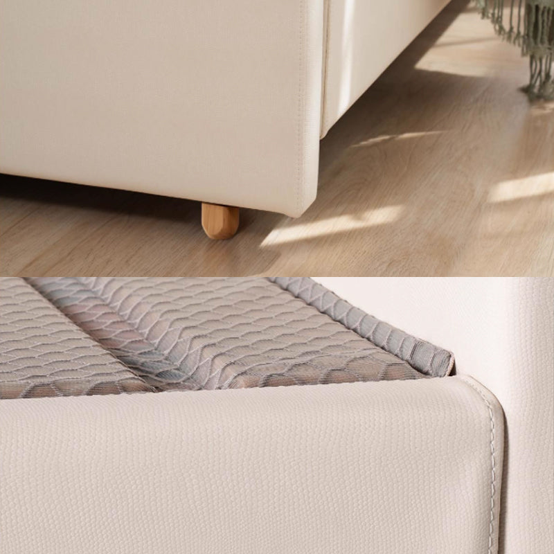Inspired by the soft elegance of morning mist, this bed combines a clean white palette with minimalist French design to create a calm, refined space. The rounded, segmented headboard is upholstered in skin-friendly microfiber leather---smooth, durable, and supportive.