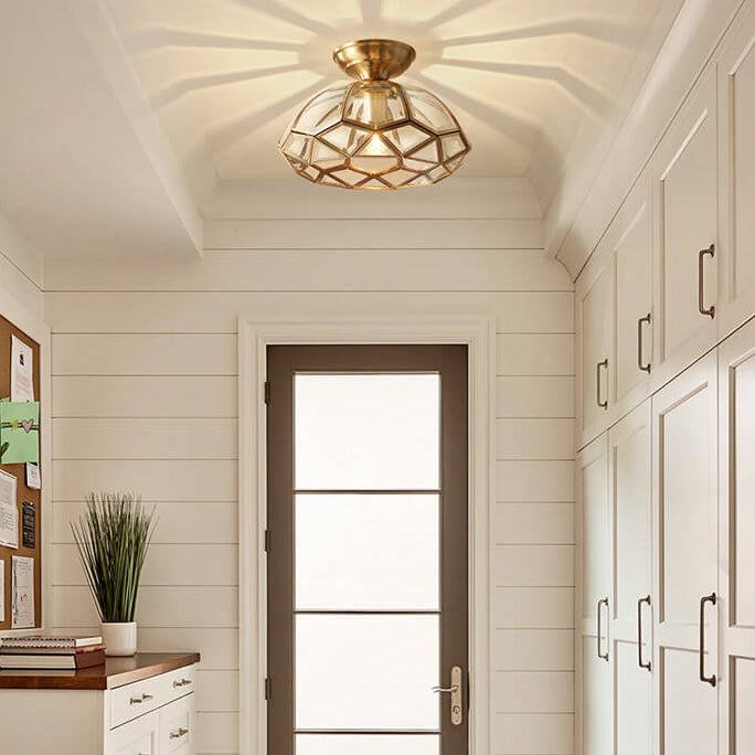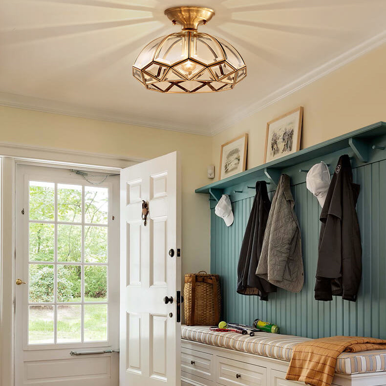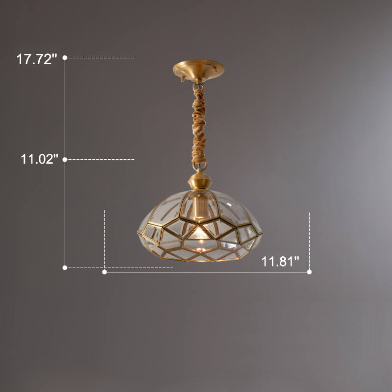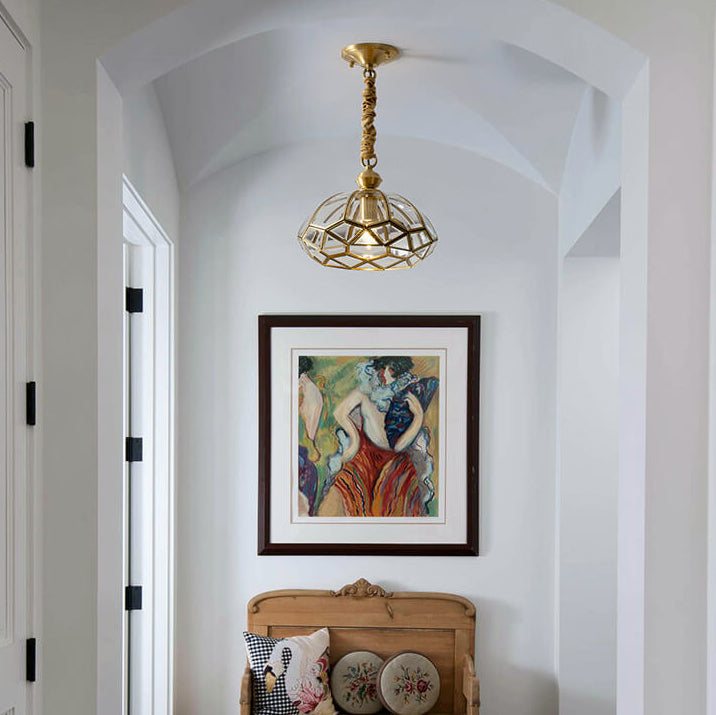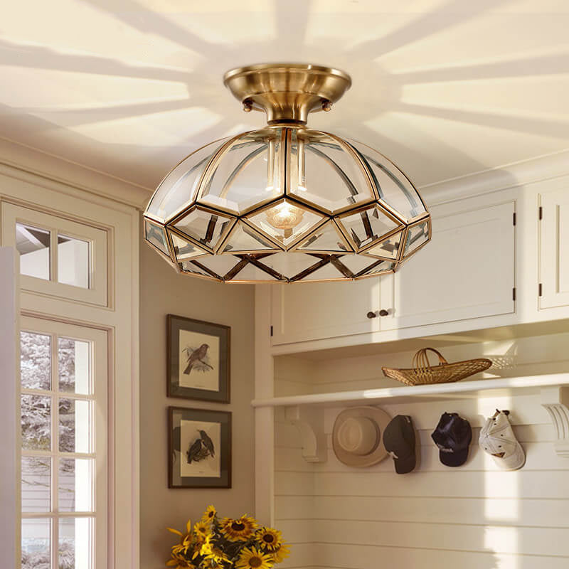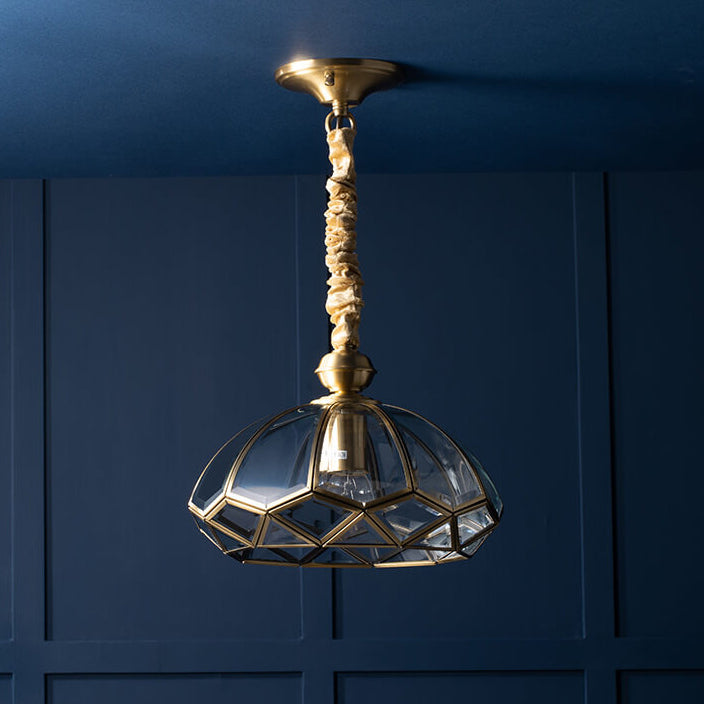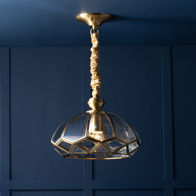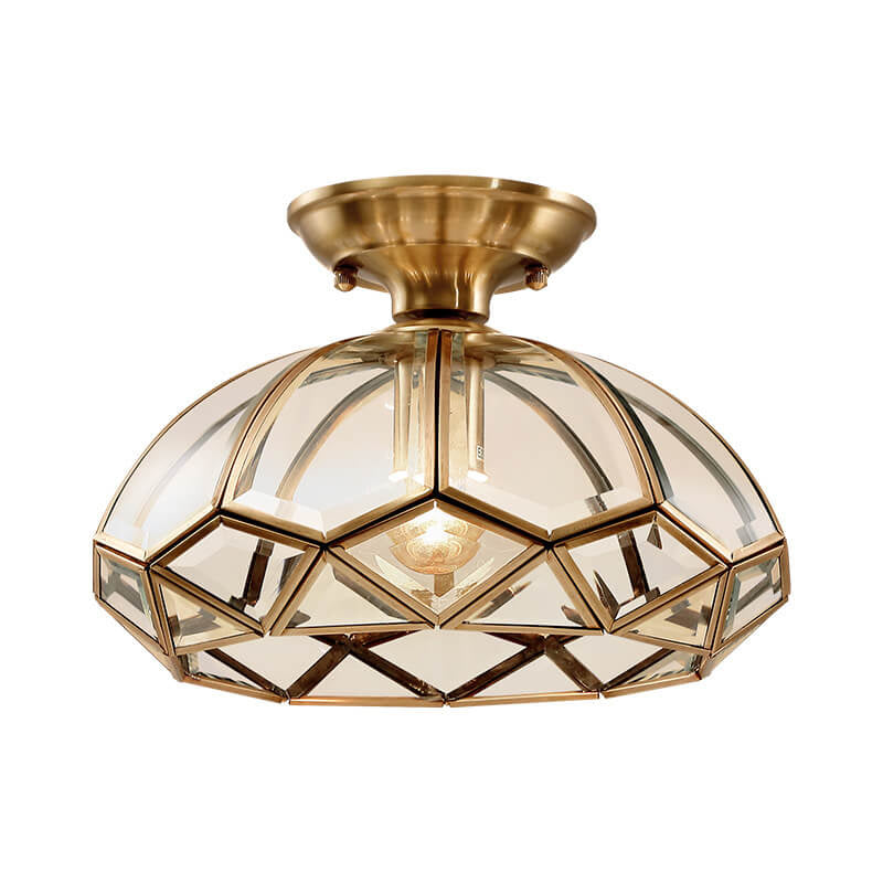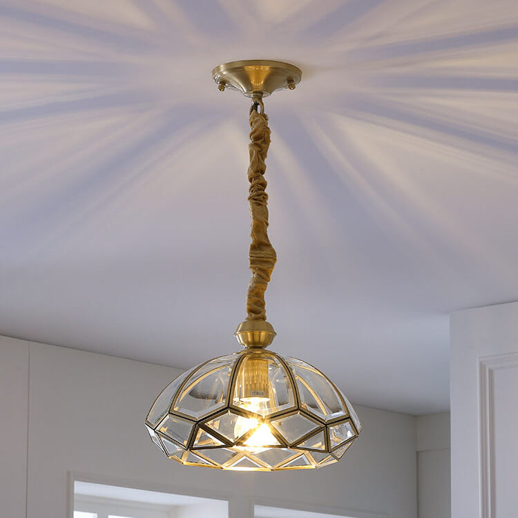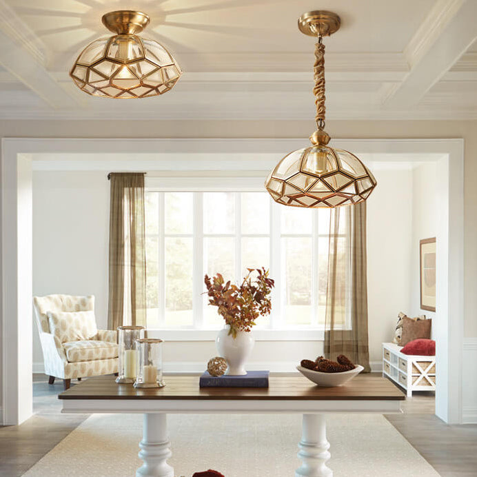 مصباح سقف معلق أوروبي من النحاس والزجاج بقبة واحدة