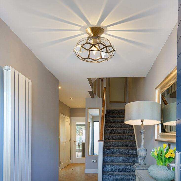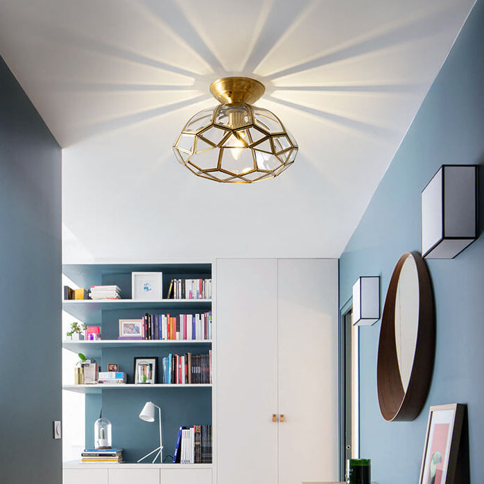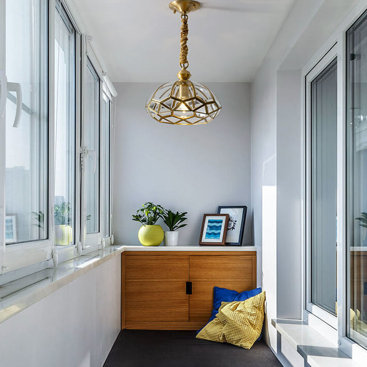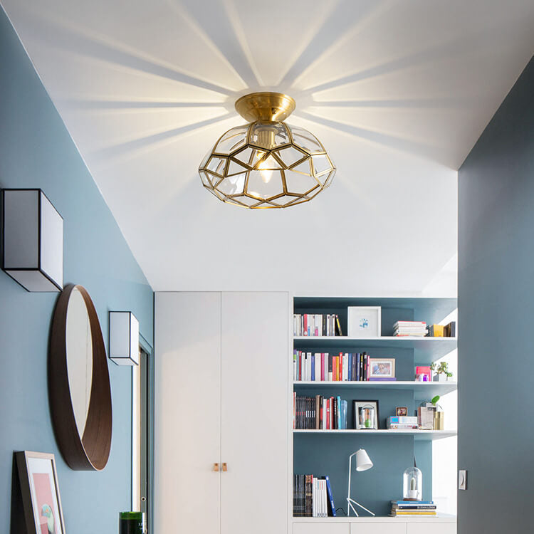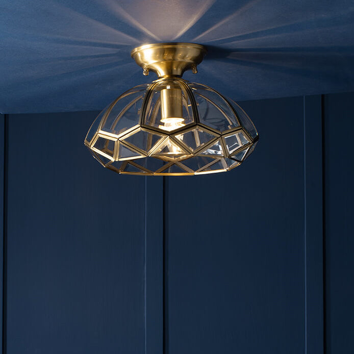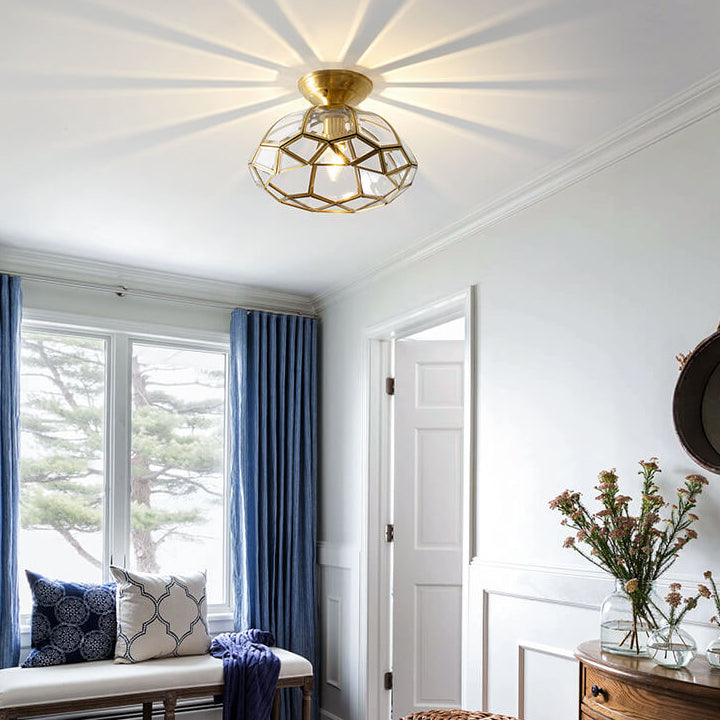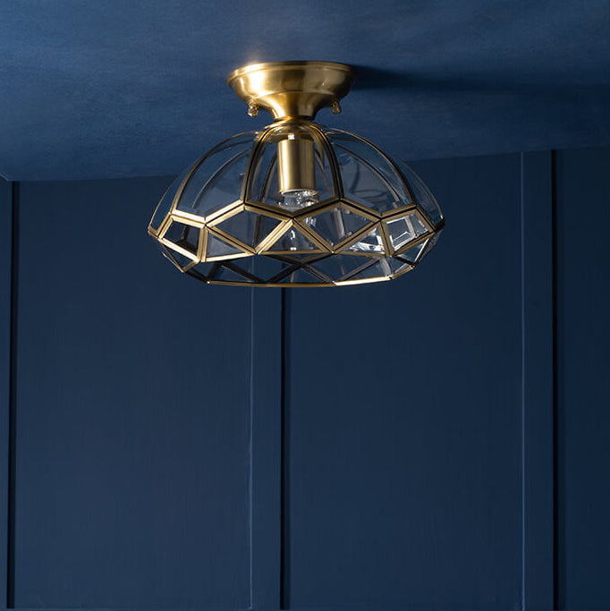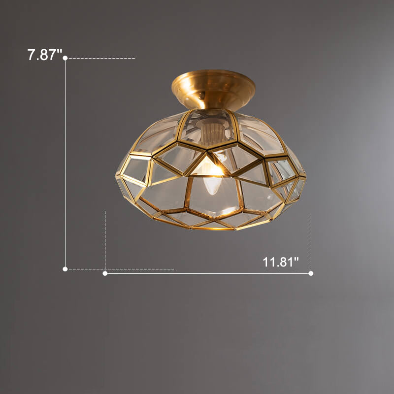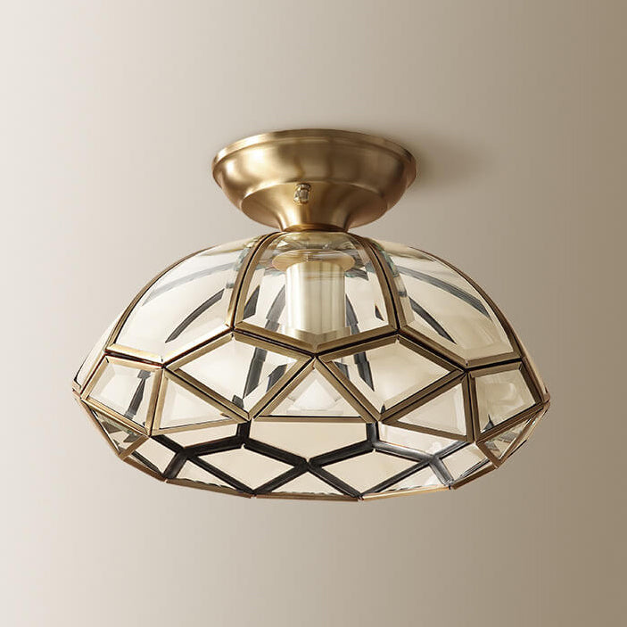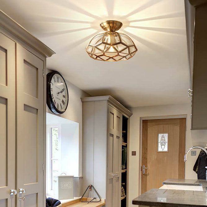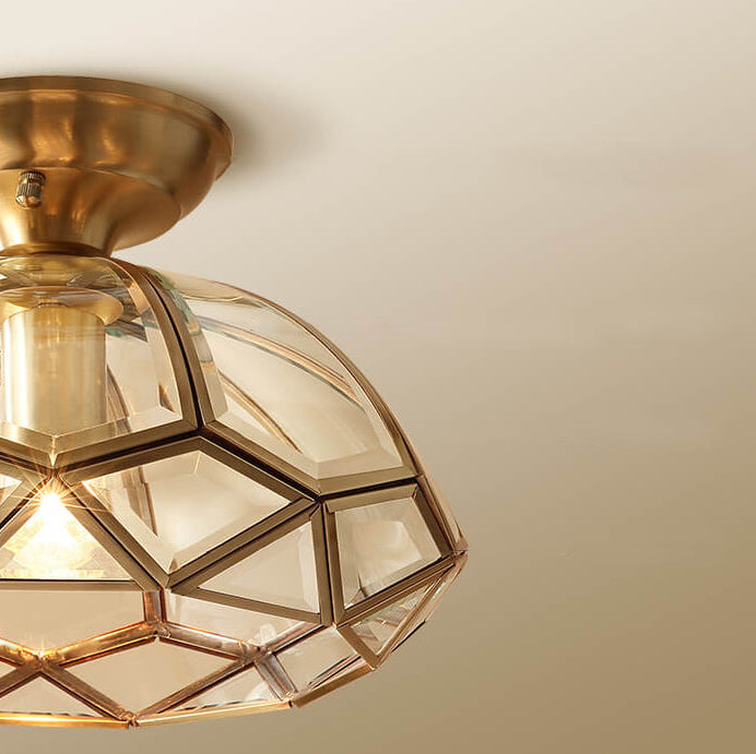 مصباح سقف معلق أوروبي من النحاس والزجاج بقبة واحدة