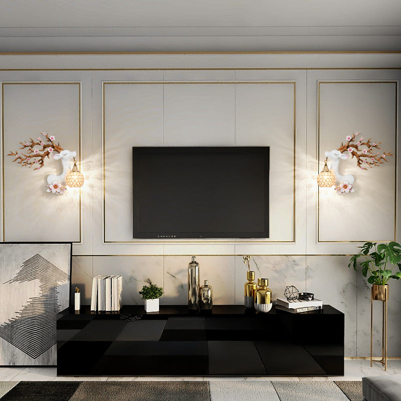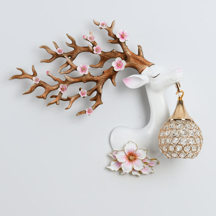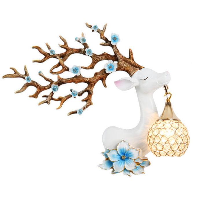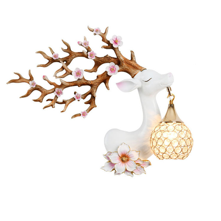 مصباح حائطي أوروبي إبداعي مصنوع من الراتنج على شكل قرن الغزال مع كرة بلورية وضوء واحد