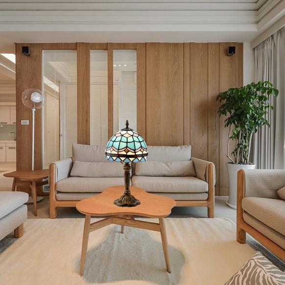 European Decorative Tiffany Stained Glass Tall Mushroom 1-Light LED Table Lamp