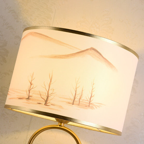European Fabric Metal Ring Base 1-Light Table Lamp