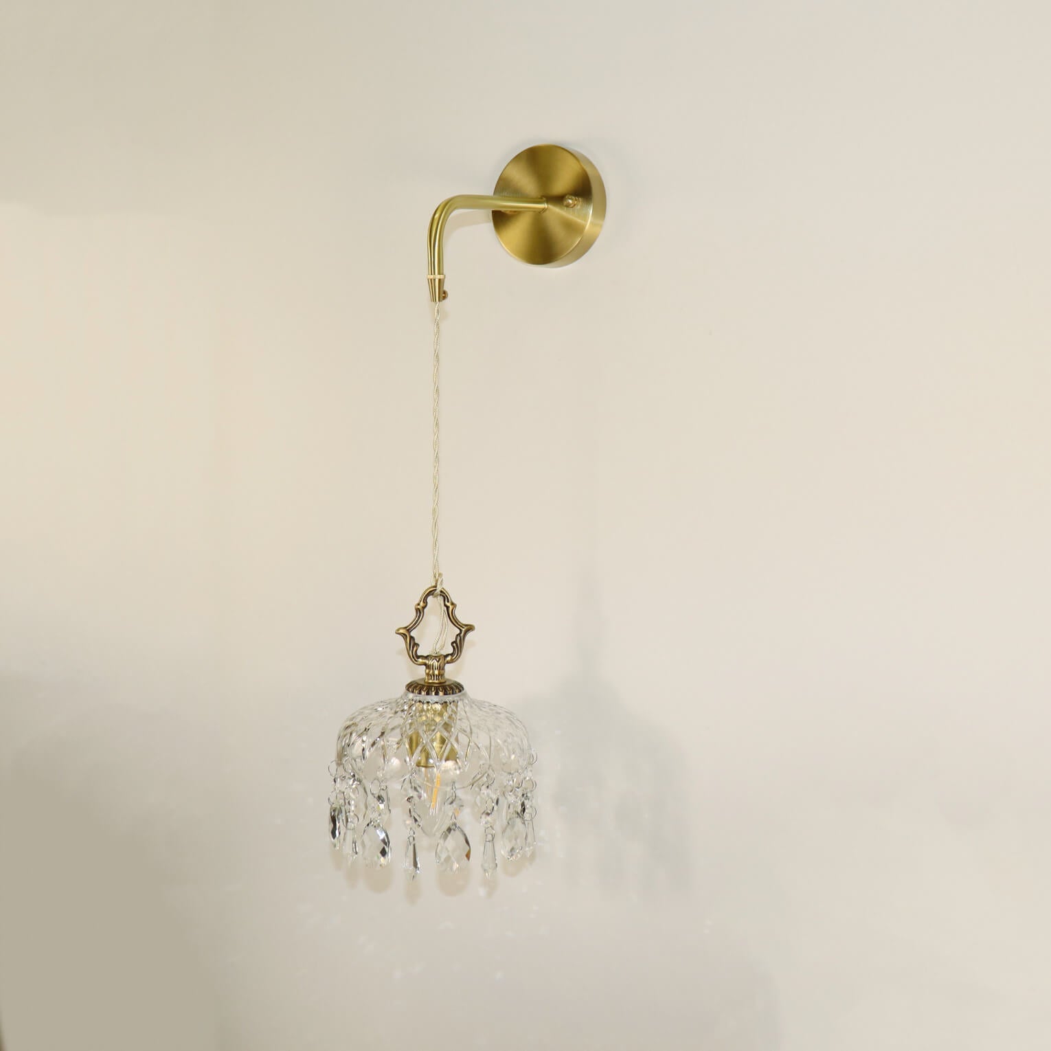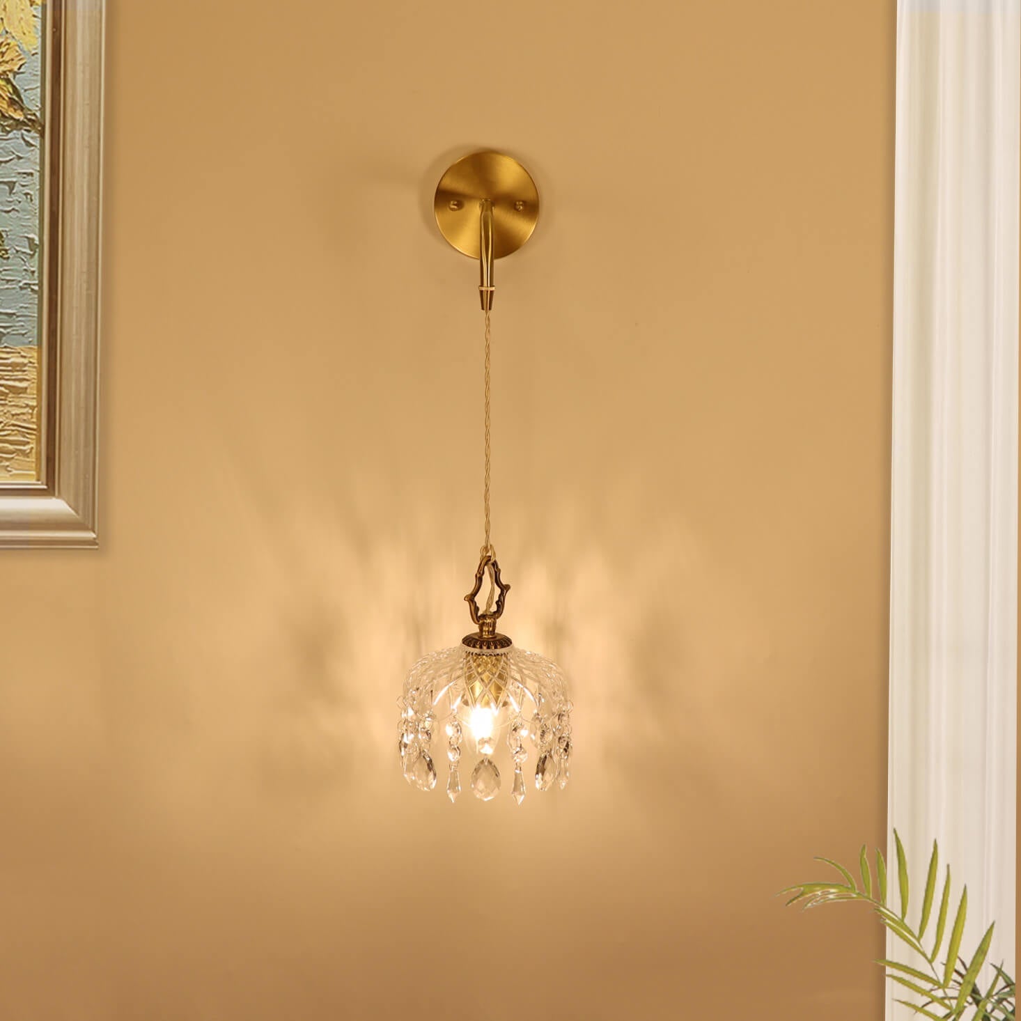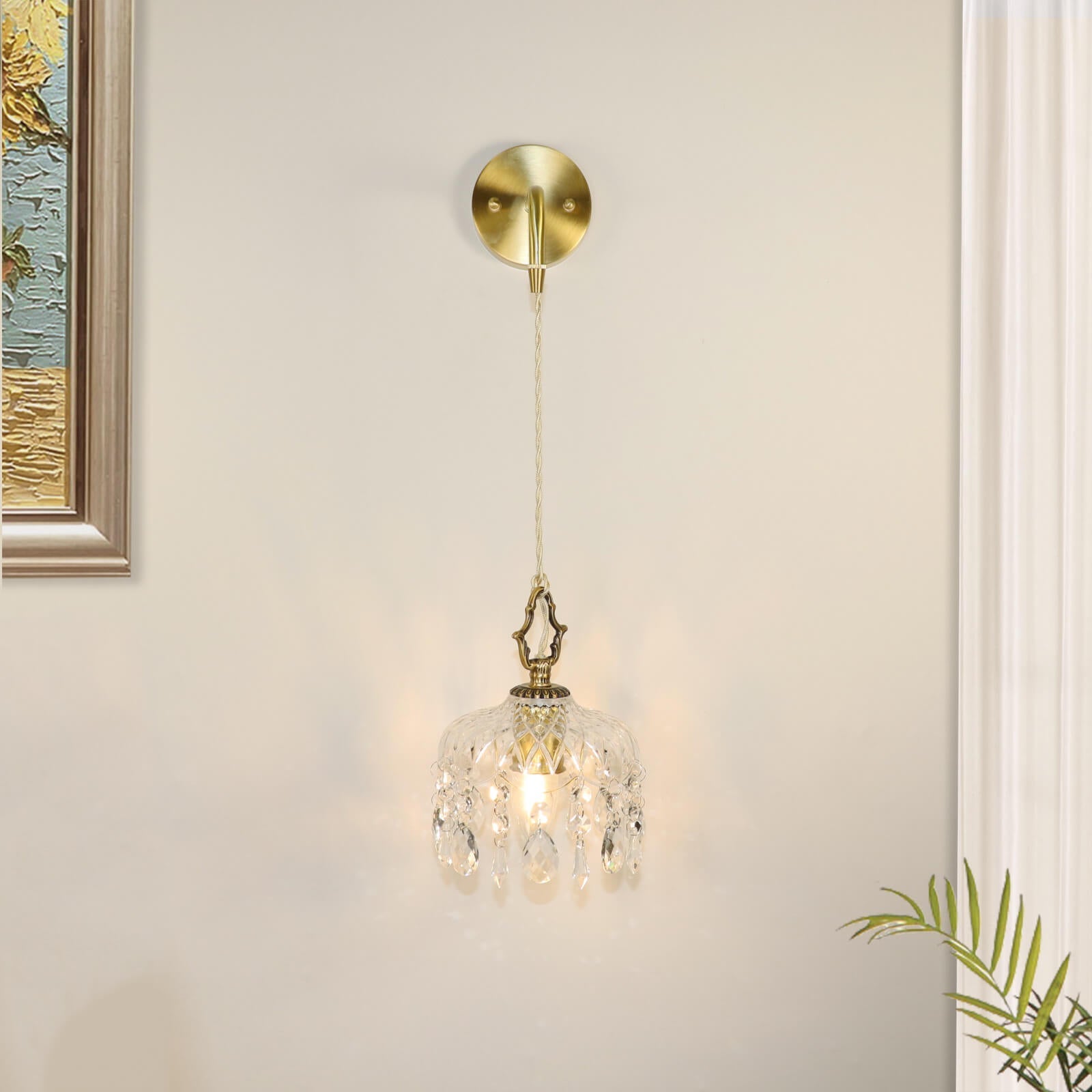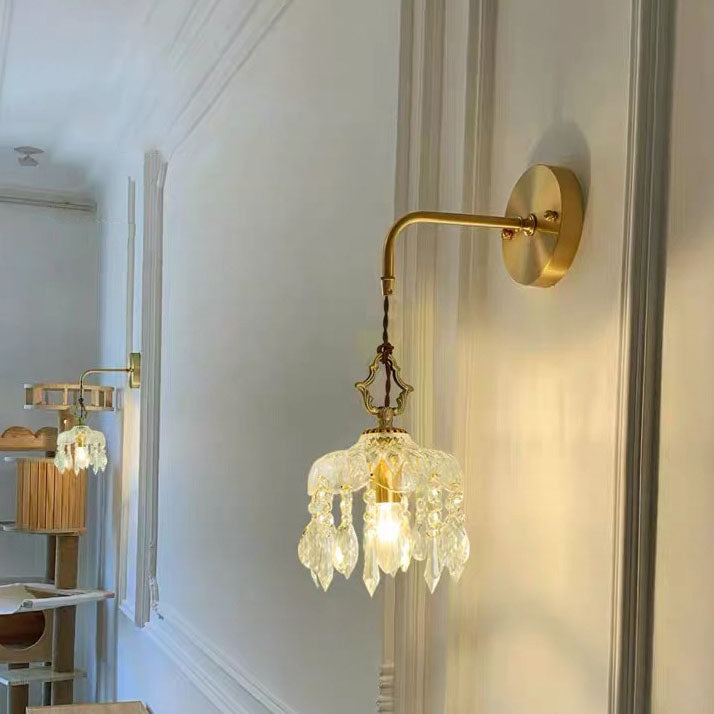 مصباح حائط أوروبي فاخر من النحاس والكريستال والزجاج مزود بمصباح واحد
