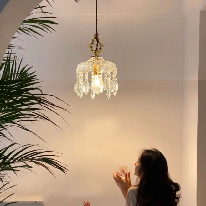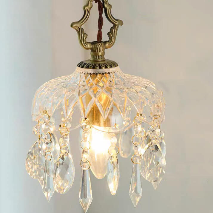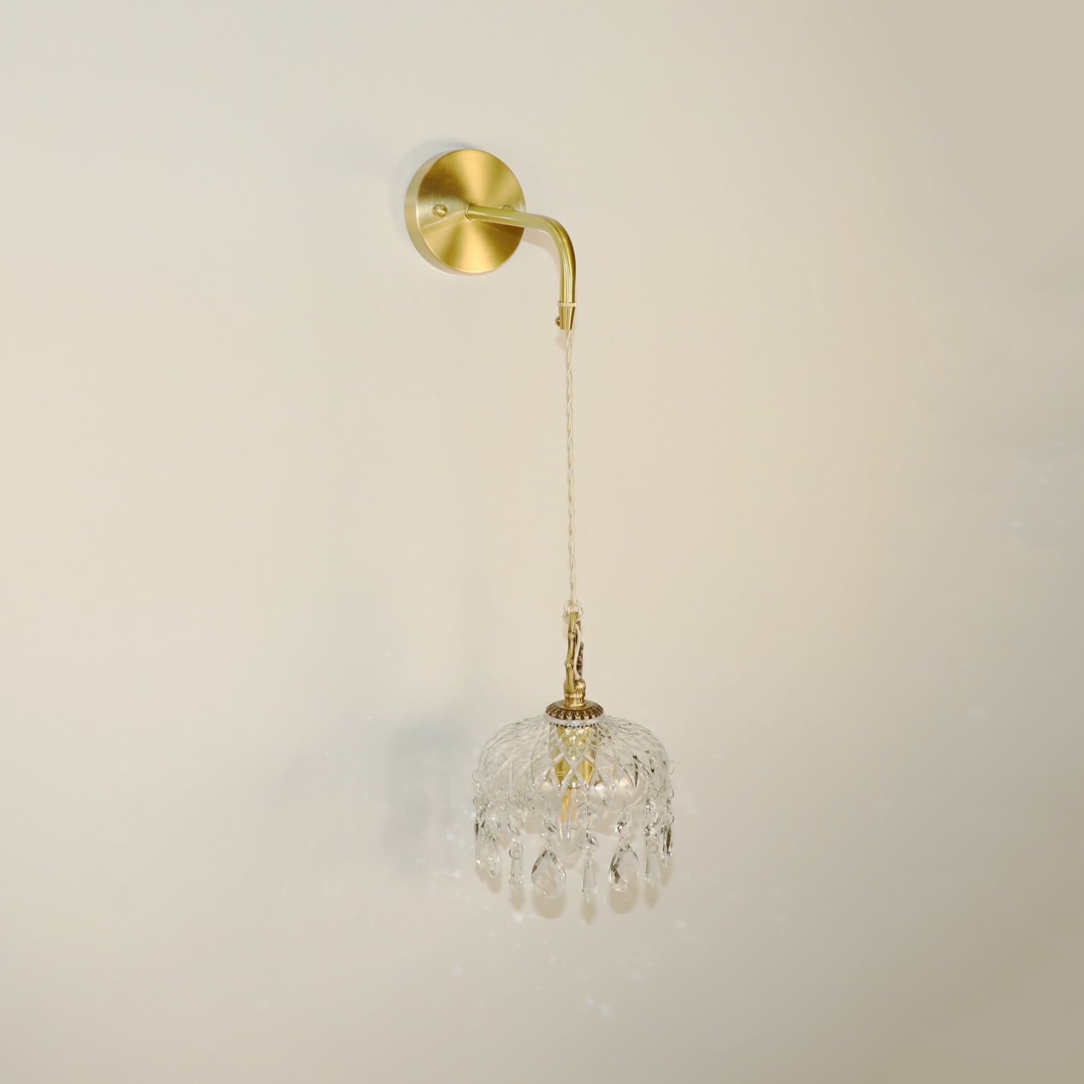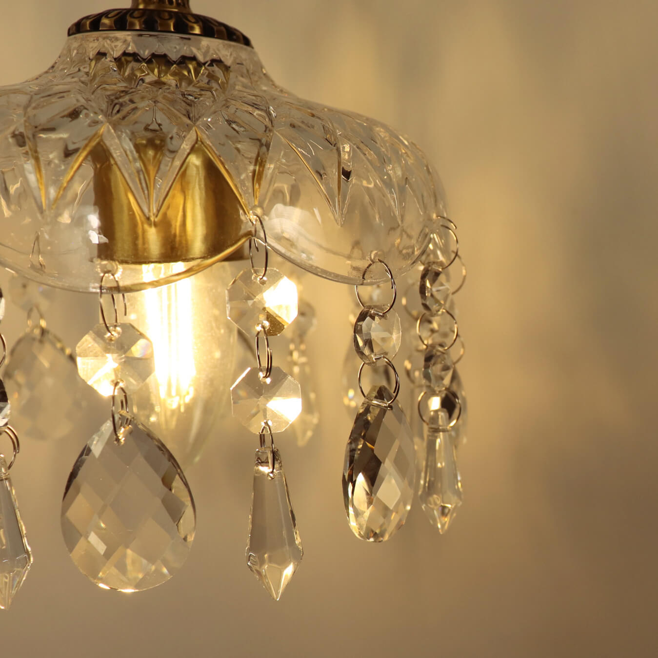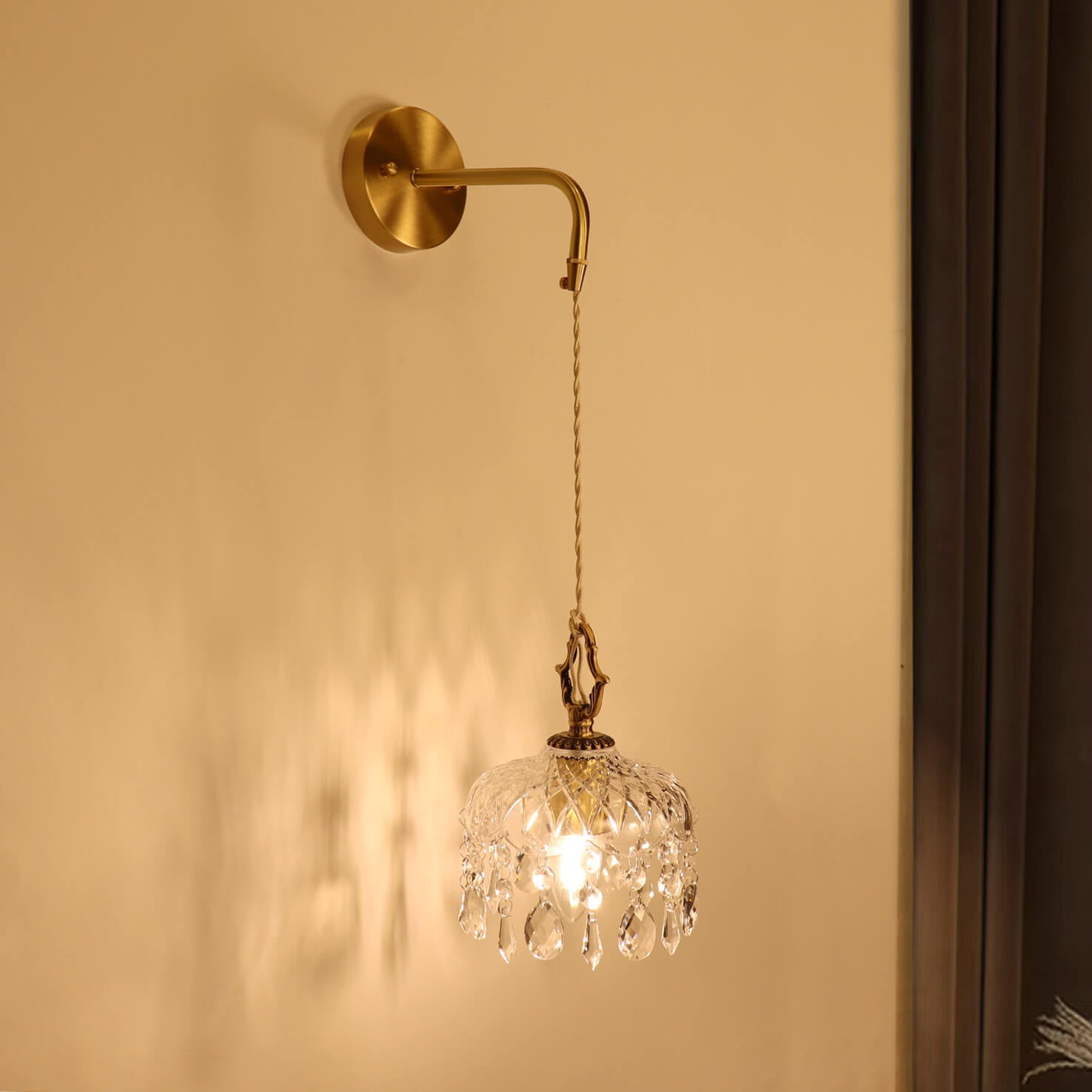 مصباح حائط أوروبي فاخر من النحاس والكريستال والزجاج مزود بمصباح واحد