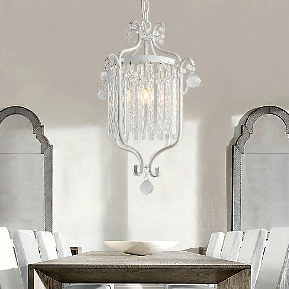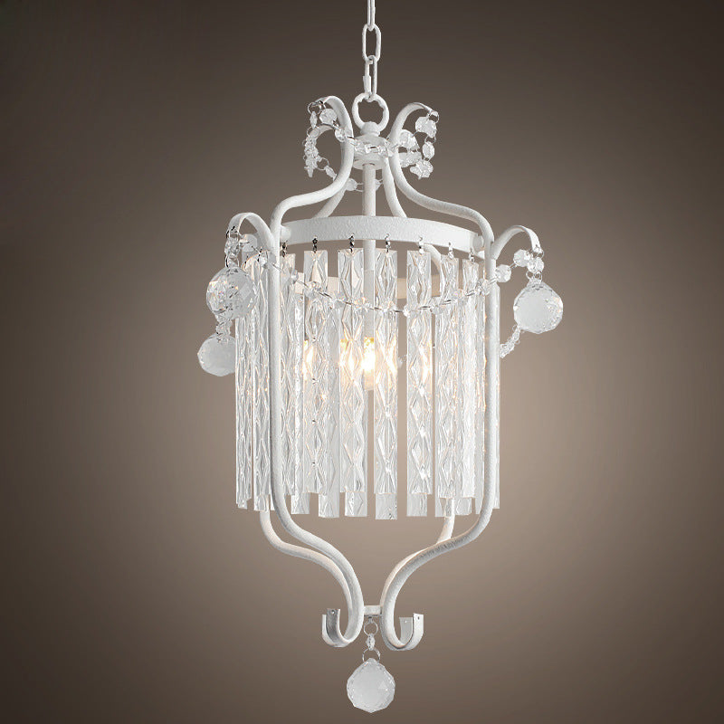 مصباح معلق أوروبي فاخر من الكريستال على شكل قفص حديدي مزود بمصباح واحد