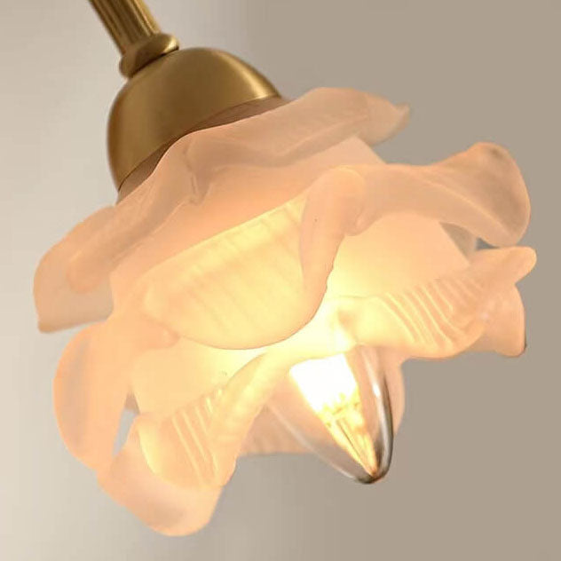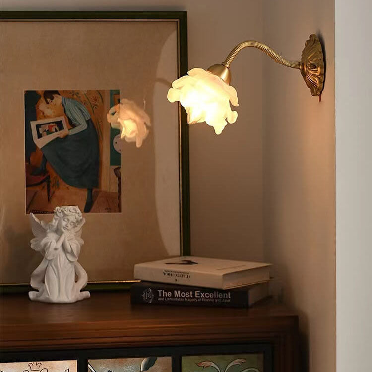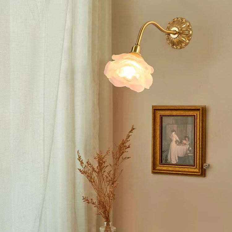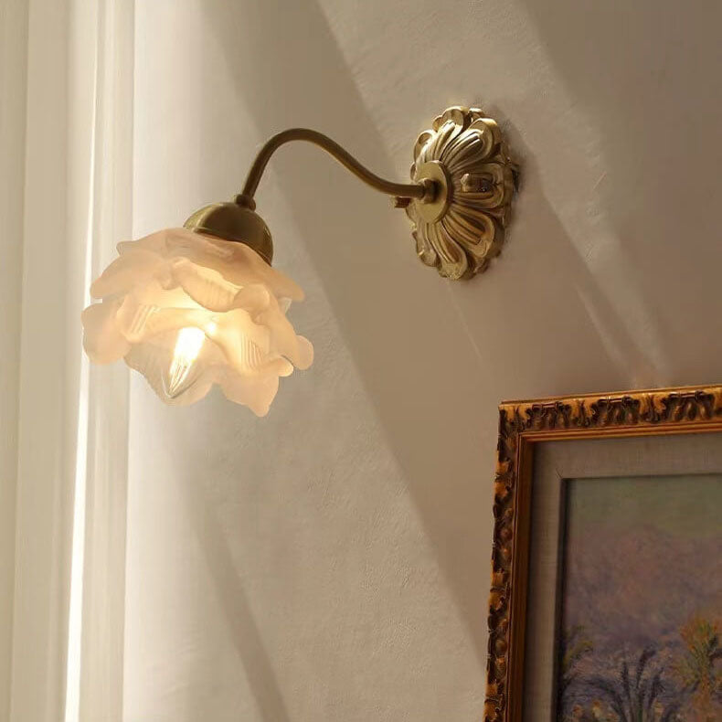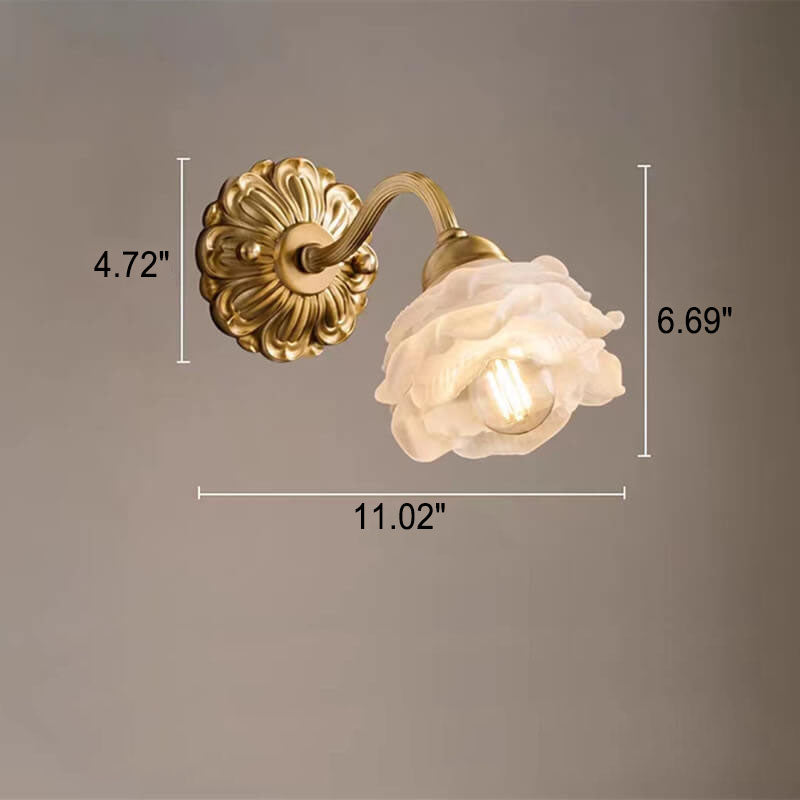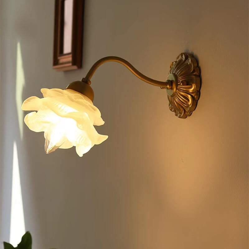 مصباح حائط أوروبي فاخر من الزجاج والنحاس بتصميم زهري فاتح، مزود بمصباح واحد
