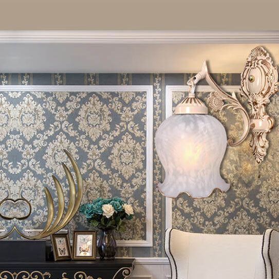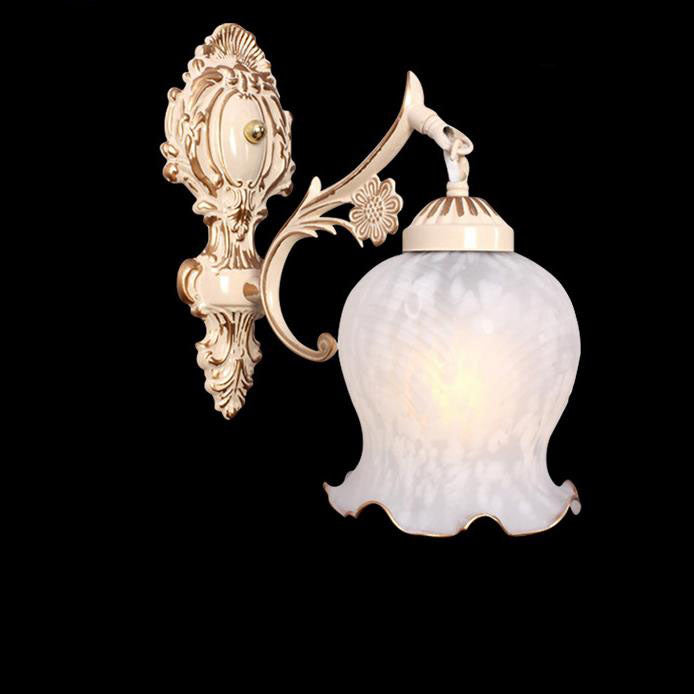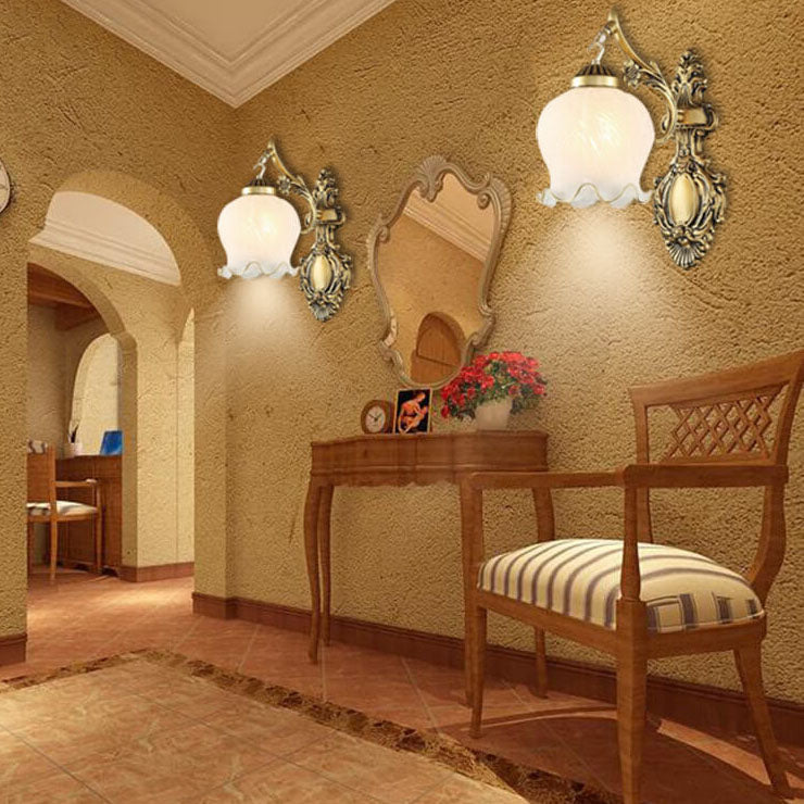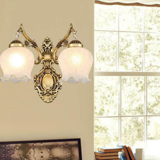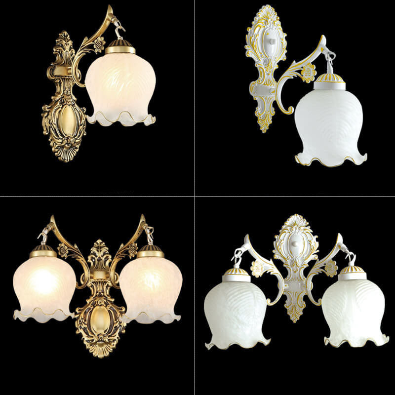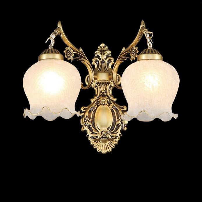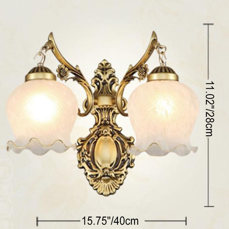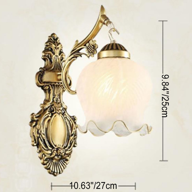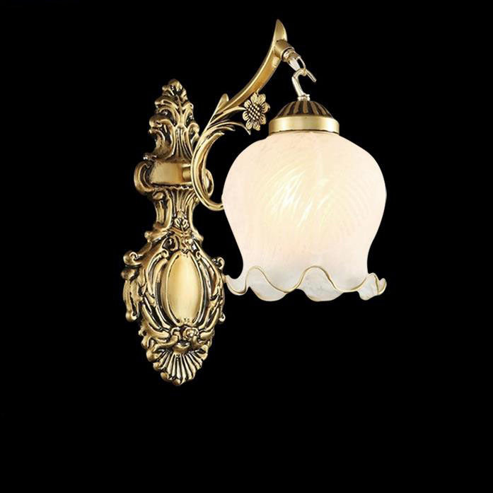 مصباح حائط فاخر على الطراز الأوروبي بغطاء زهرة نحاسي كامل بنصف ضوء