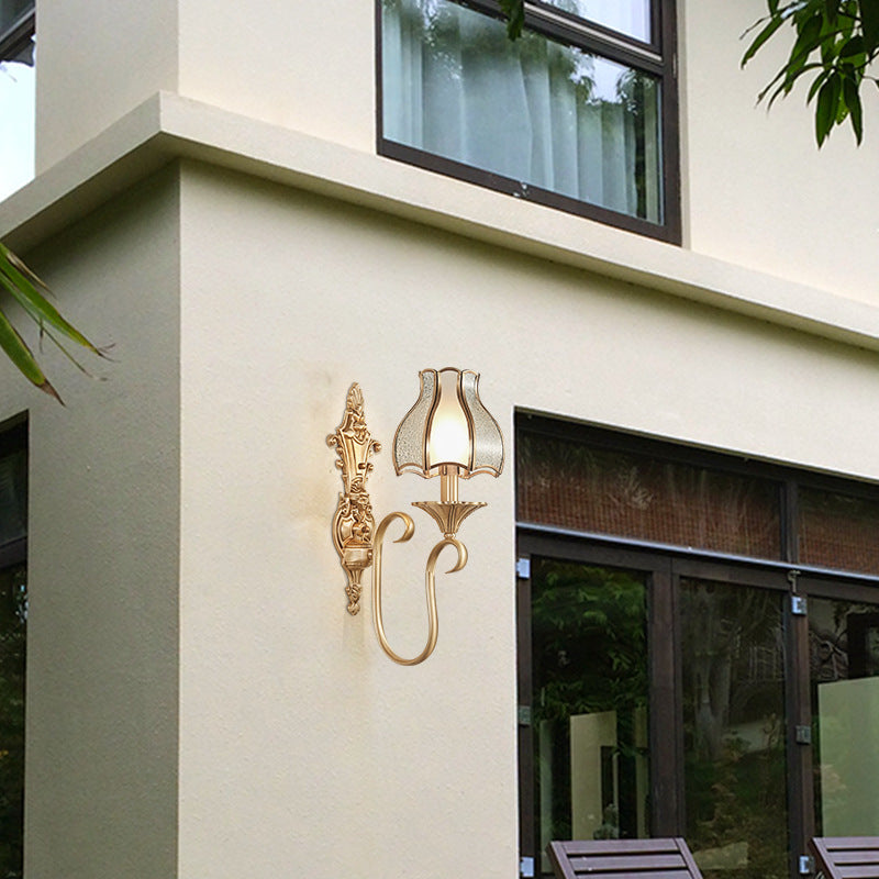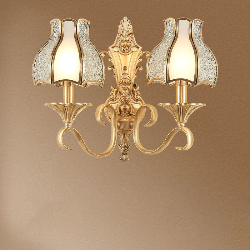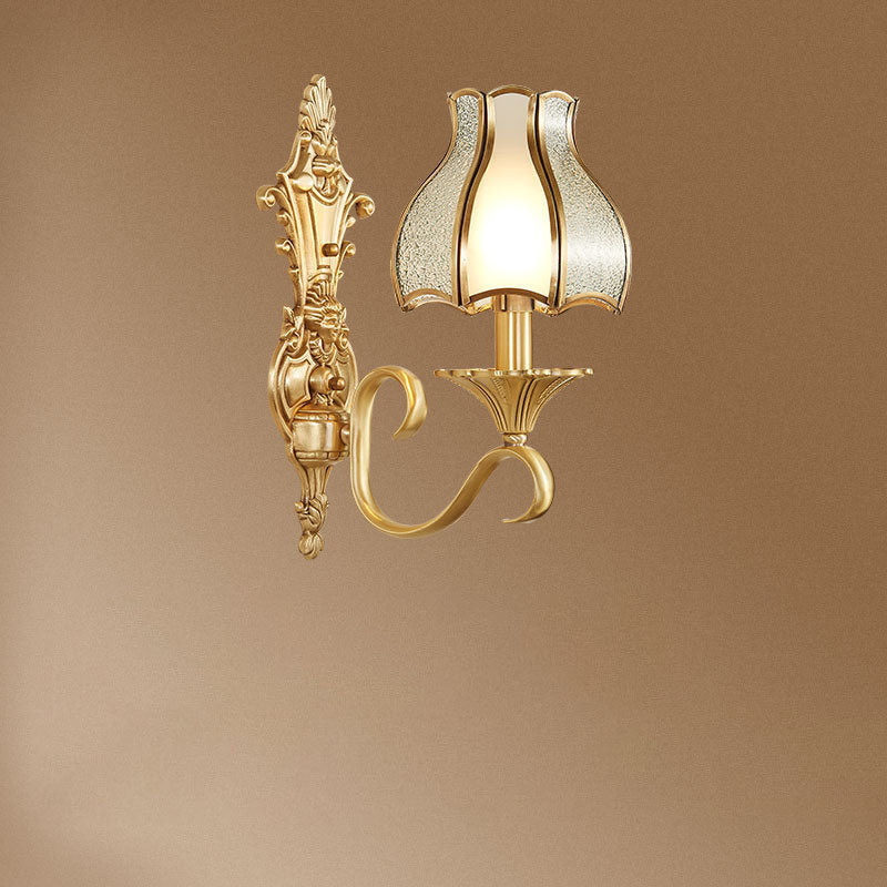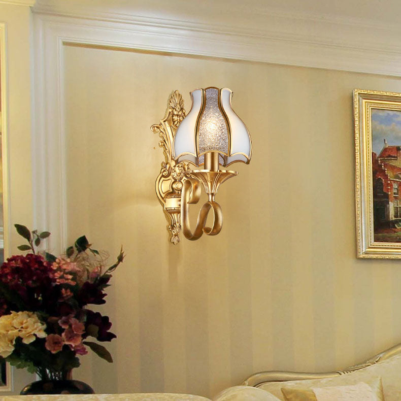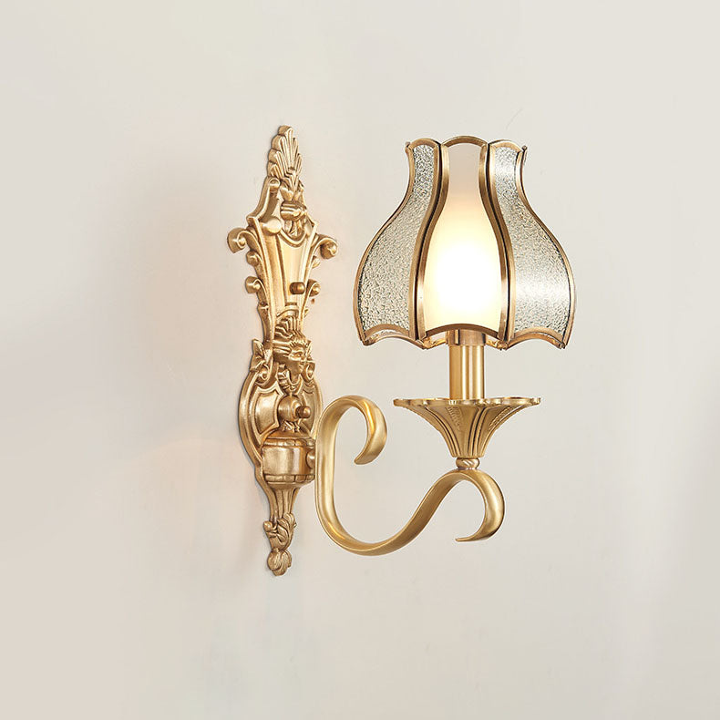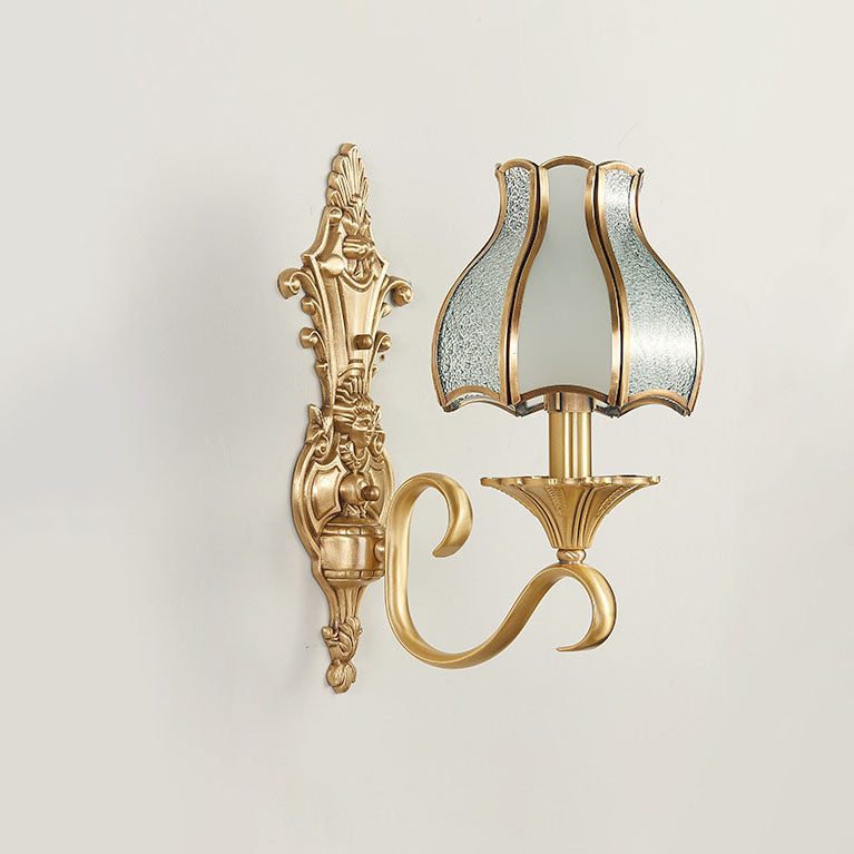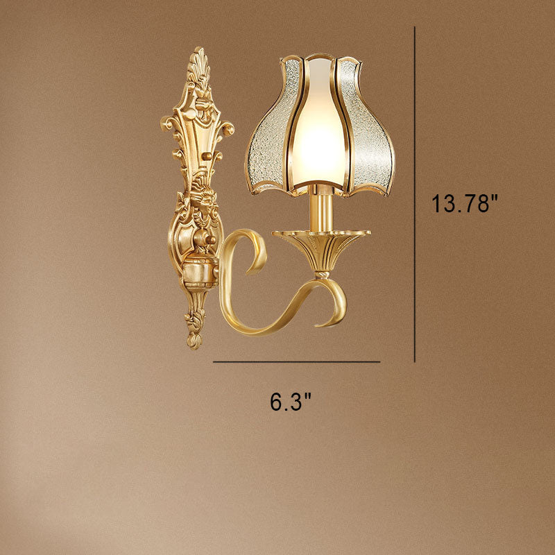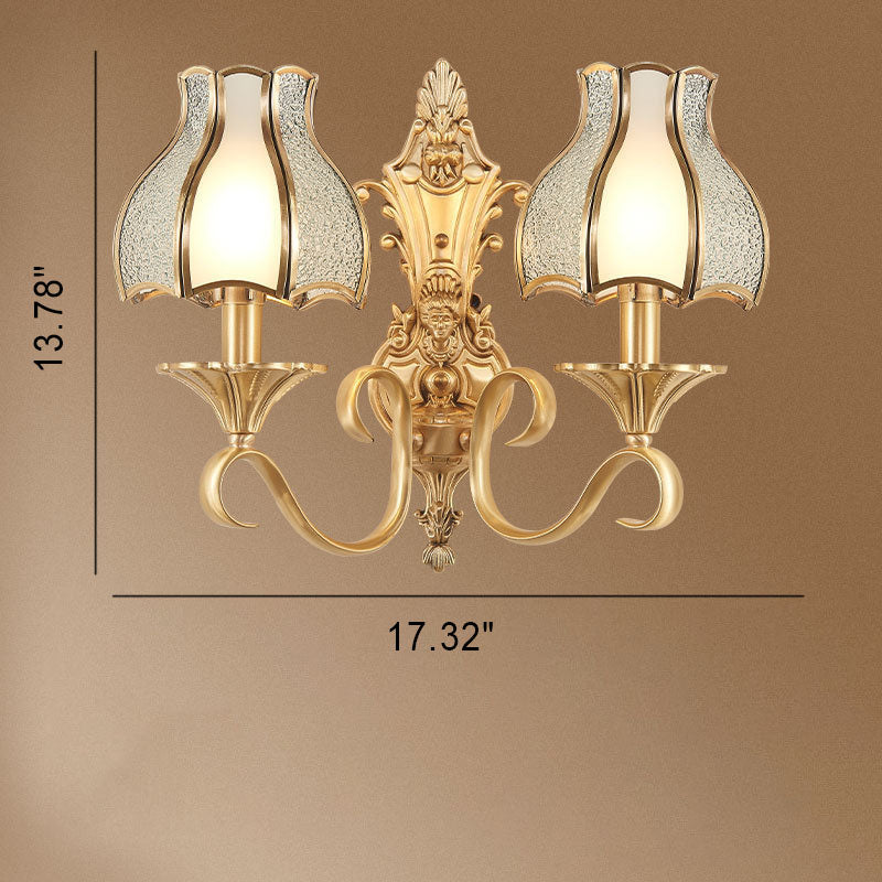 مصباح حائطي فاخر من النحاس والزجاج بتصميم عتيق على الطراز الأوروبي مزود بنصف ضوء