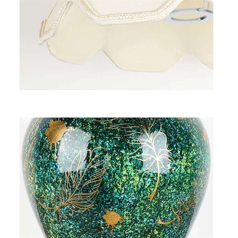 European Luxury Emerald Ceramic Fabric 1-Light Table Lamp