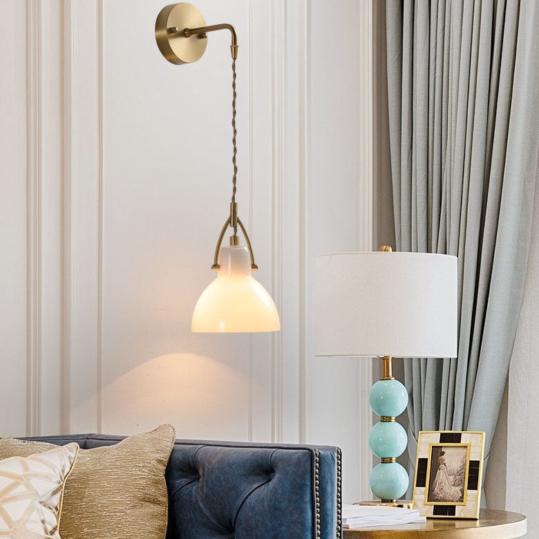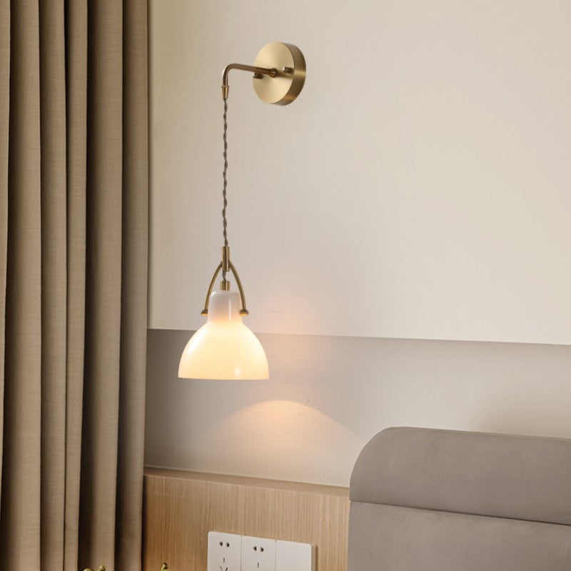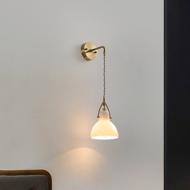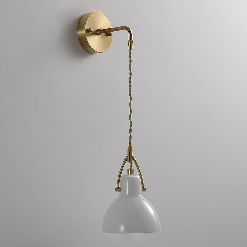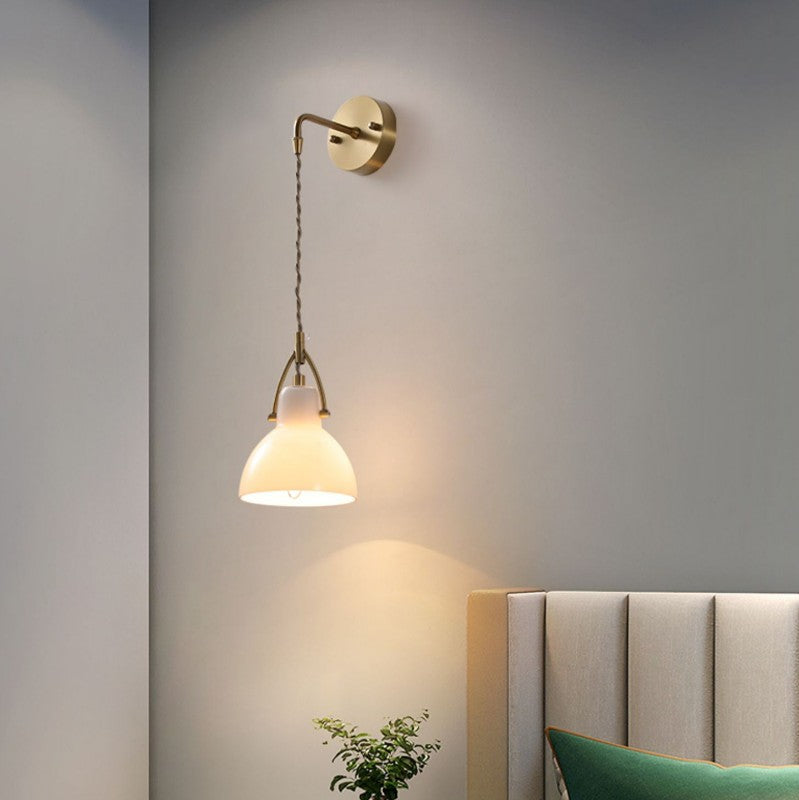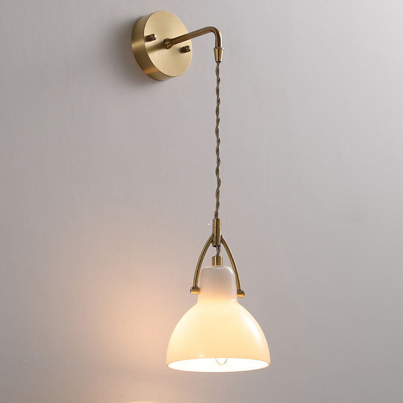 مصباح حائطي أوروبي بسيط مصنوع بالكامل من النحاس والزجاج ومصباح واحد