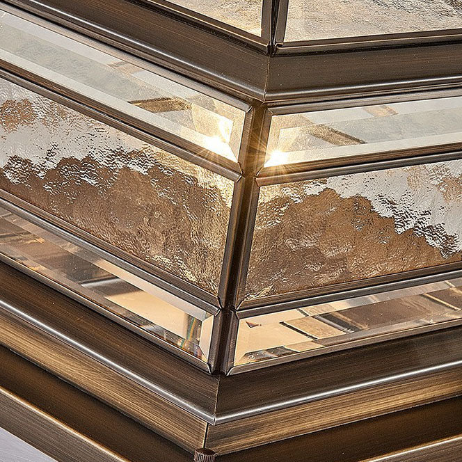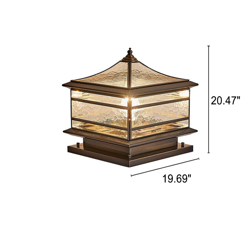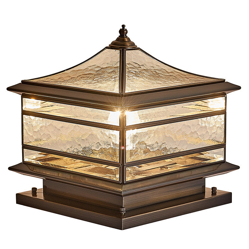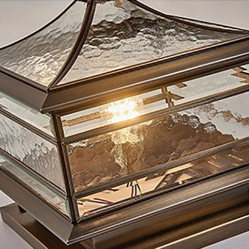 European Outdoor Brass Glass Square 1/2 Light Waterproof Pillar Landscape Light