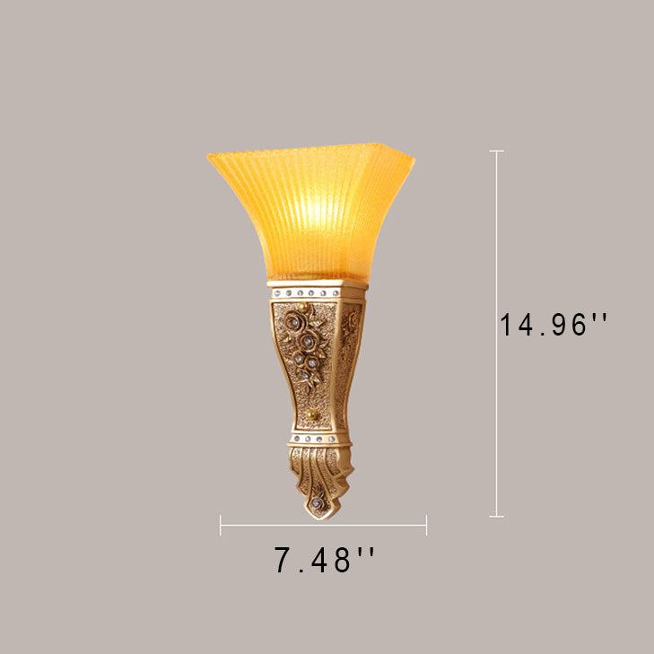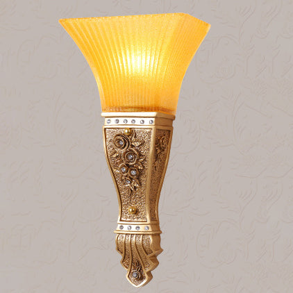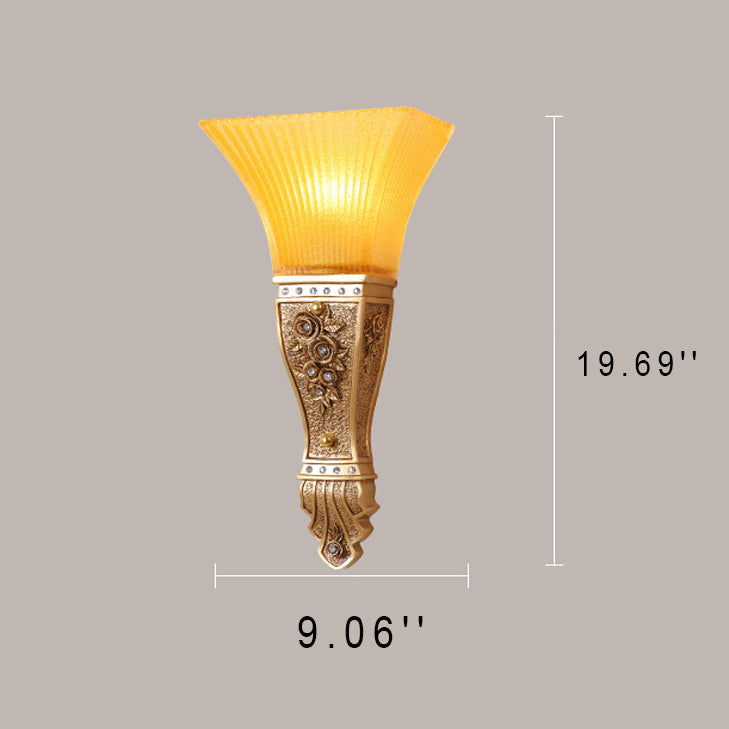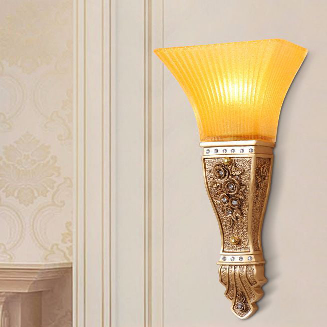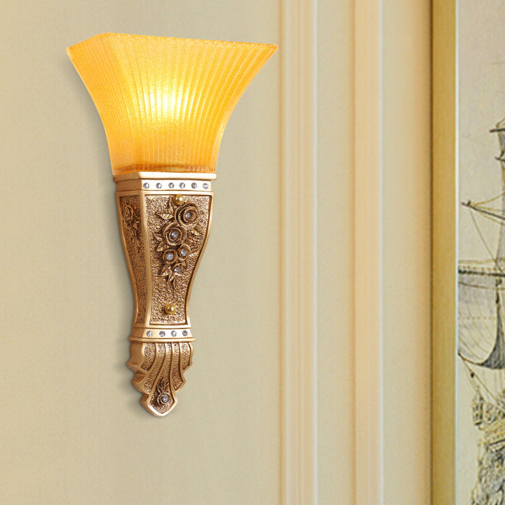 مصباح حائطي بتصميم أوروبي عتيق مصنوع من الراتنج المنحوت على الزجاج ومُضاء بضوء واحد