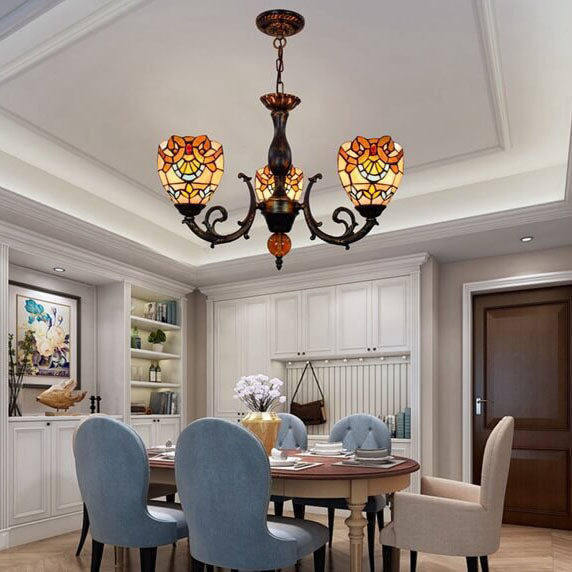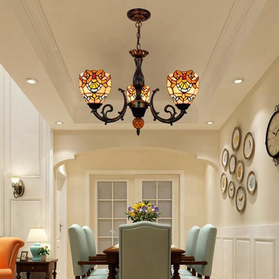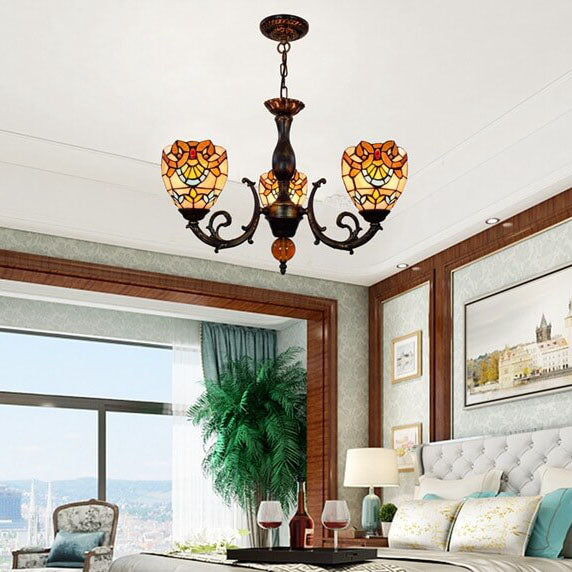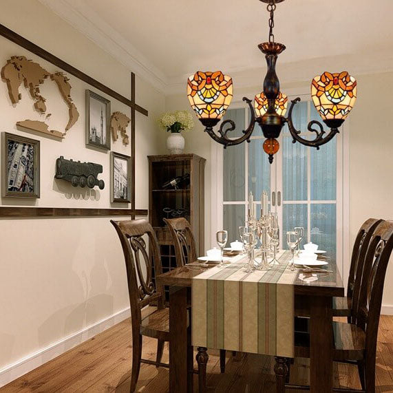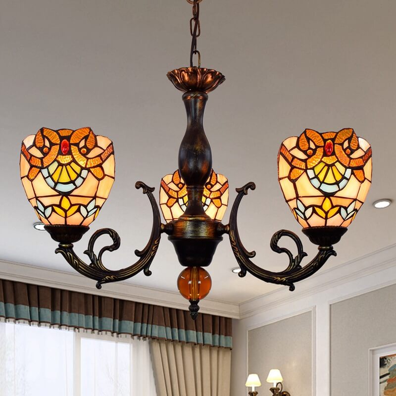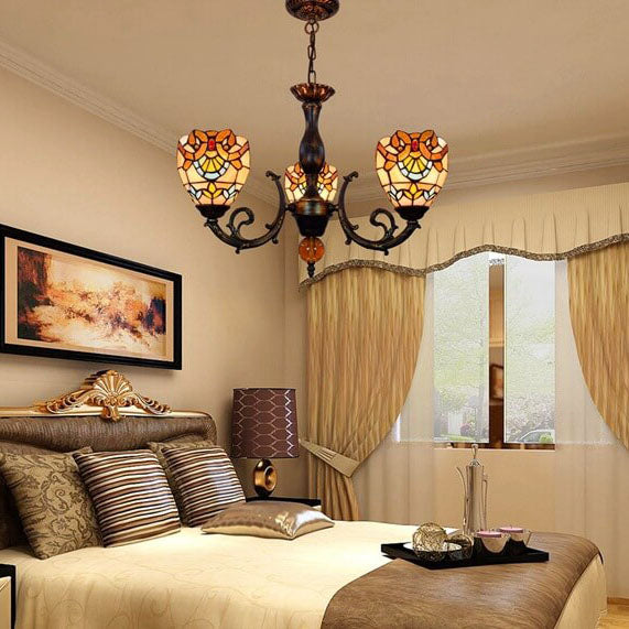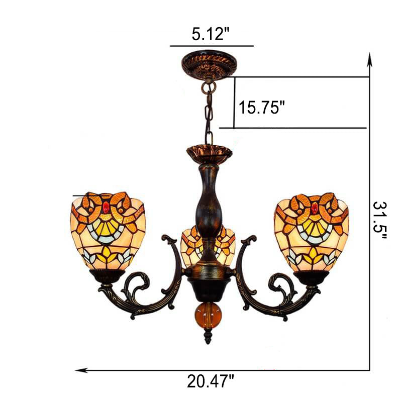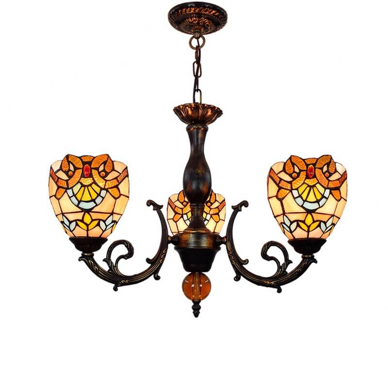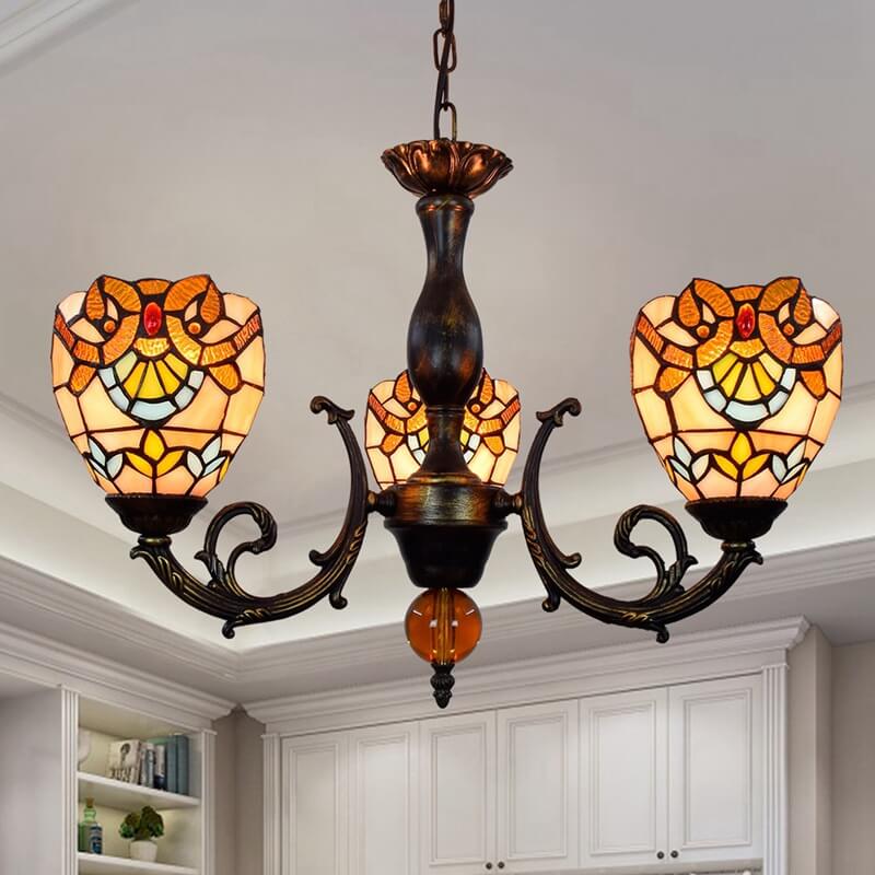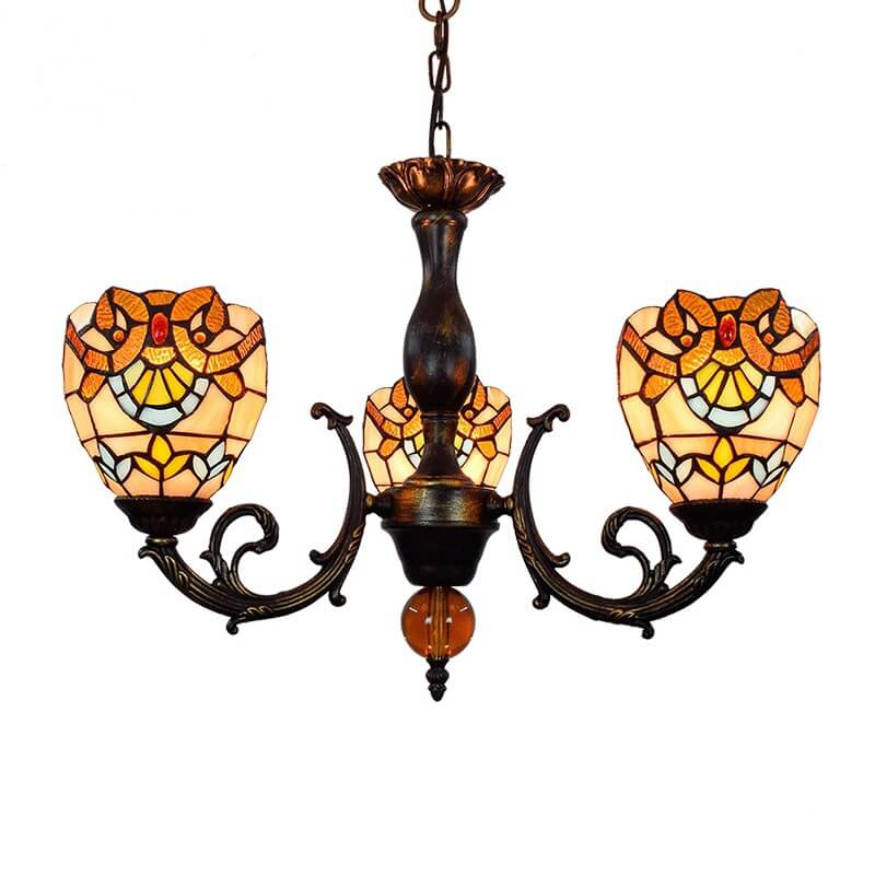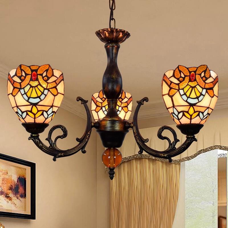 ثريا تيفاني باروك بيل من الزجاج الملون على الطراز الأوروبي بثلاثة مصابيح