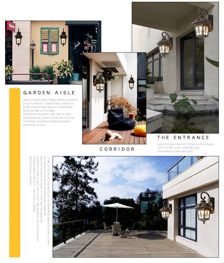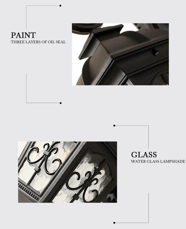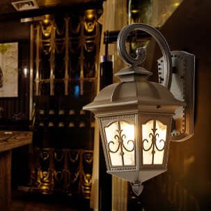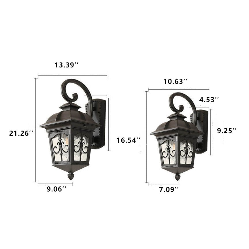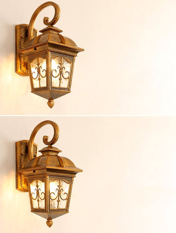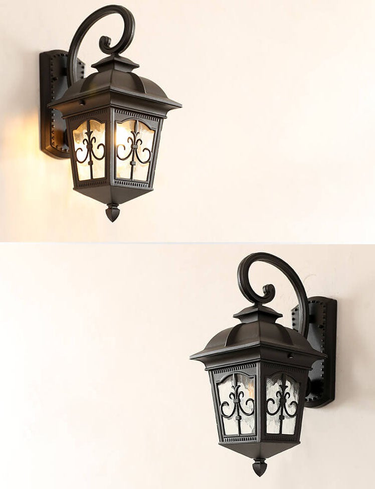 مصباح حائط خارجي مقاوم للماء على شكل فانوس مربع عتيق على الطراز الأوروبي