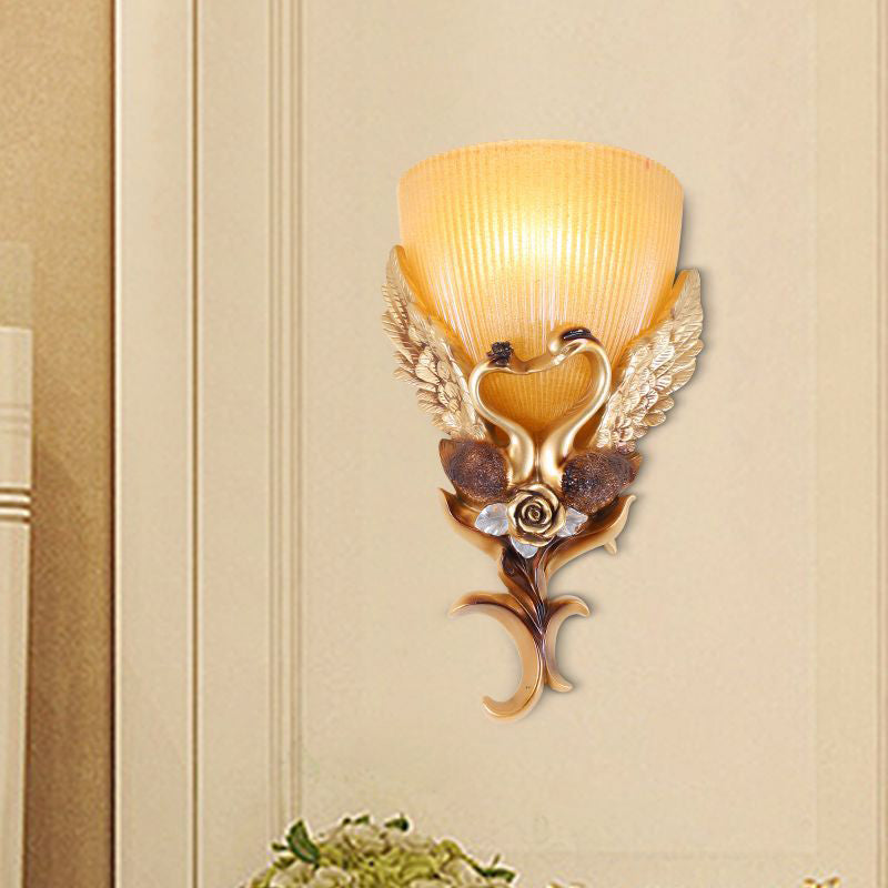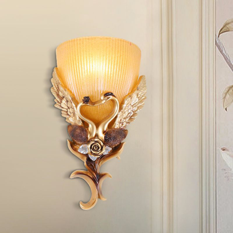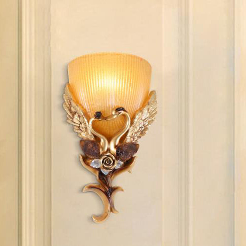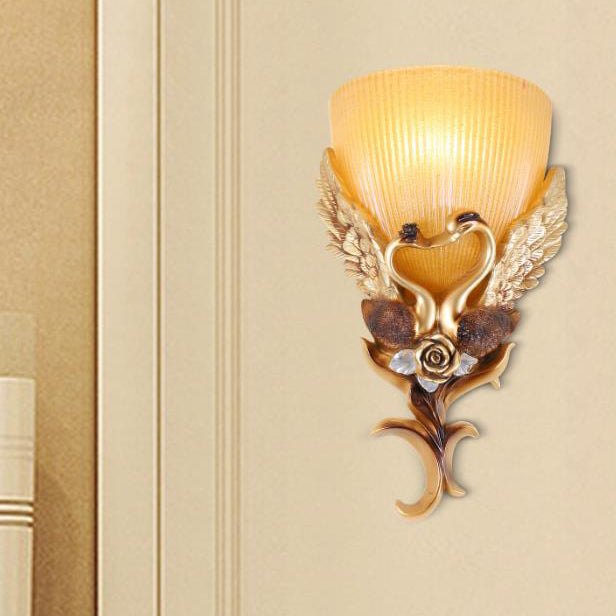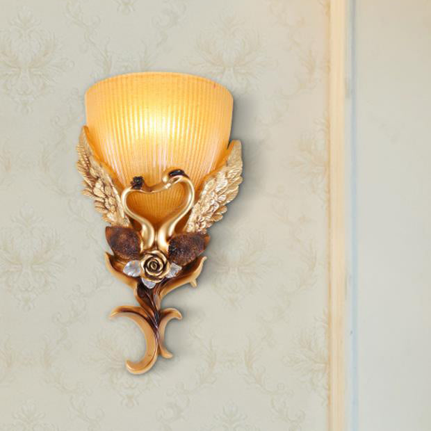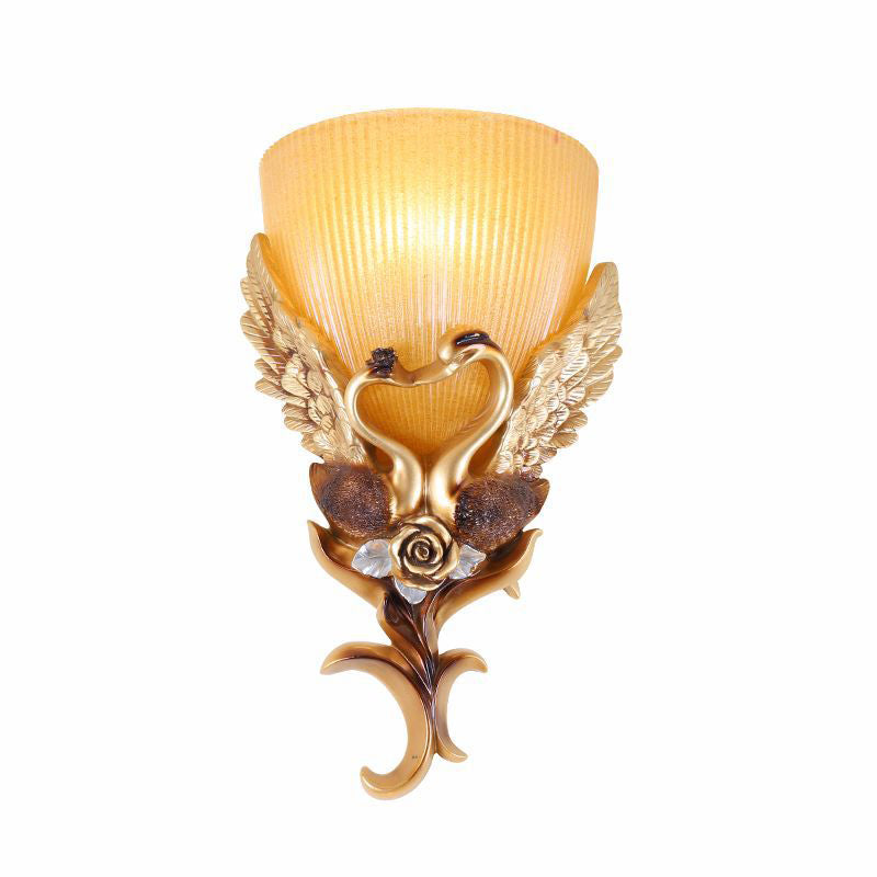مصباح حائطي من الراتنج الزجاجي المنحوت على شكل بجعة أوروبية، مزود بمصباح واحد