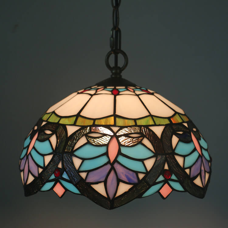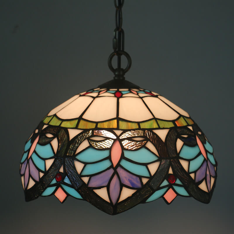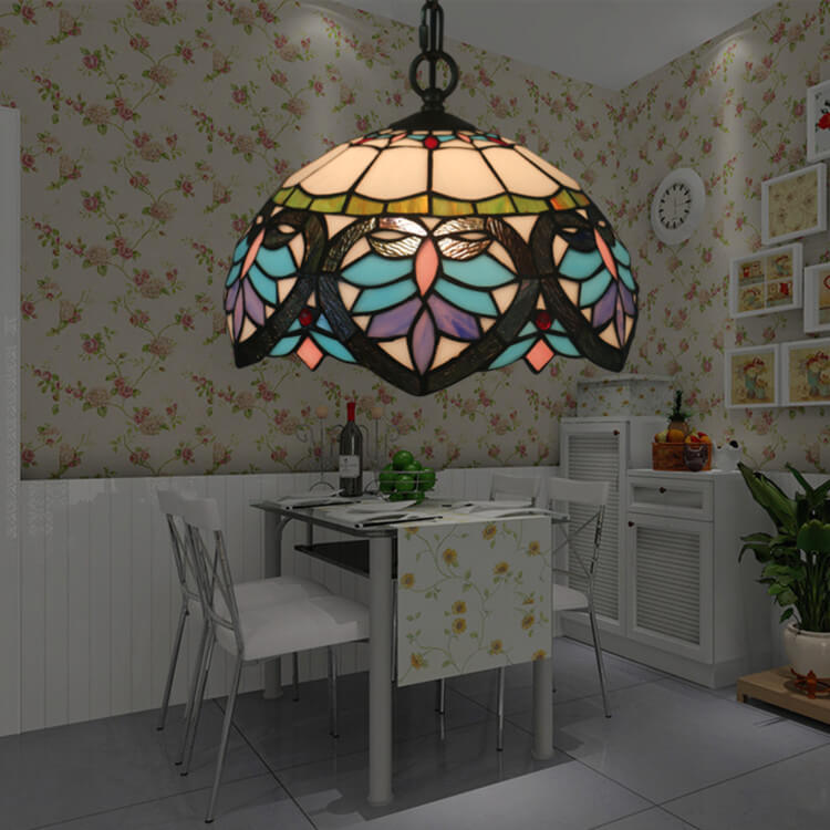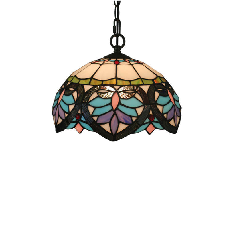 مصباح معلق أوروبي من الزجاج الملون تيفاني فلورا، مصباح واحد