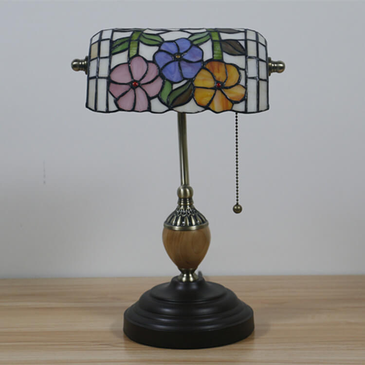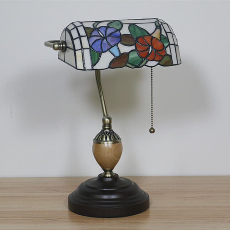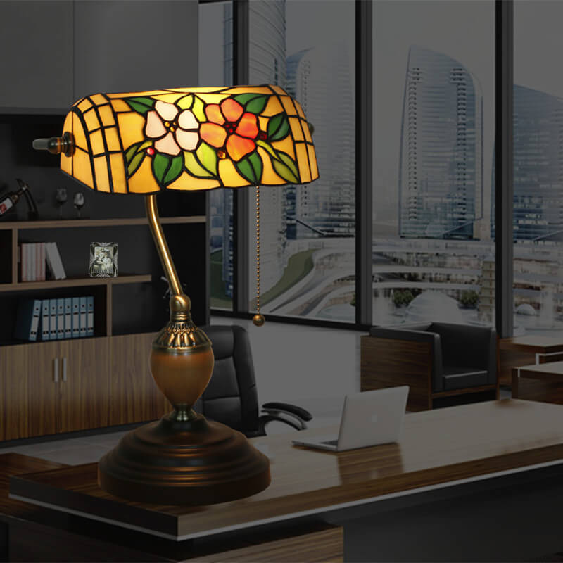 European Tiffany Flower Glass 1-Light Banker Table Lamp