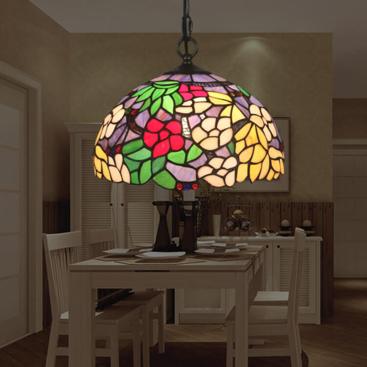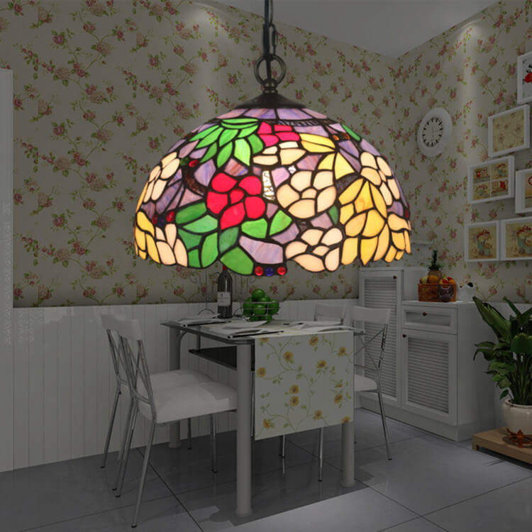 مصباح معلق أوروبي من الزجاج الملون تيفاني، مزود بمصباح واحد