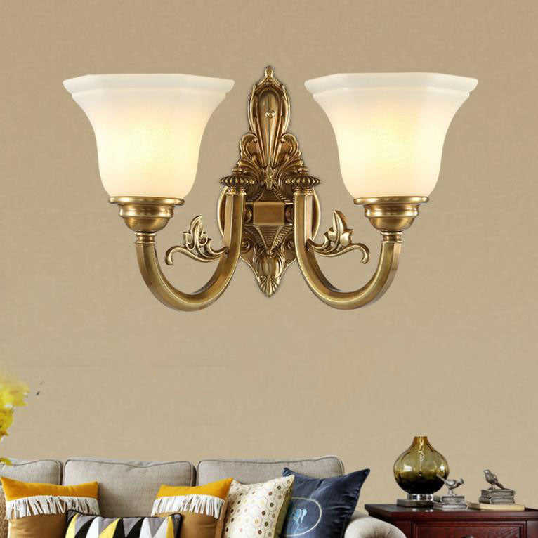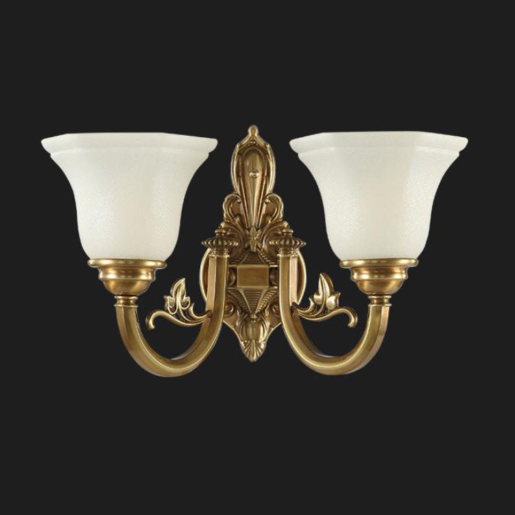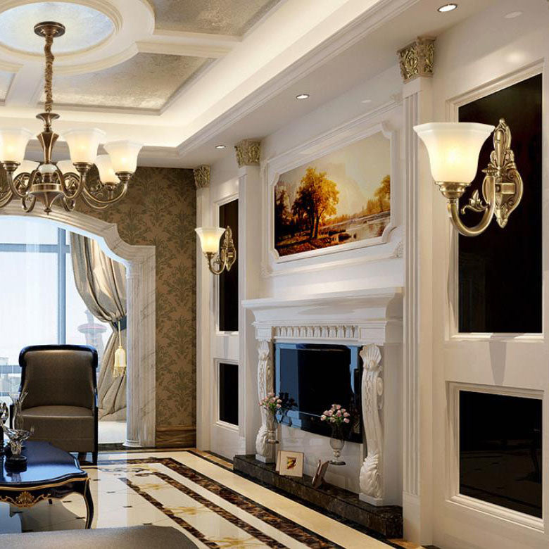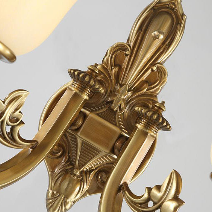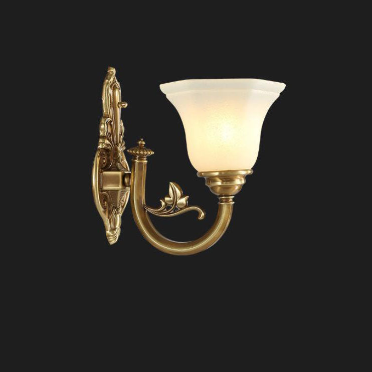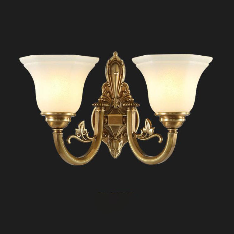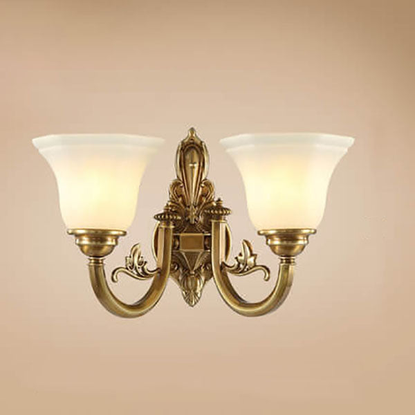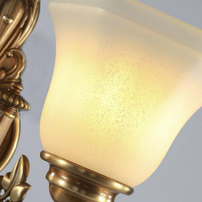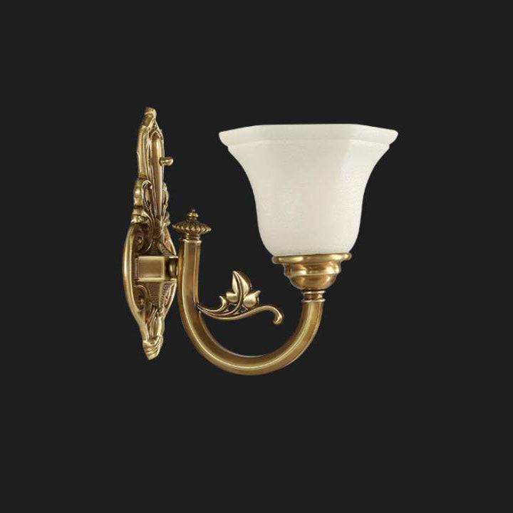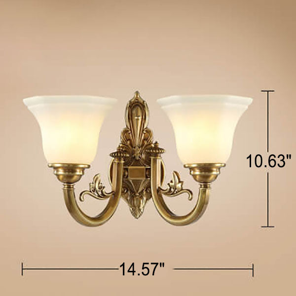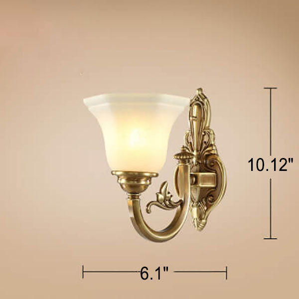 مصباح حائط مخروطي زجاجي نحاسي عتيق أوروبي منحوت بنصف ضوء