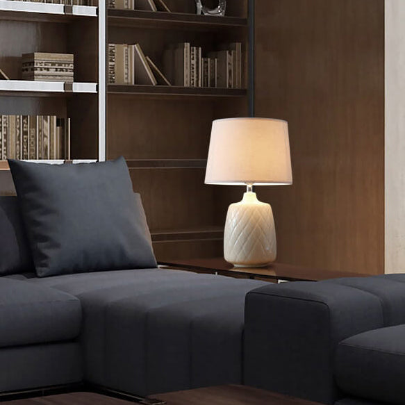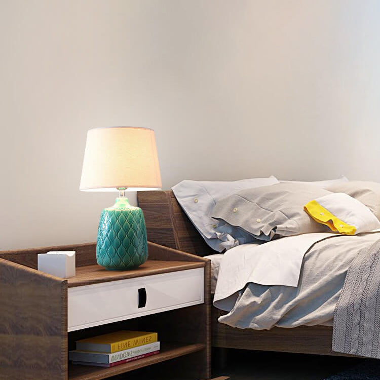 European Vintage Ceramic Fabric Lampshade 1-Light Table Lamp