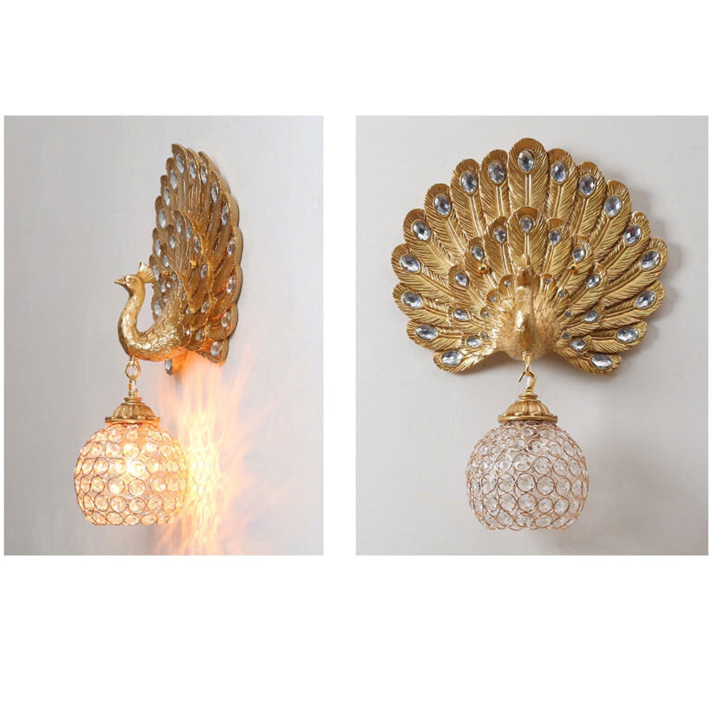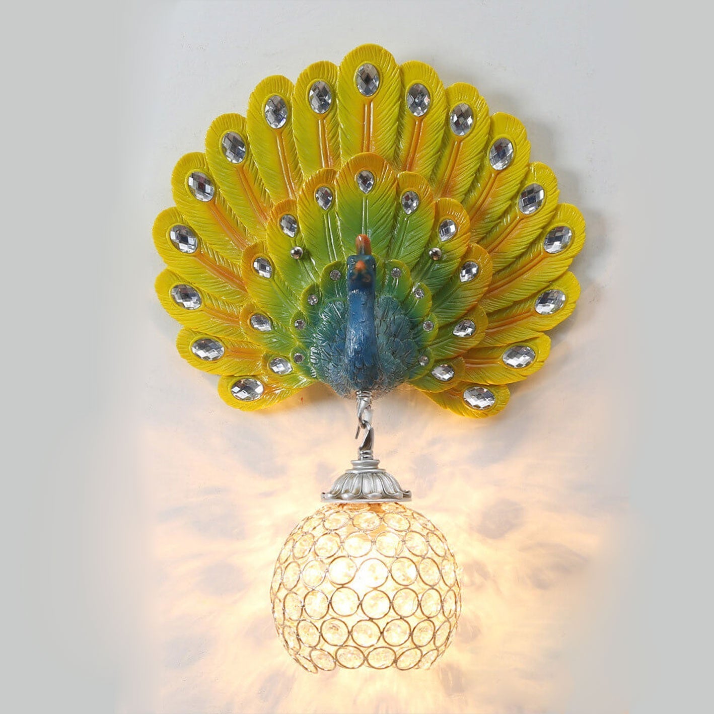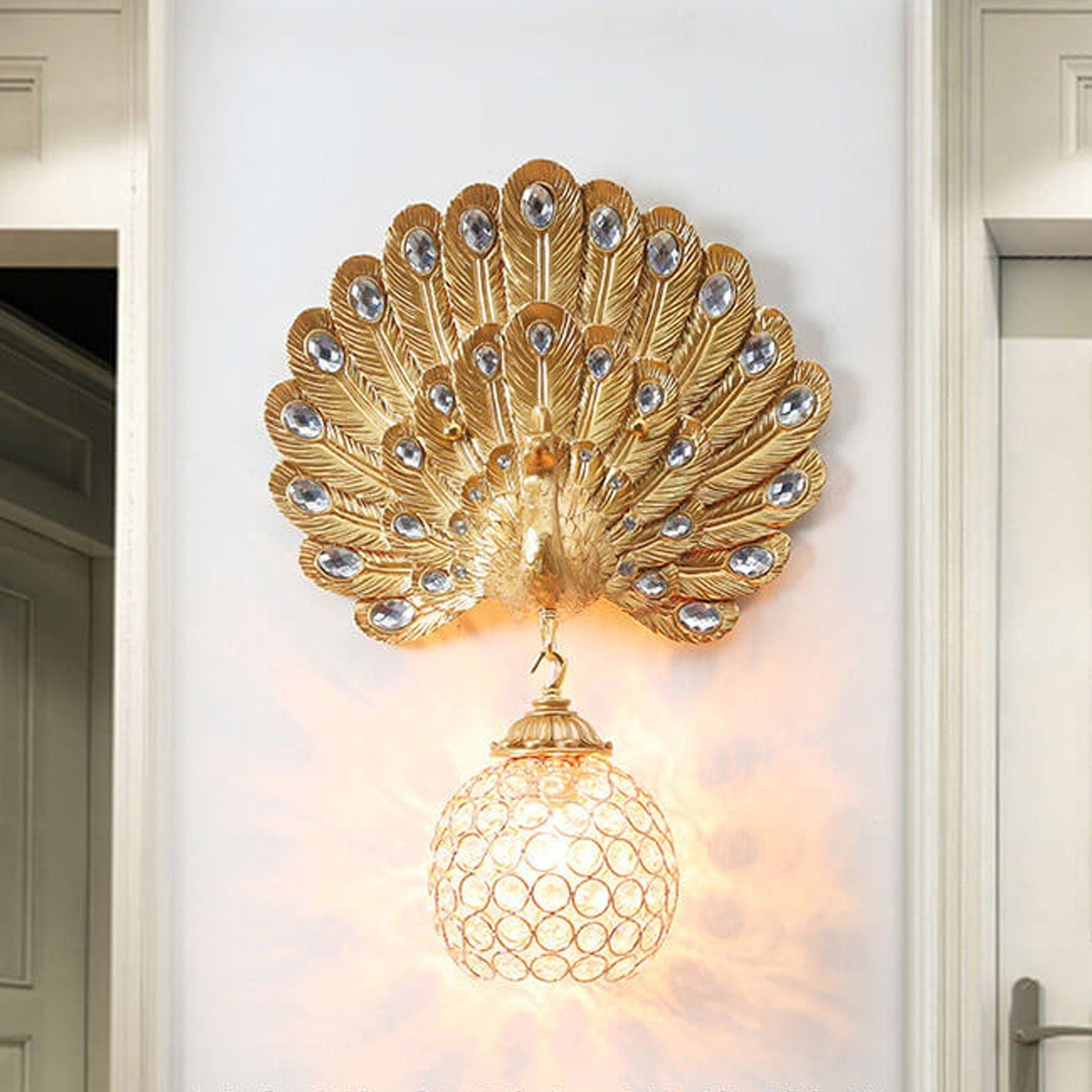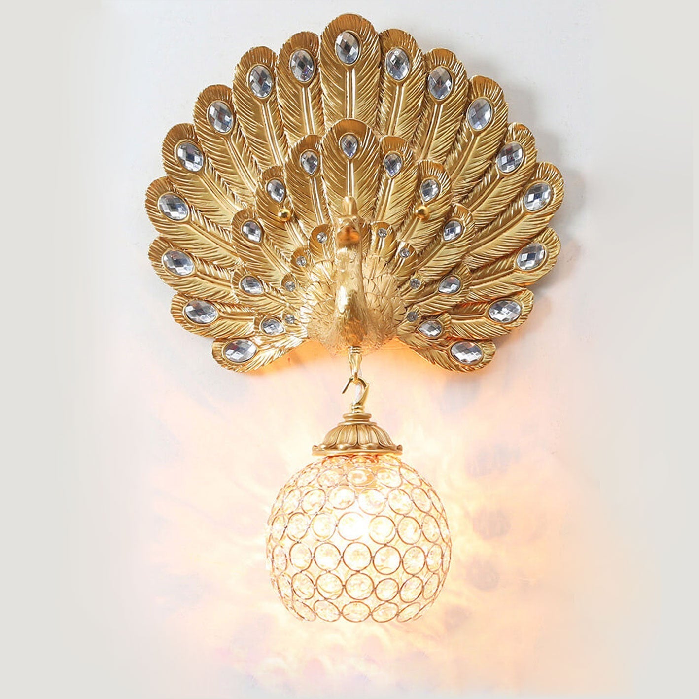 مصباح حائط على شكل طاووس من الكريستال الأوروبي العتيق مزود بإضاءة واحدة