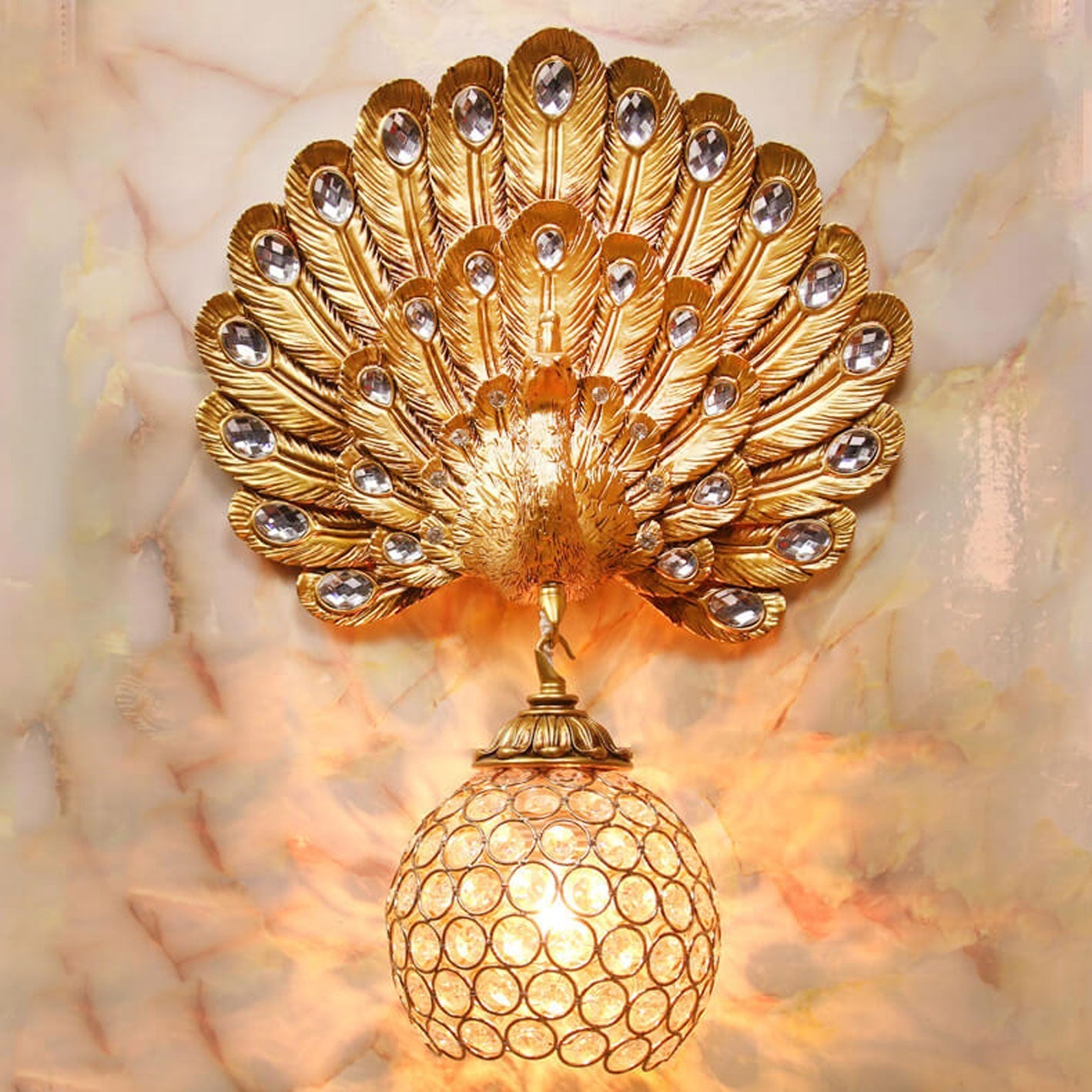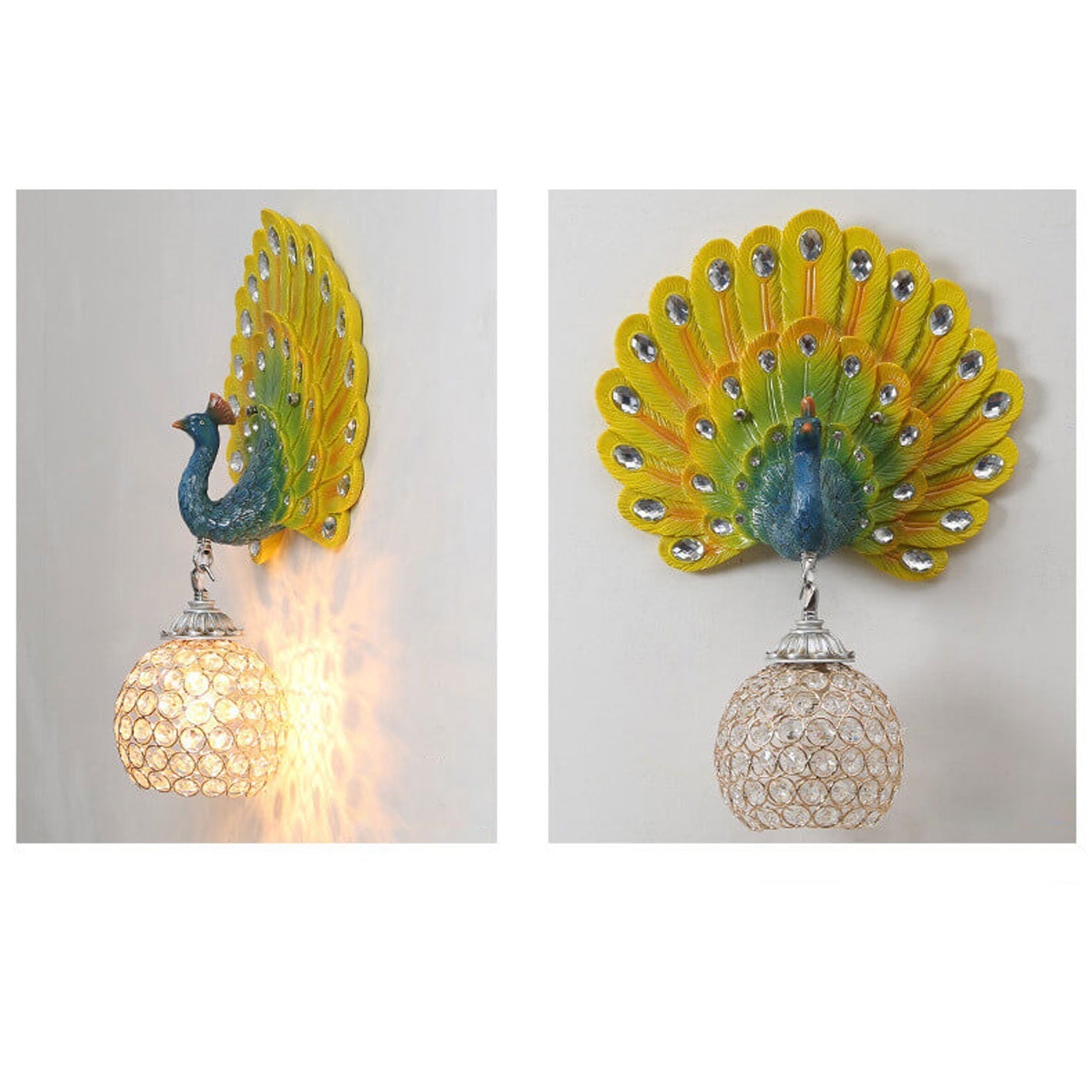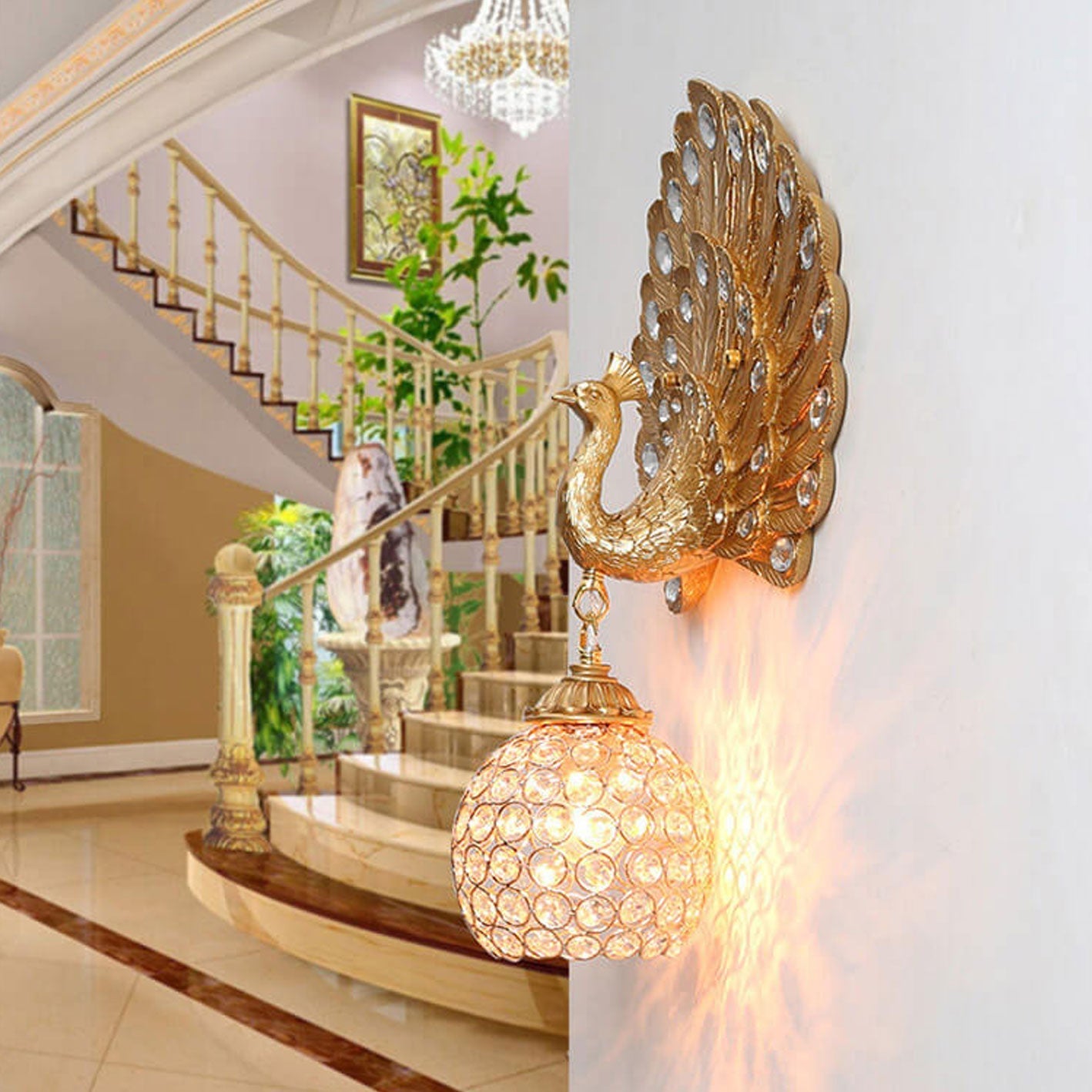 مصباح حائط على شكل طاووس من الكريستال الأوروبي العتيق مزود بإضاءة واحدة