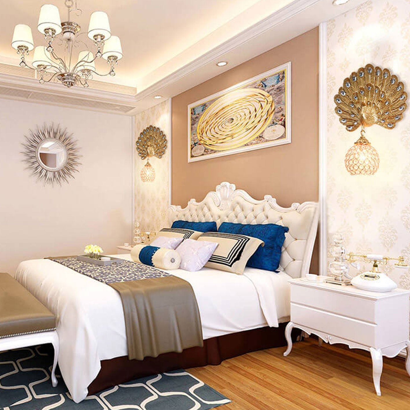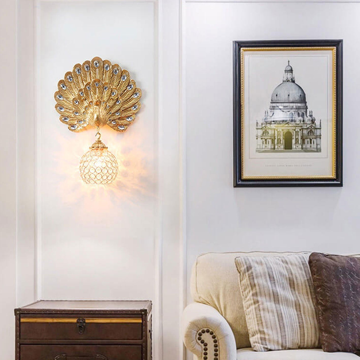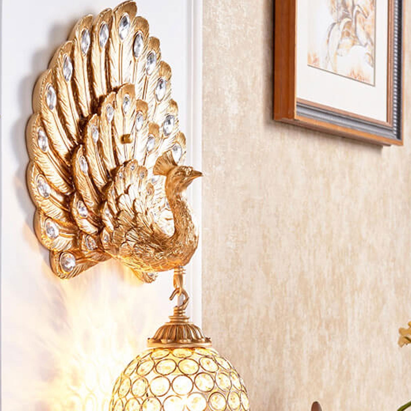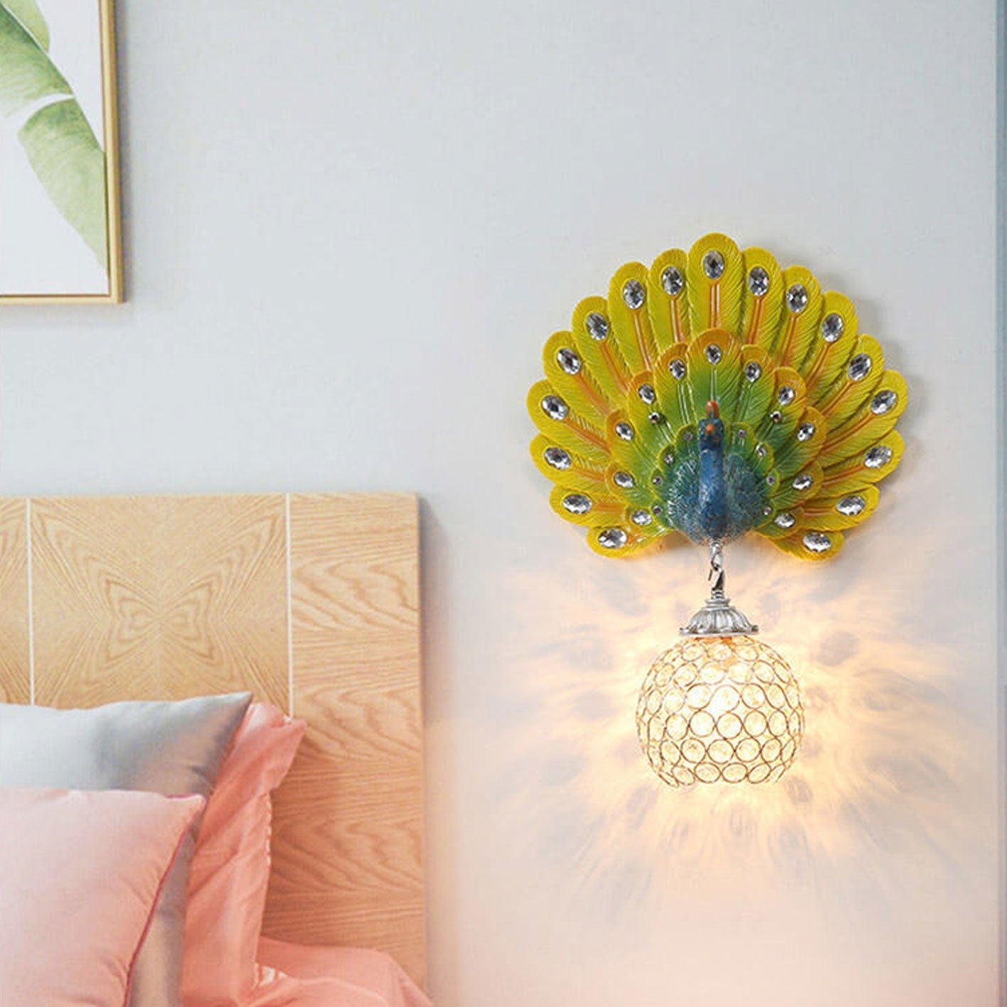 مصباح حائط على شكل طاووس من الكريستال الأوروبي العتيق مزود بإضاءة واحدة