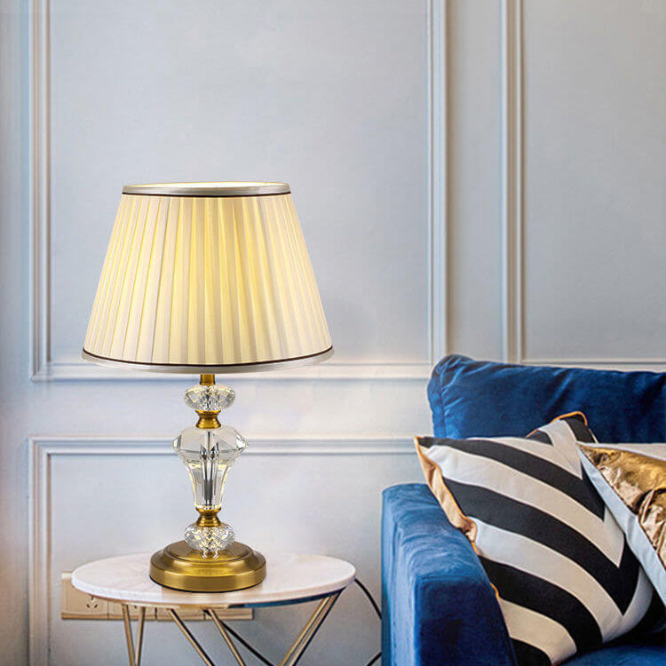 European Vintage Crystal Pillar Base Fabric 1-Light Table Lamp