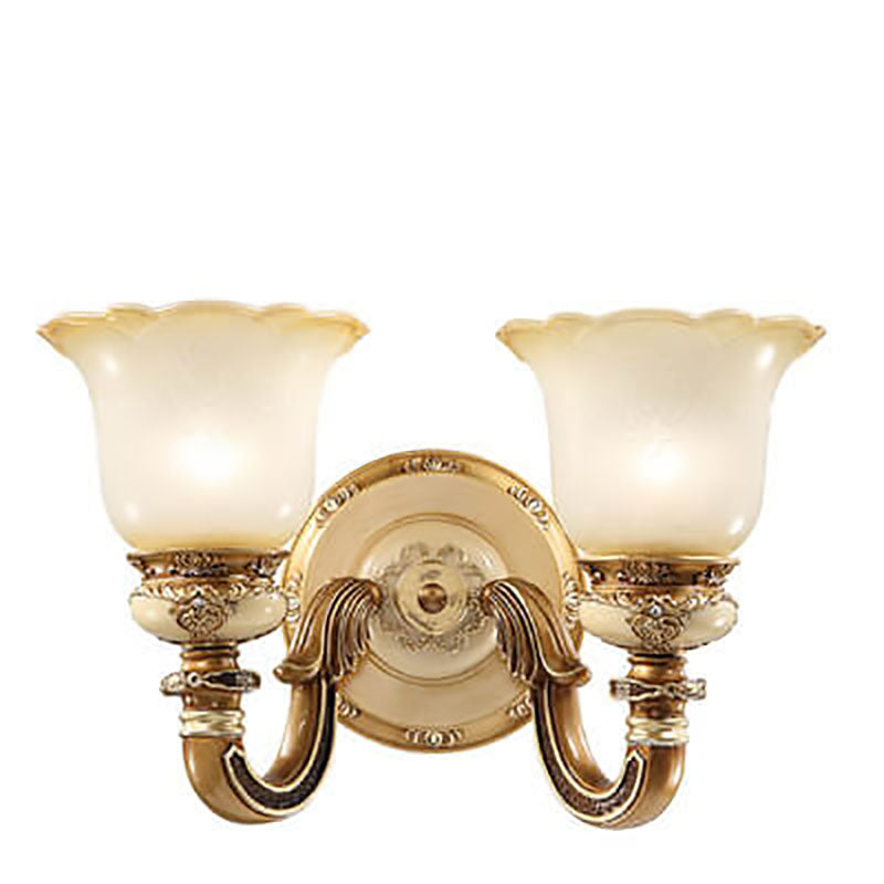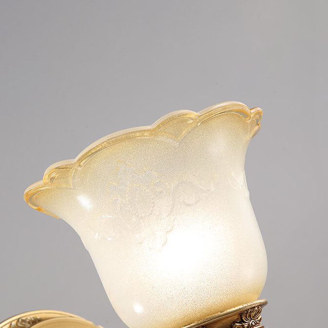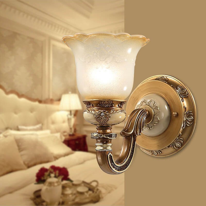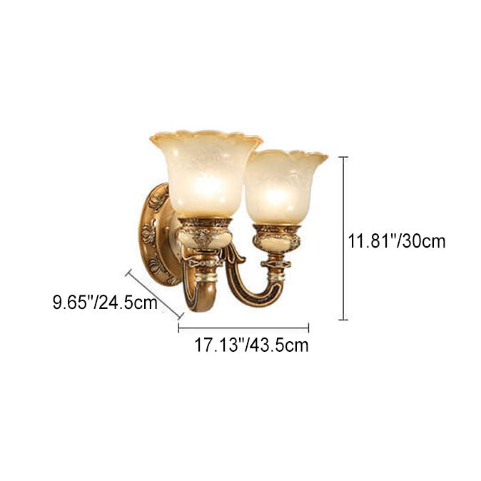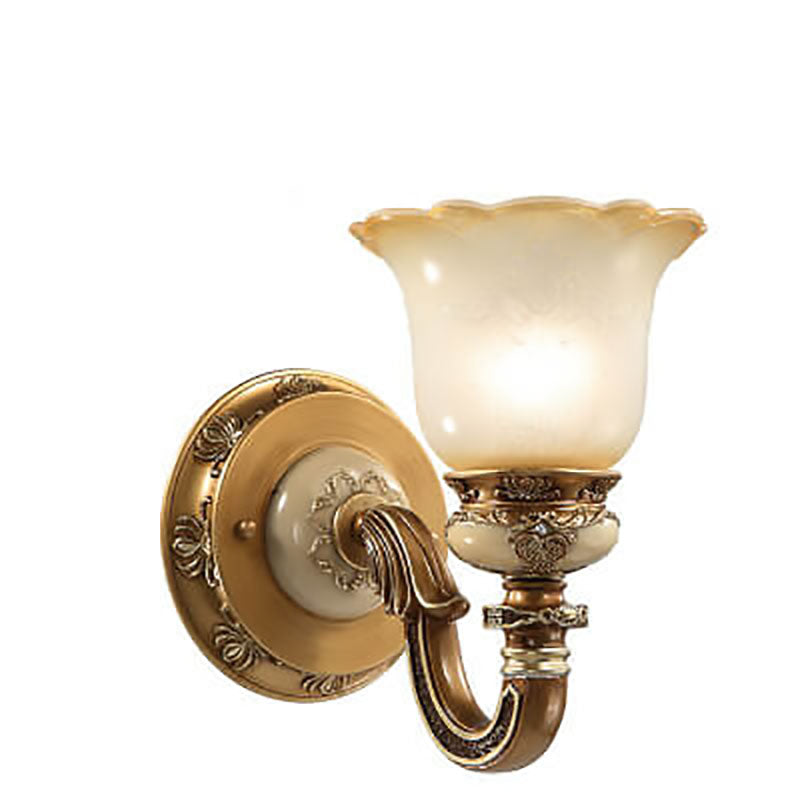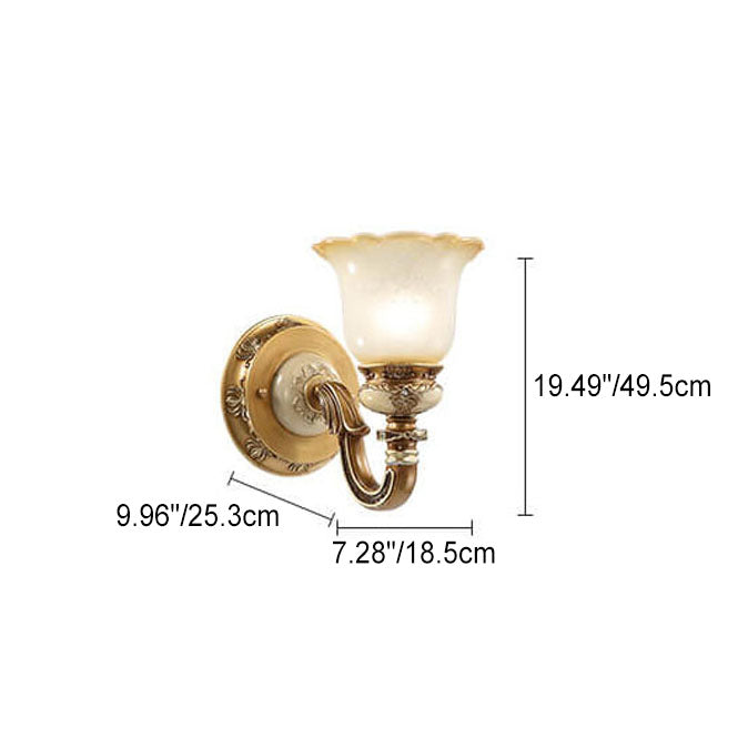 مصباح حائطي من الحديد والراتنج والزجاج على شكل كأس زهور أوروبي عتيق بنصف ضوء