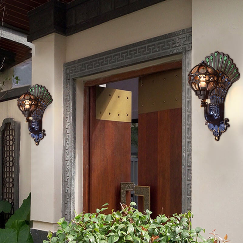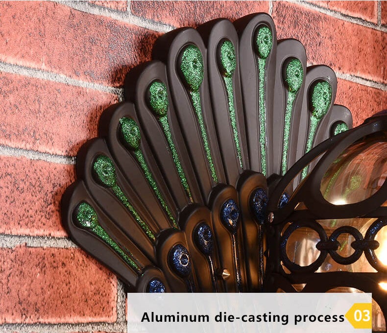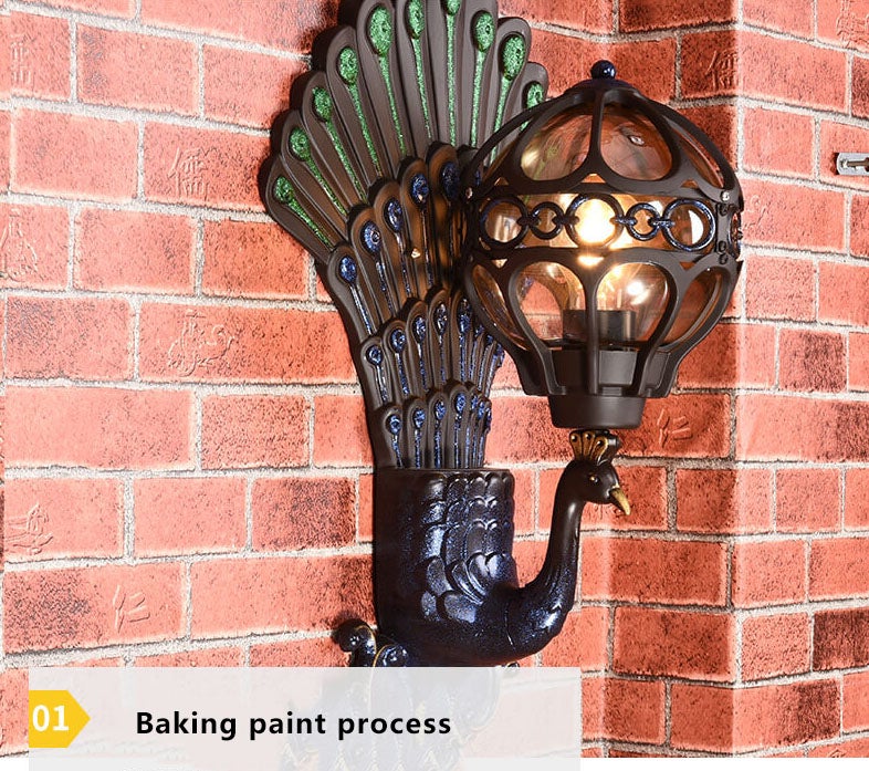 مصباح حائط خارجي مقاوم للماء بضوء واحد على شكل طاووس أوروبي عتيق