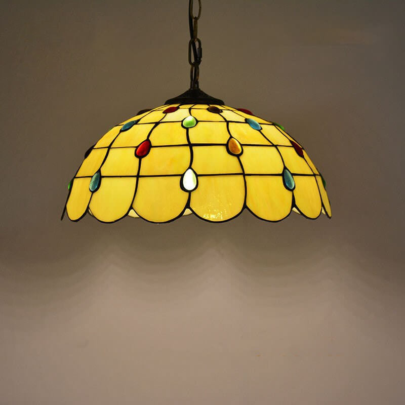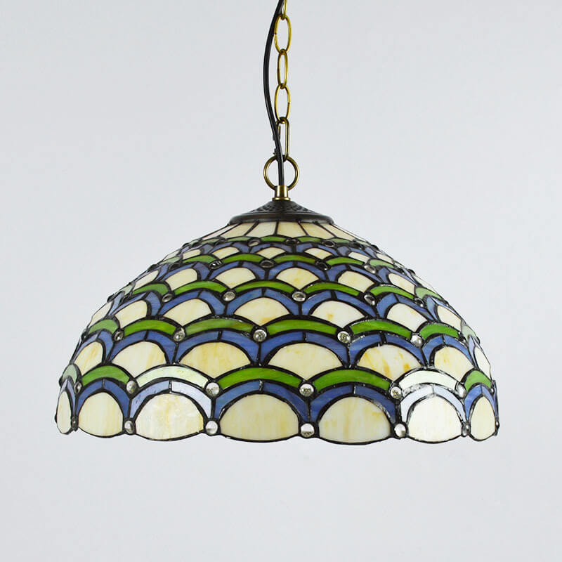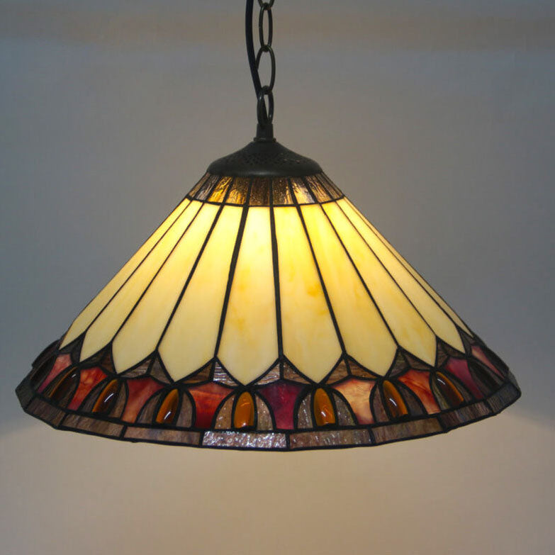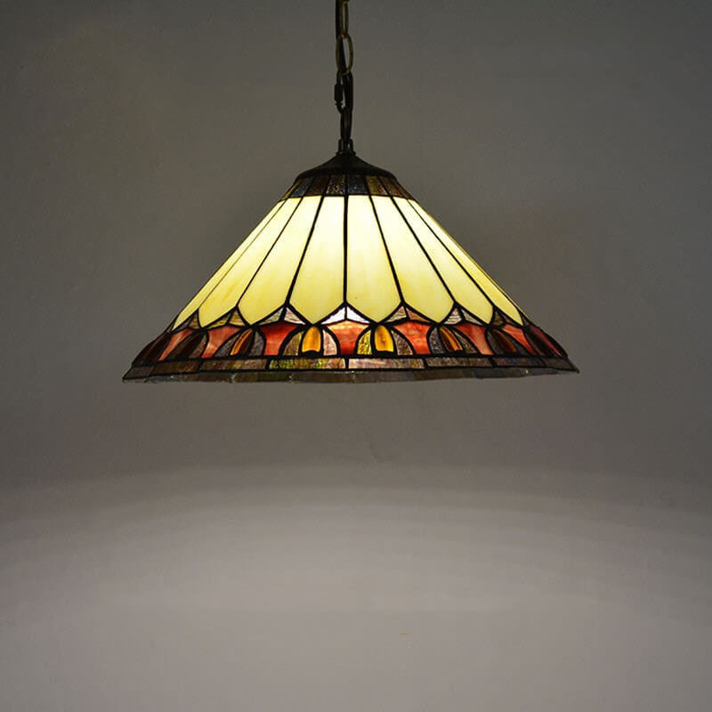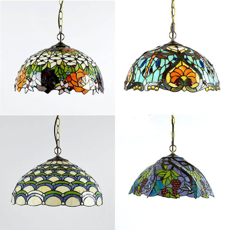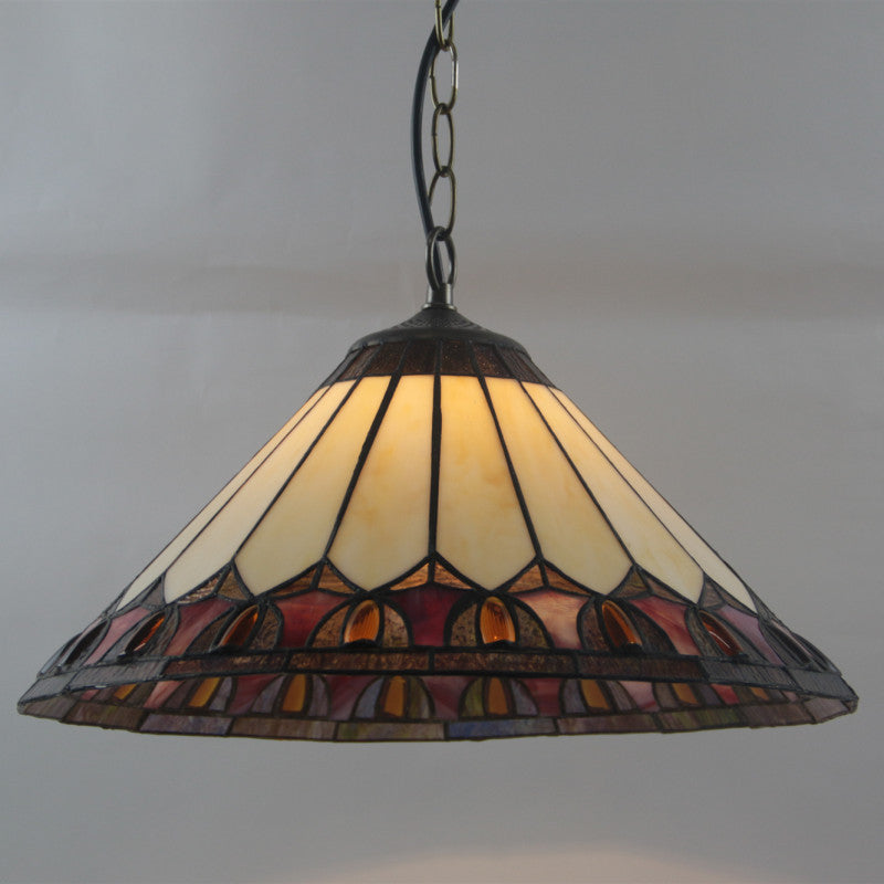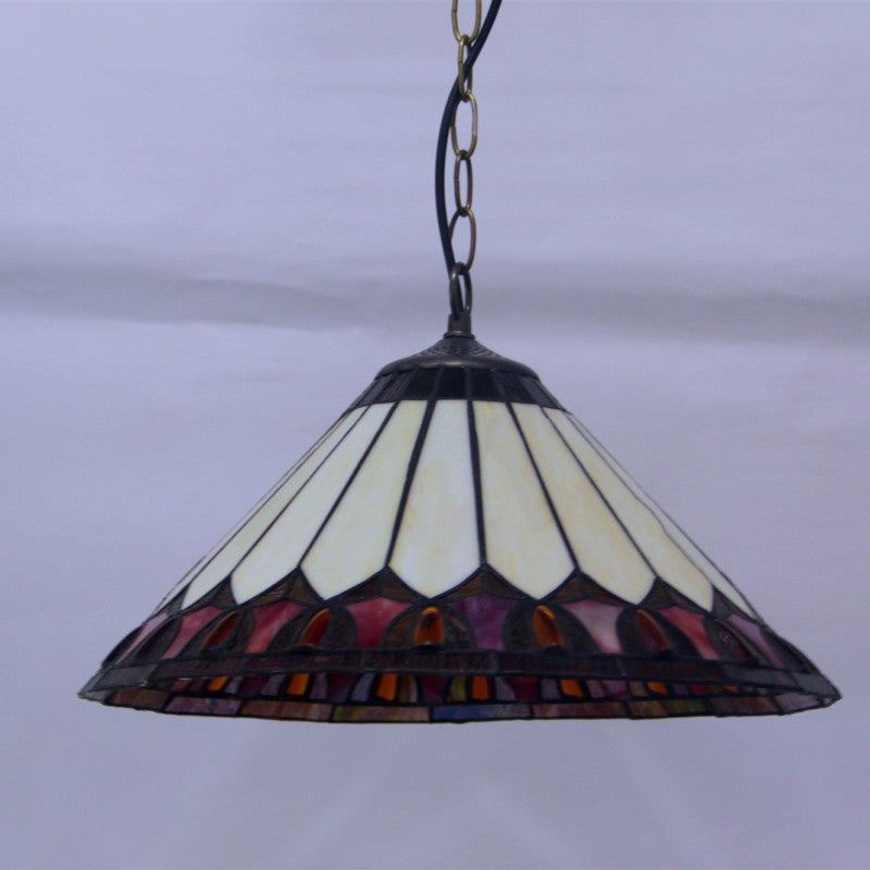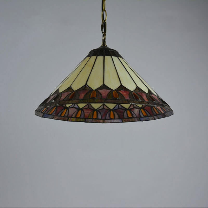 مصباح معلق من الزجاج تيفاني الأوروبي العتيق مزود بمصباح واحد