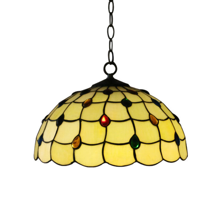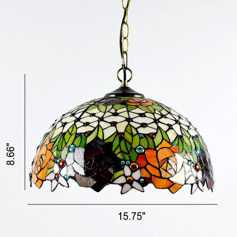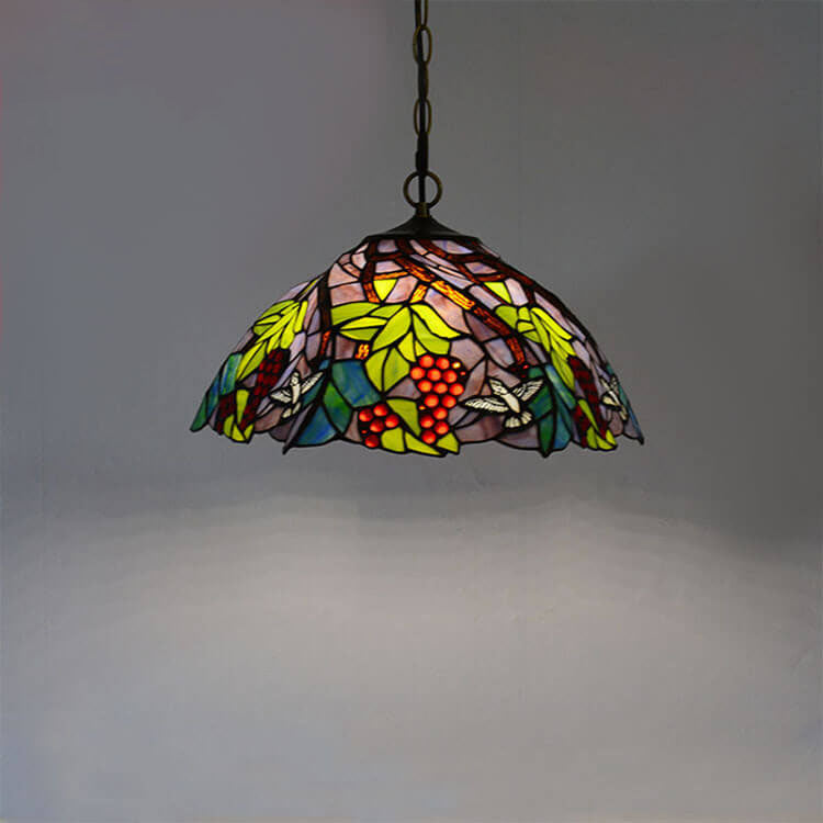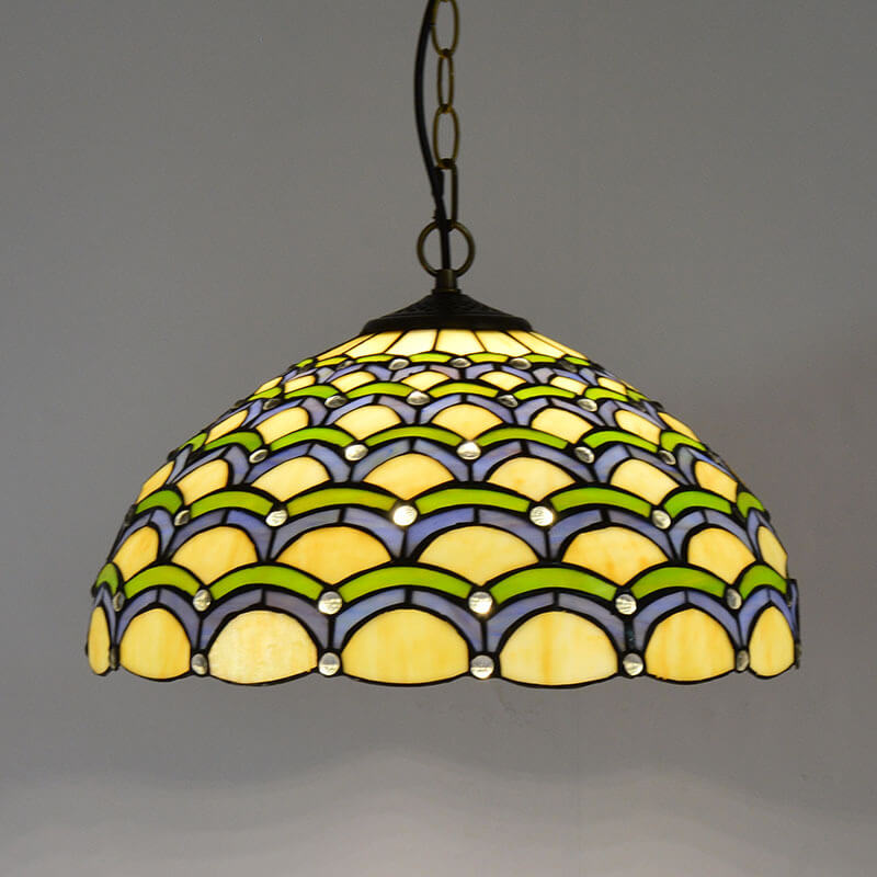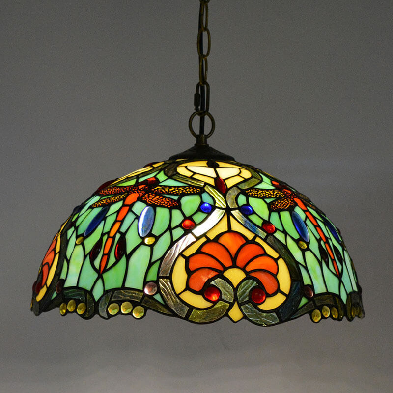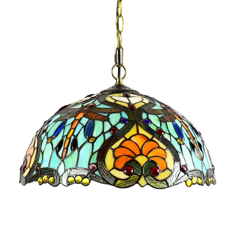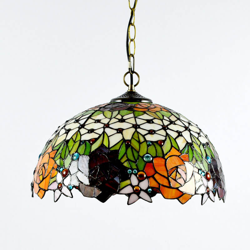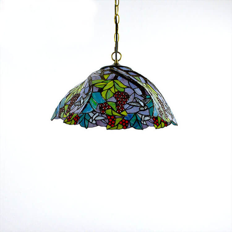 مصباح معلق من الزجاج تيفاني الأوروبي العتيق مزود بمصباح واحد