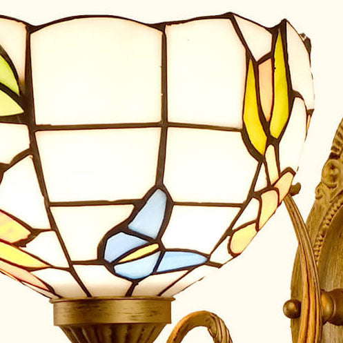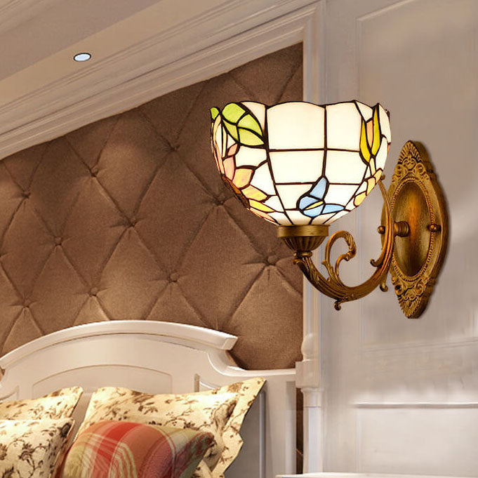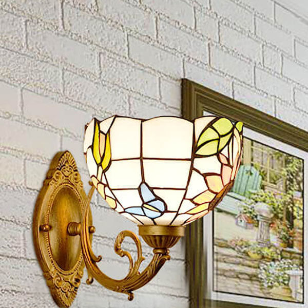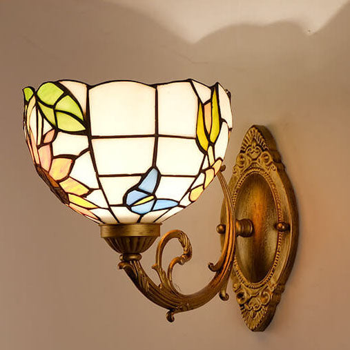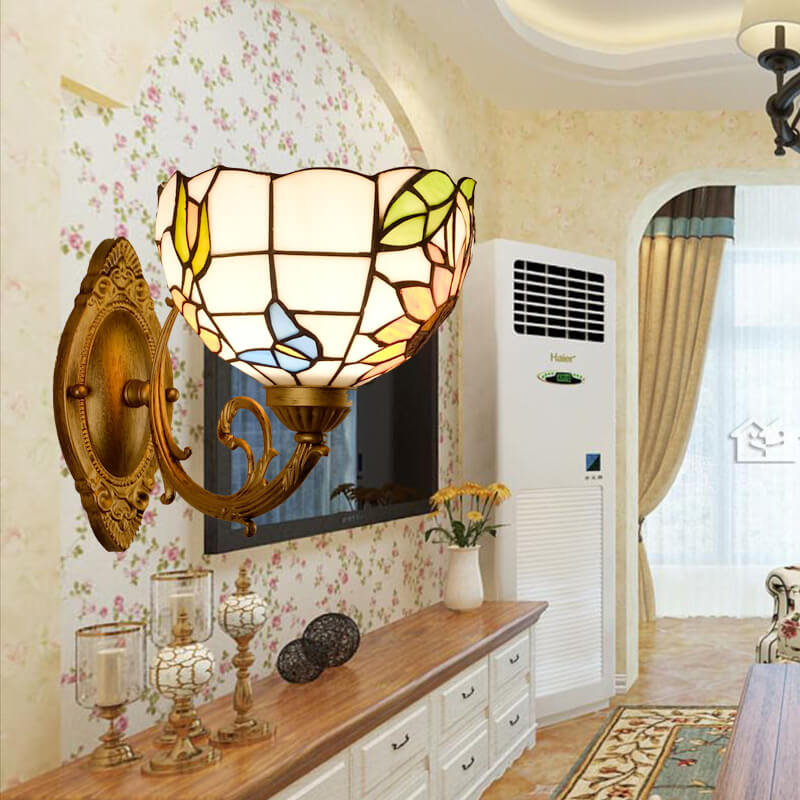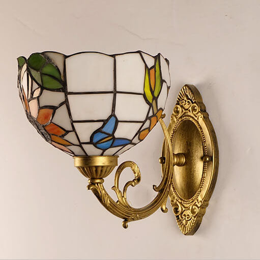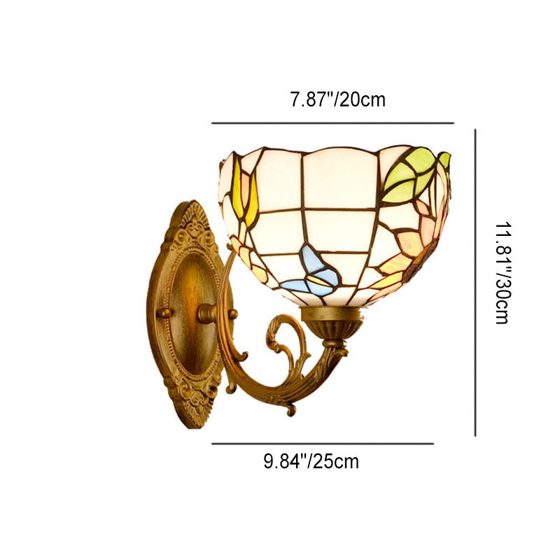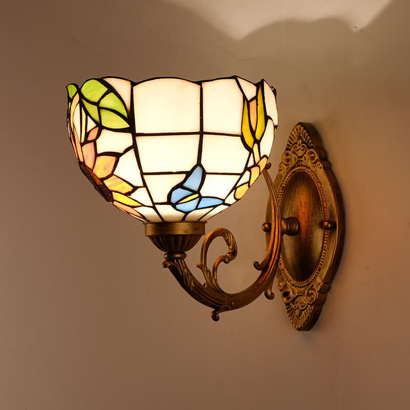 مصباح حائط معدني من الزجاج تيفاني بتصميم أوروبي عتيق مزود بضوء واحد