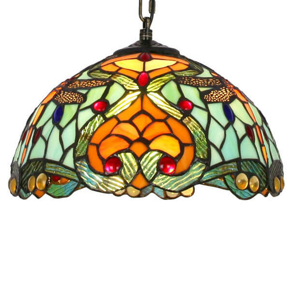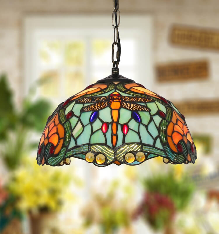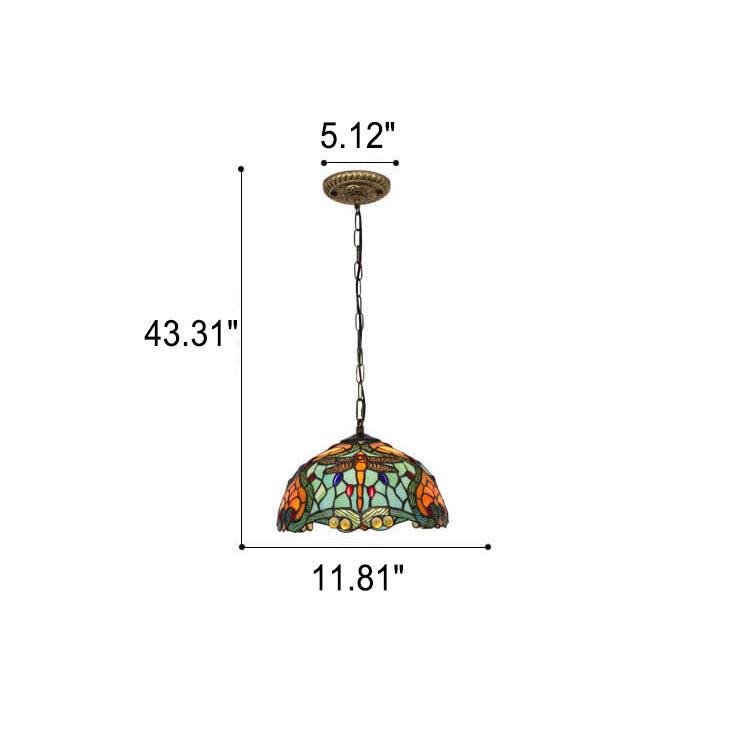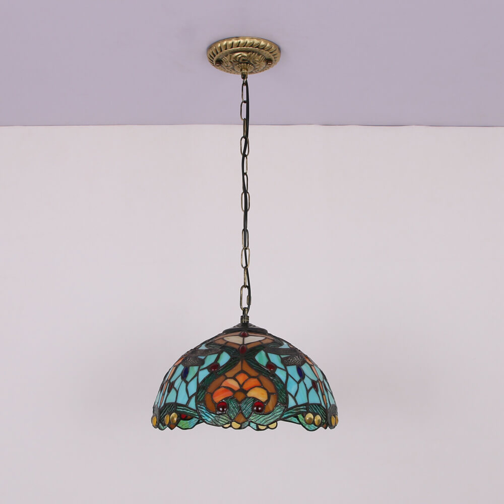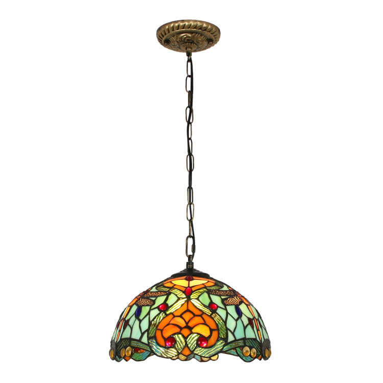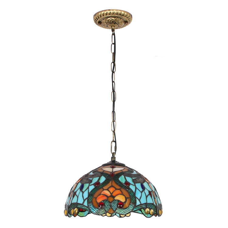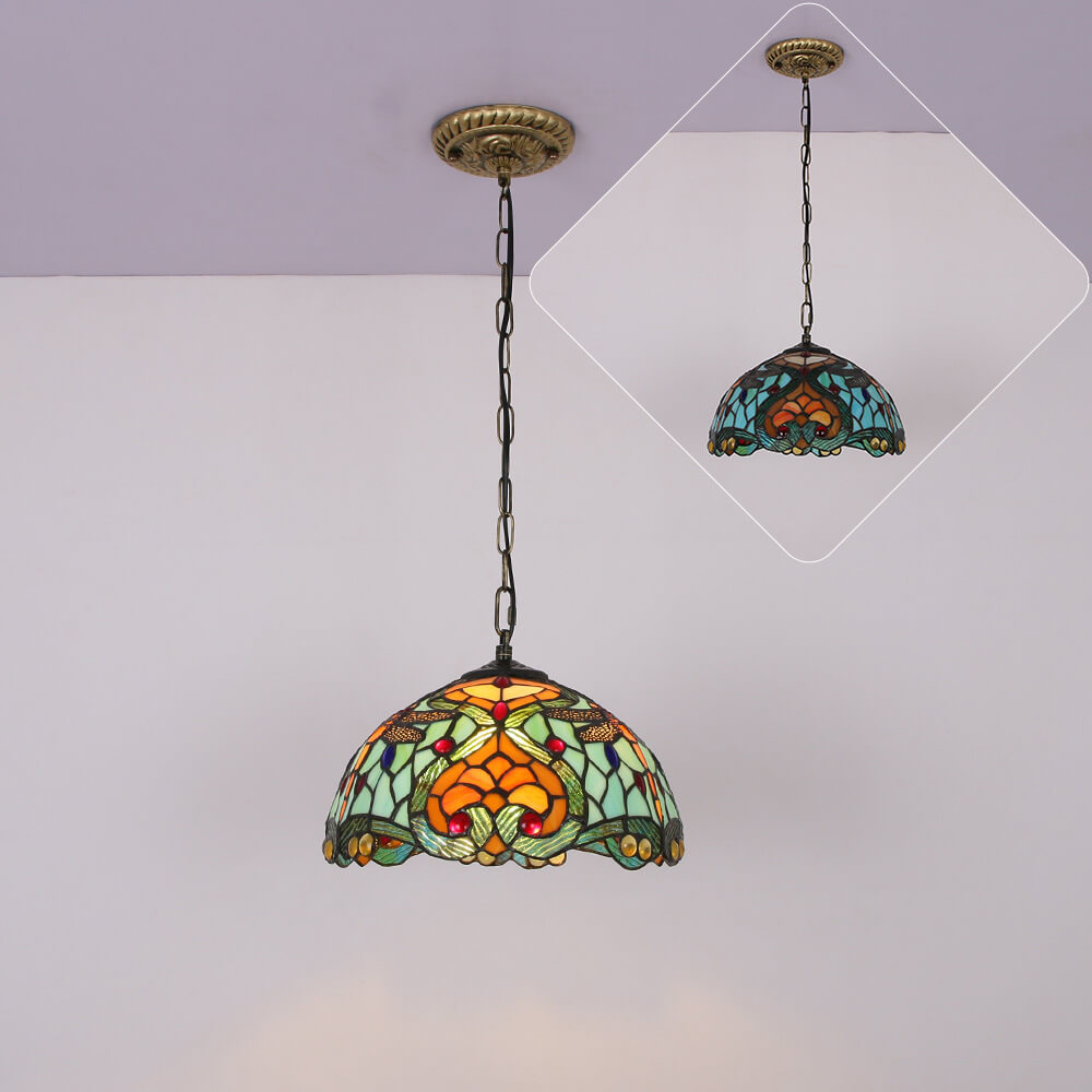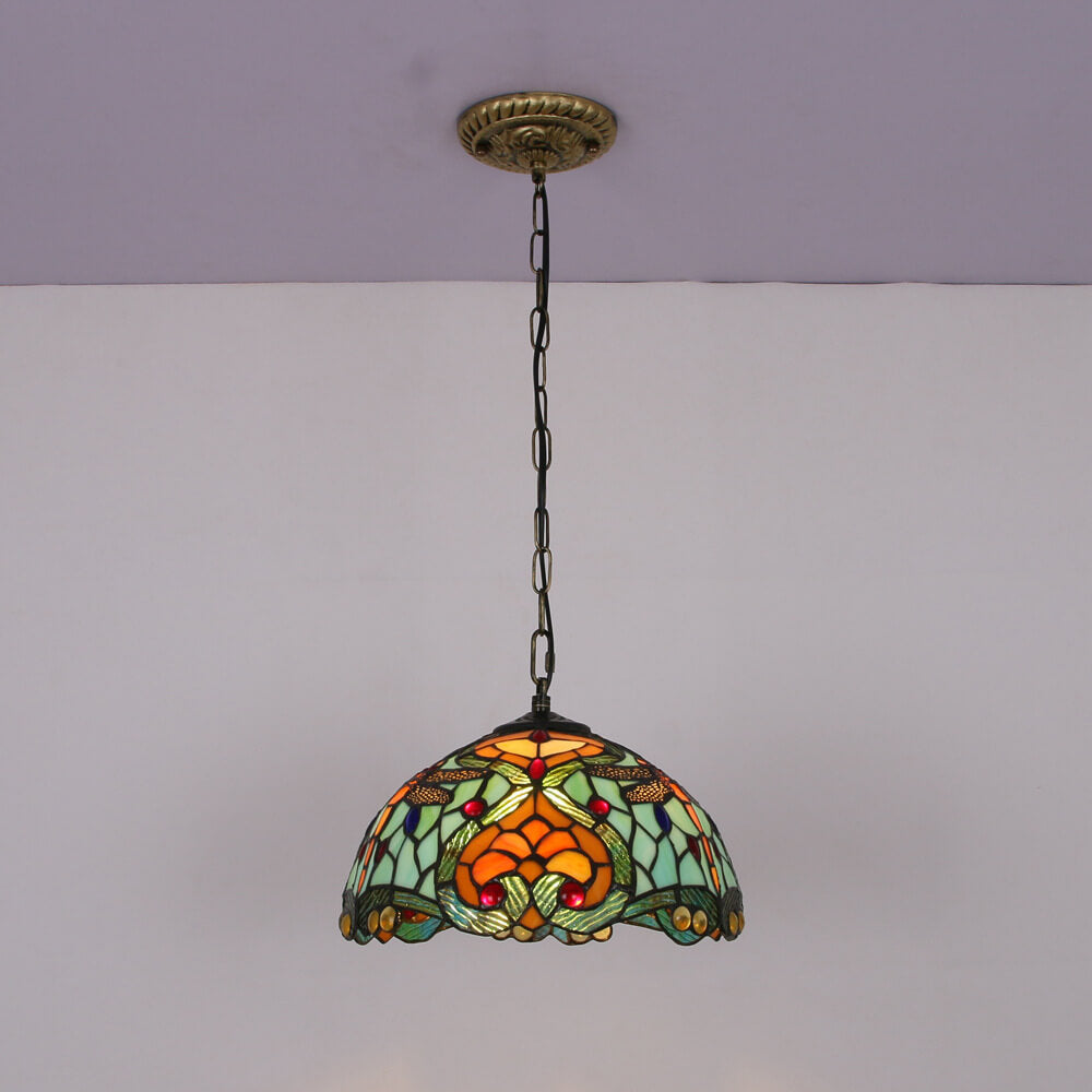 مصباح معلق معدني من الزجاج الملون من تيفاني بتصميم أوروبي عتيق مزود بمصباح واحد