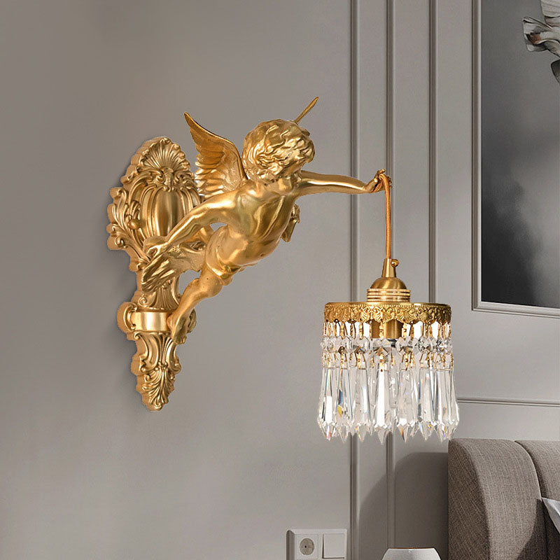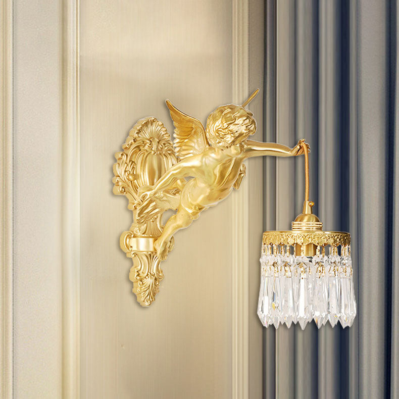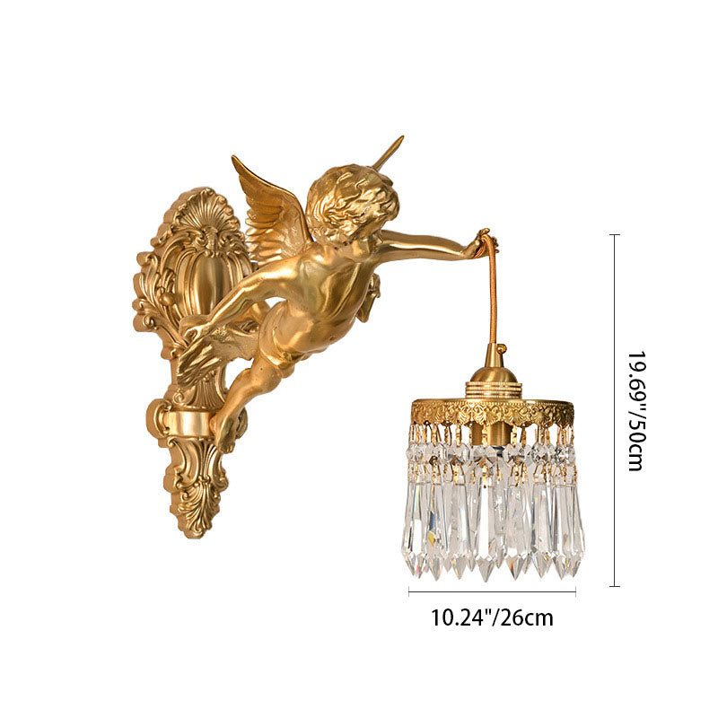 مصباح حائط فرنسي فاخر على شكل زهرة ملاك من النحاس الكريستالي مزود بمصباح واحد