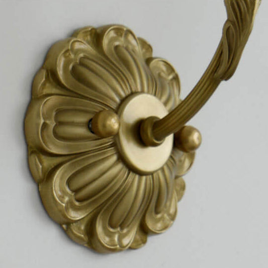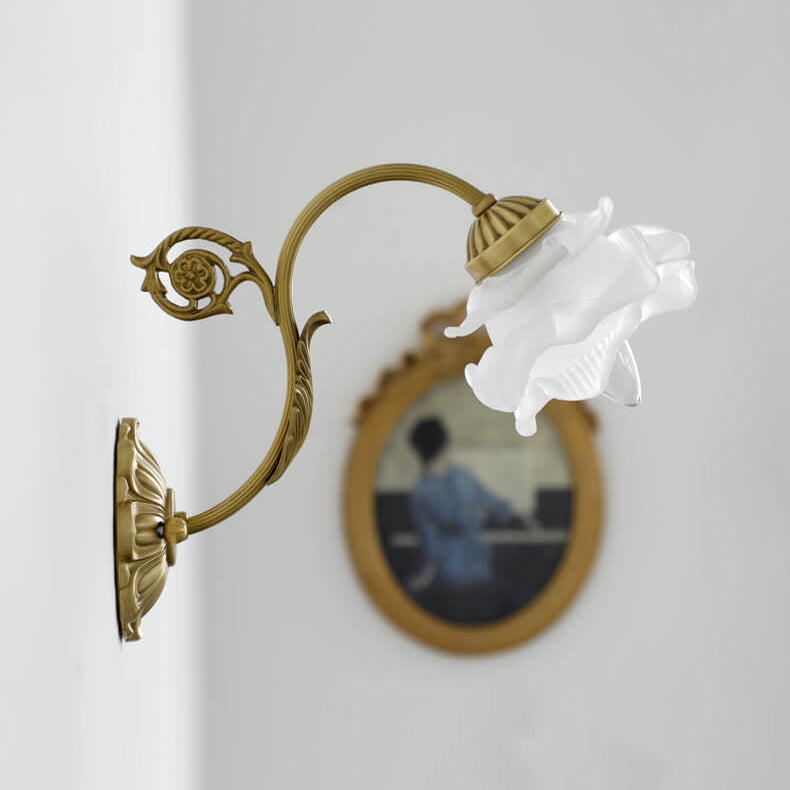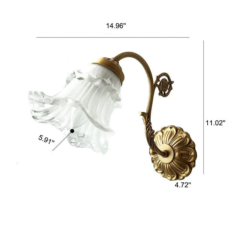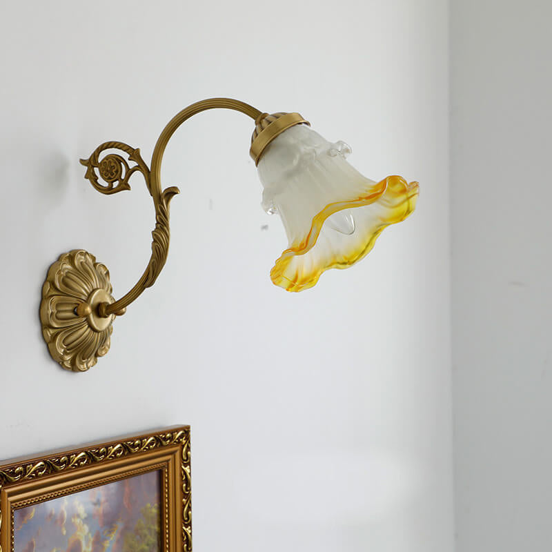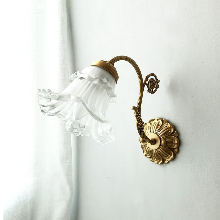 مصباح حائط فرنسي عتيق من النحاس والزجاج على شكل زهرة، مزود بضوء واحد